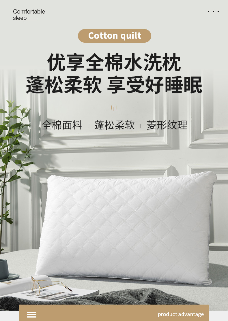 【品牌直发】加倍生活 优享全棉水洗枕 定型可水洗机洗 全棉面料 单只装48*74cm