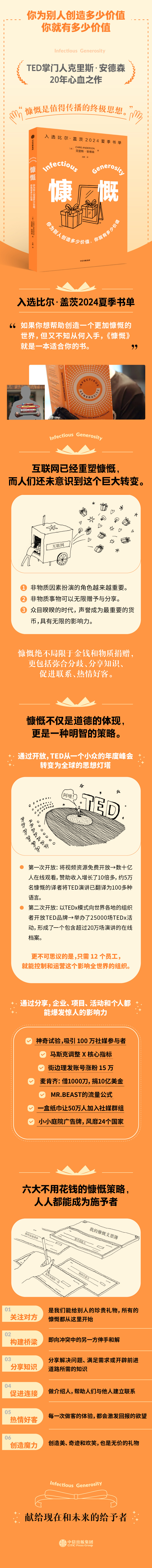 入选比尔·盖茨 2024 夏季书单:“如果你想帮助创造一个更加慷慨的世界,但又不知从何入手,《慷慨》就是一本适合你的书。”TED门20年心血之作,分享TED极“值得传播的思想”
