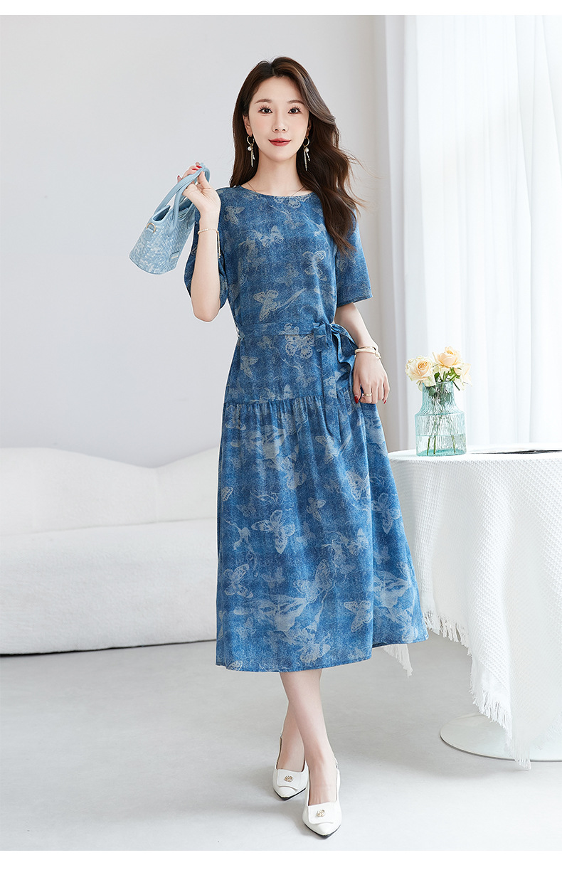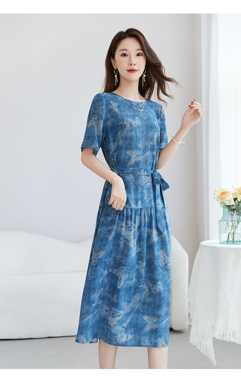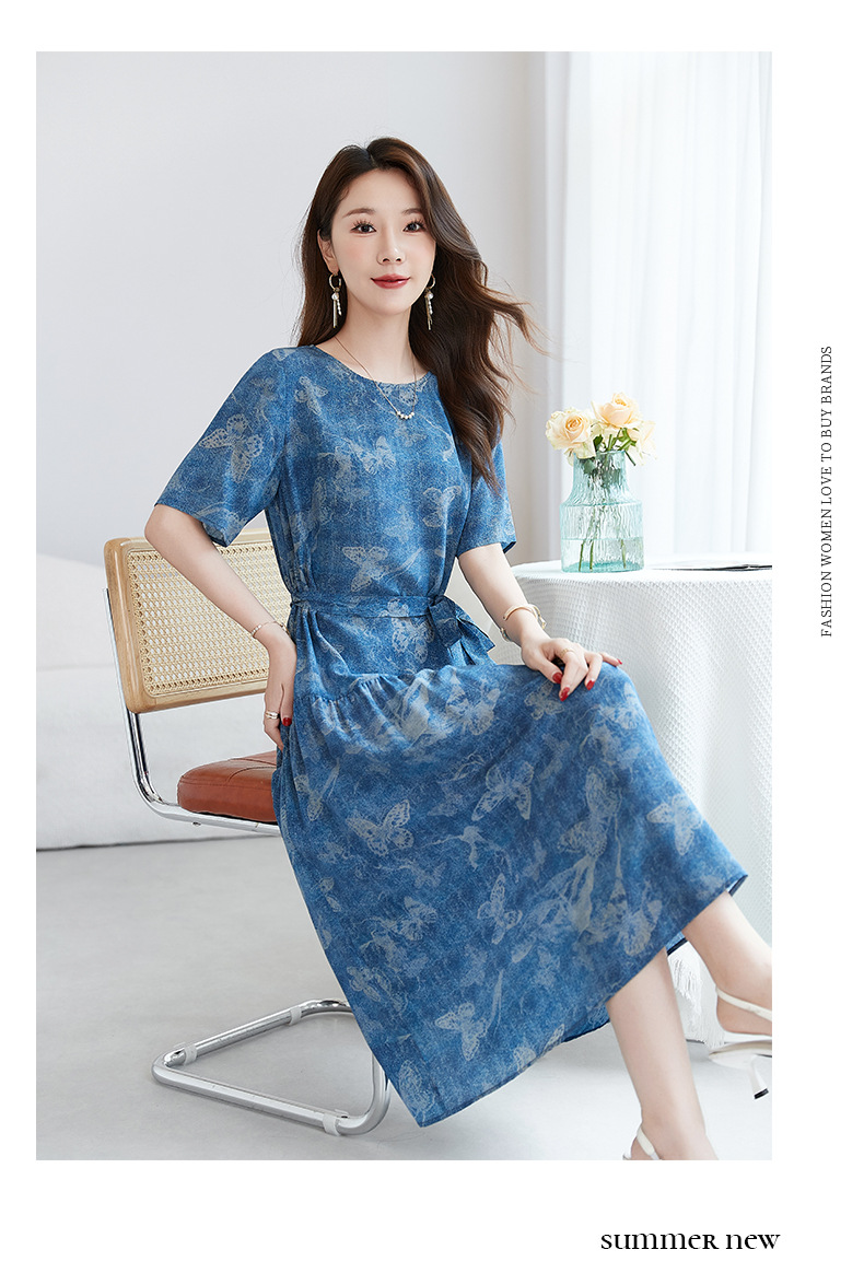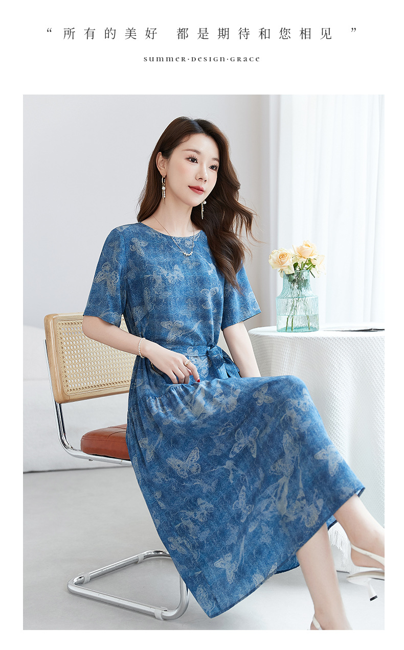 SM 82501731桑蚕丝国风显瘦中长裙极简通勤真丝连衣裙