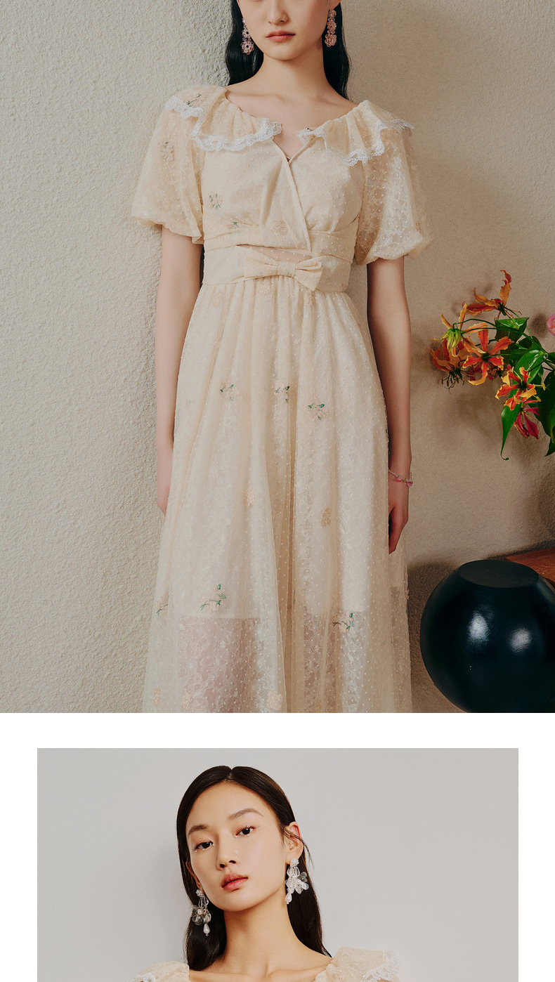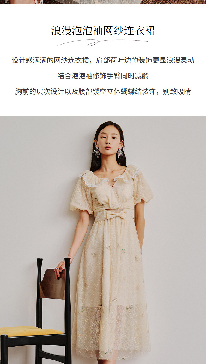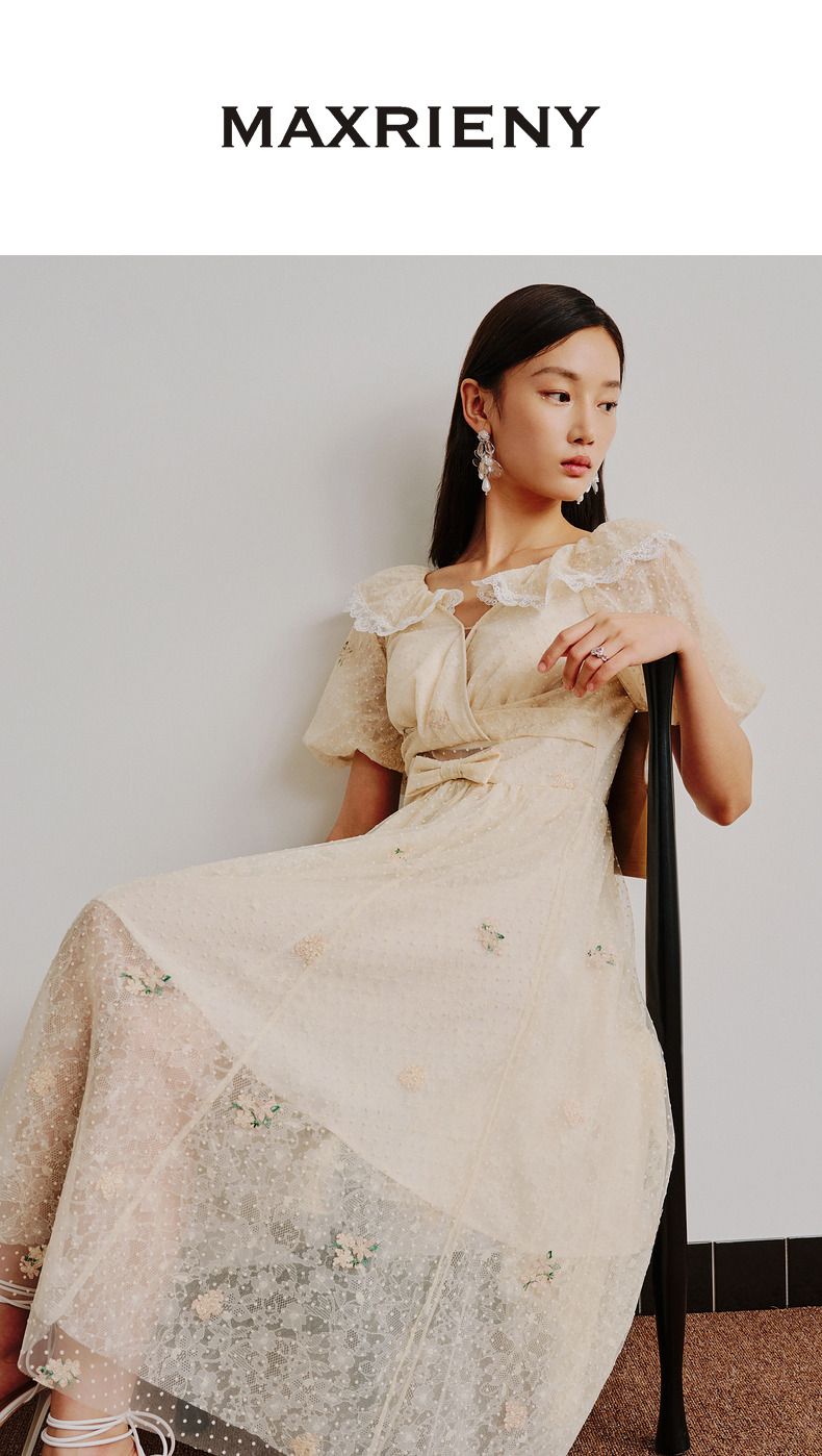 MAXRIENY欧式田园风茶歇裙网纱摆裙法式复古连衣裙(货号:MC88DR274)
