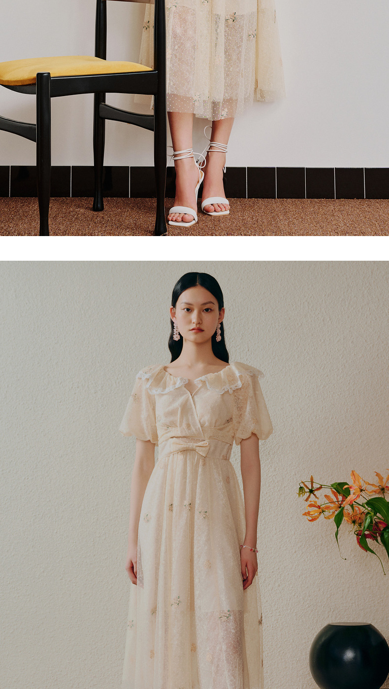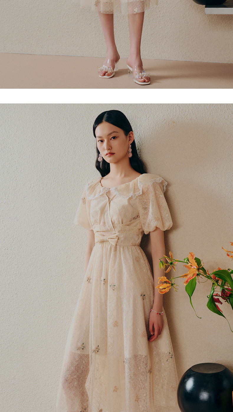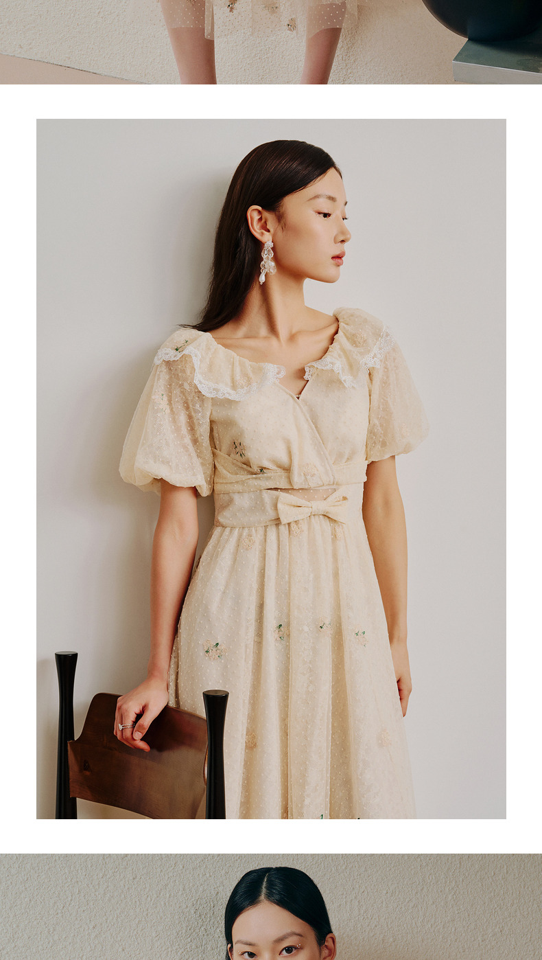 MAXRIENY欧式田园风茶歇裙网纱摆裙法式复古连衣裙(货号:MC88DR274)