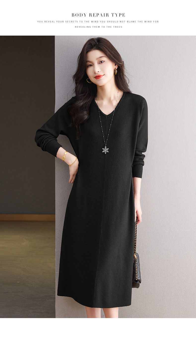 CC长款毛衣裙秋冬配大衣的内搭高级感针织连衣裙气质显瘦遮肉打底裙