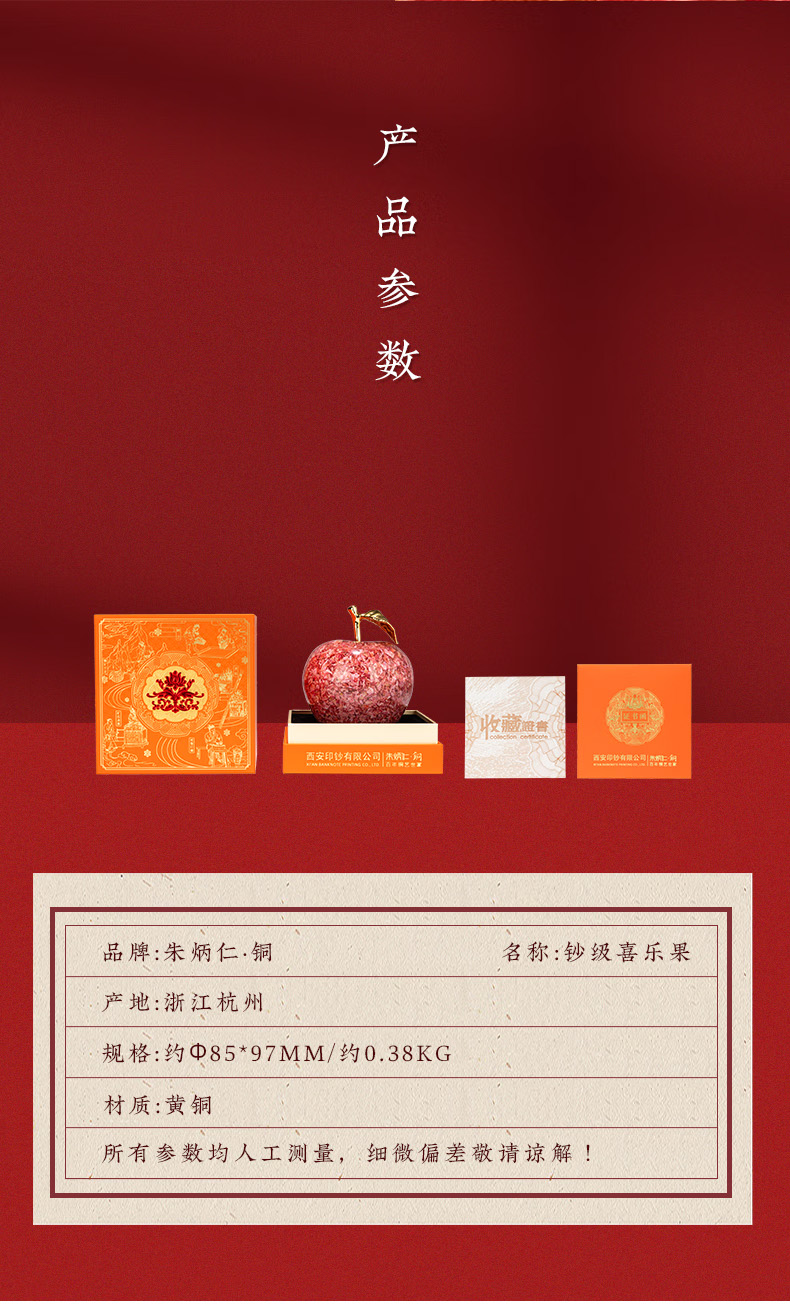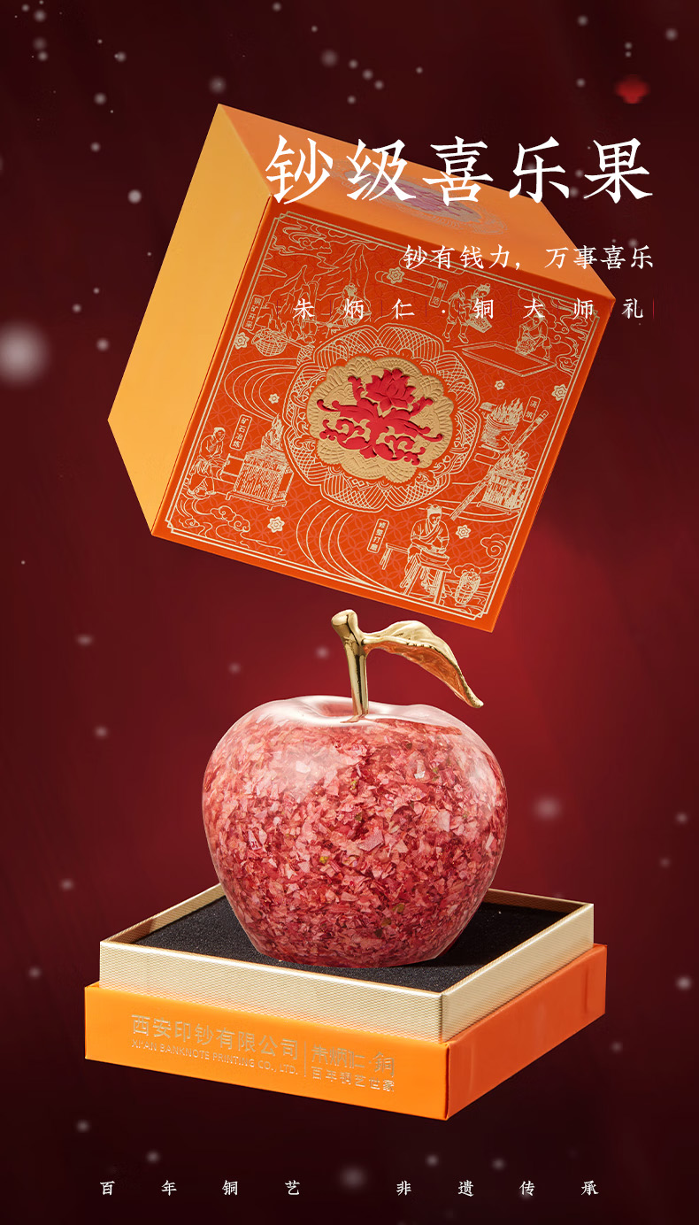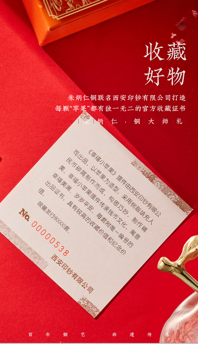 朱炳仁·铜 幸福小苹果,传统与现代的交融,尺寸约:85*97MM,重量约:0.38KG