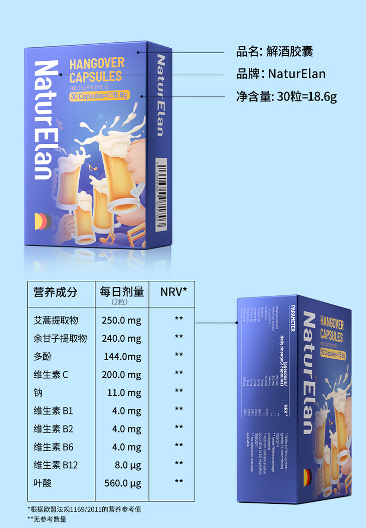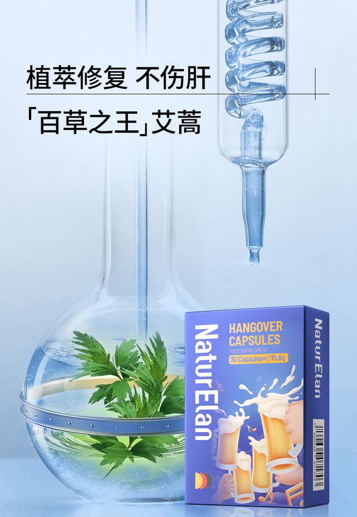 艾蒿粉解酒 | 轻松应对酒局 帮助代谢 呵护肝脏 酒精代谢酶 NaturElan 呐兔 铝箔装 30粒(赠泡腾片)-yw