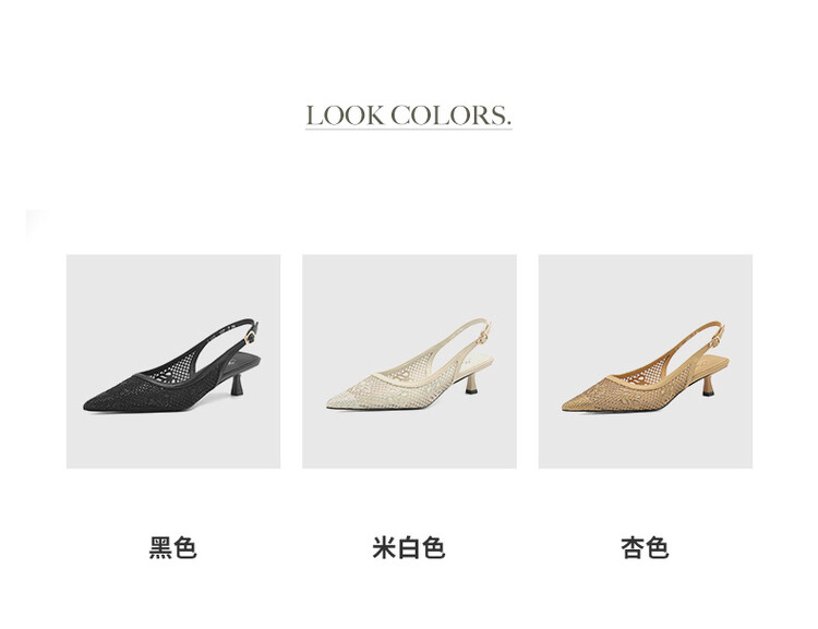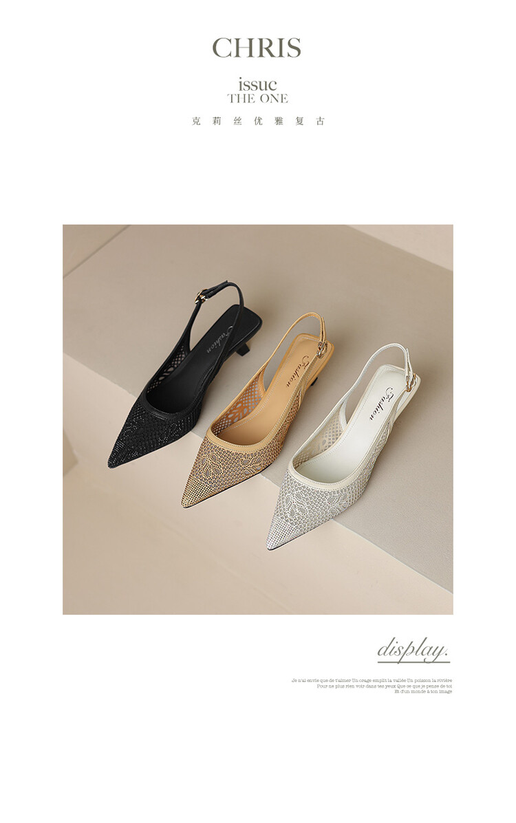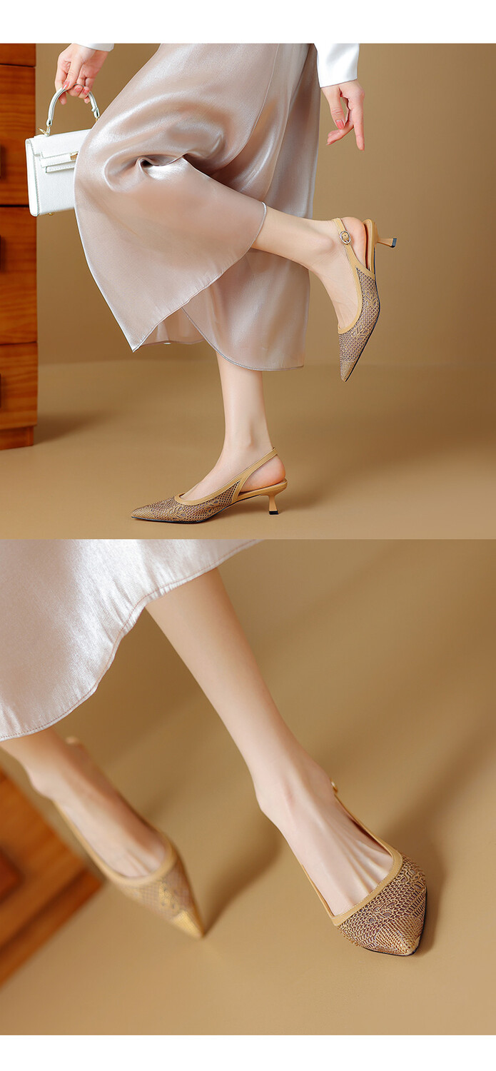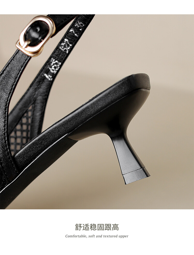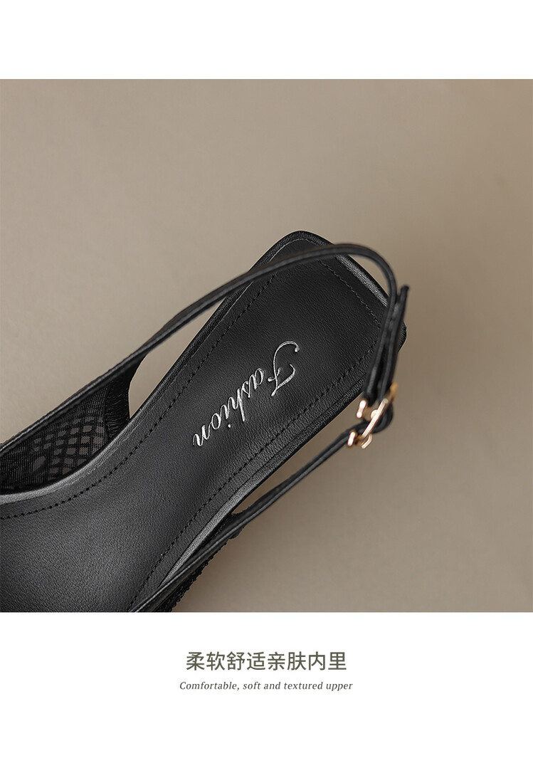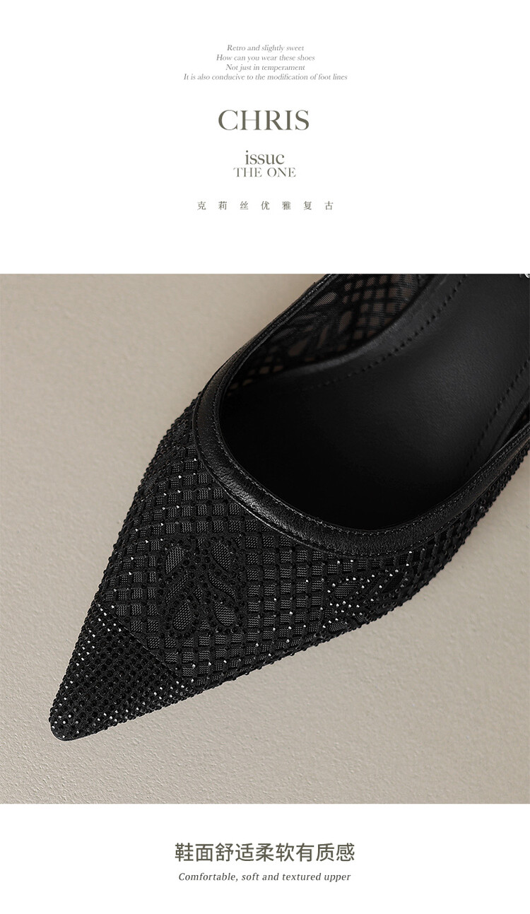 【预售5天】法式高跟单鞋,女鞋子新款布纹尖头气质简约黑色晚风凉鞋YS&5270