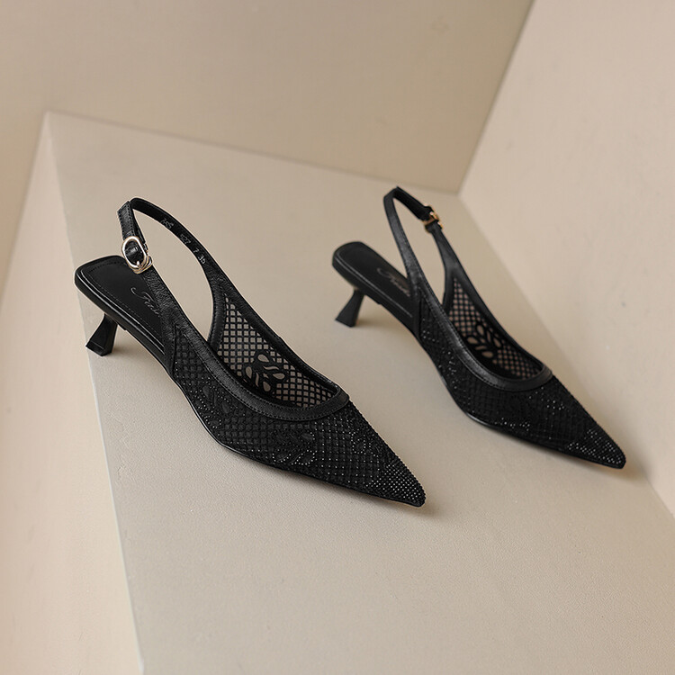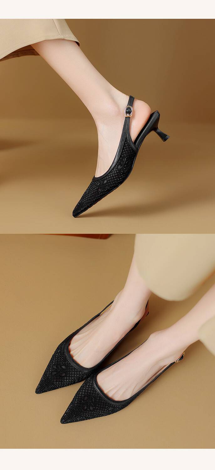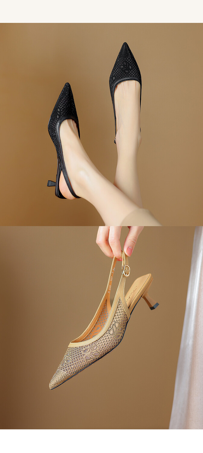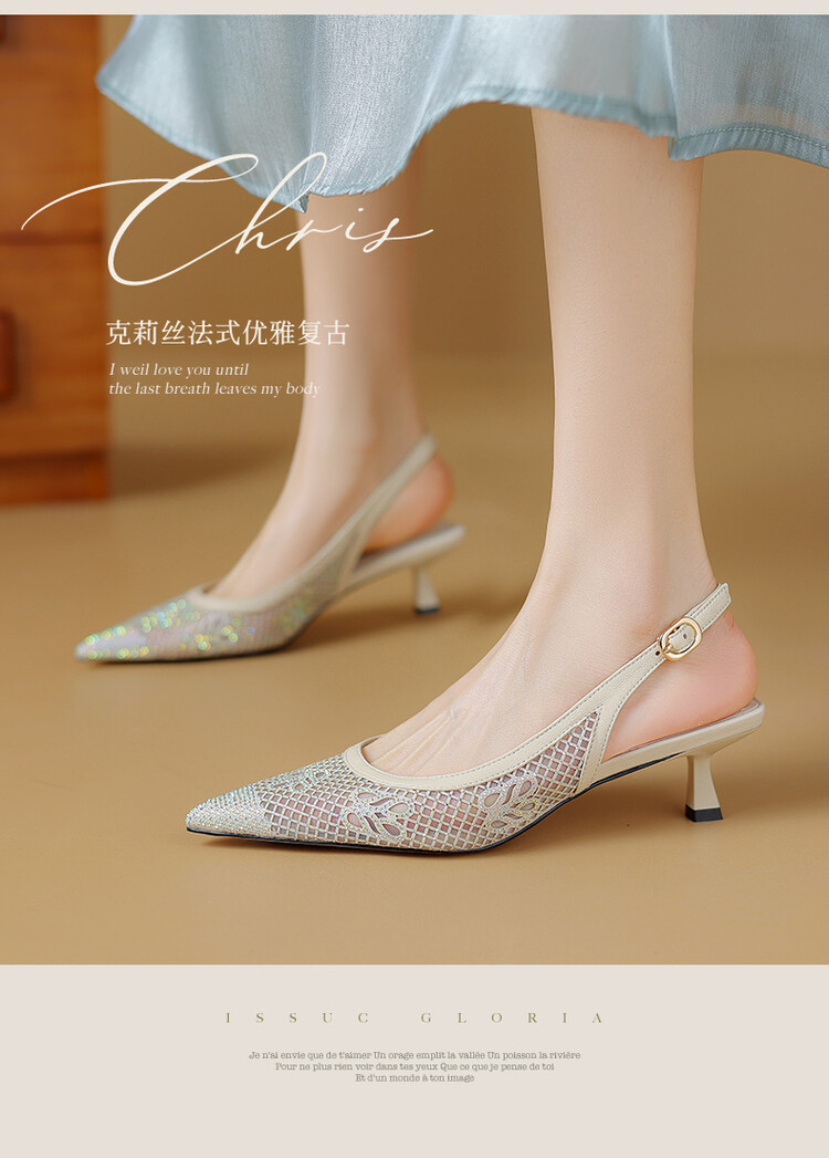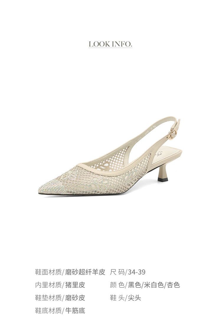 【预售5天】法式高跟单鞋,女鞋子新款布纹尖头气质简约黑色晚风凉鞋YS&5270