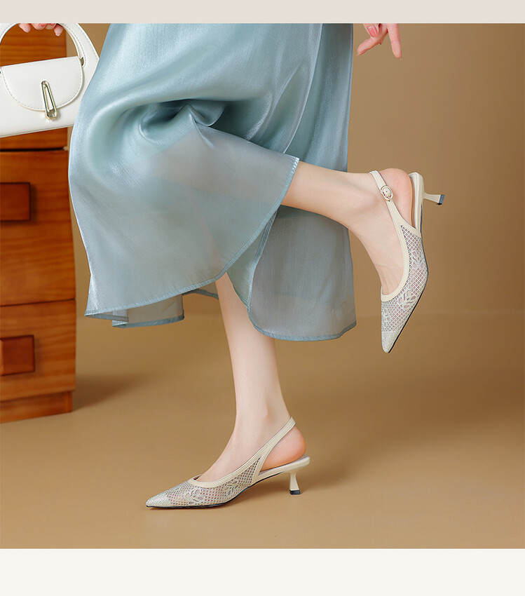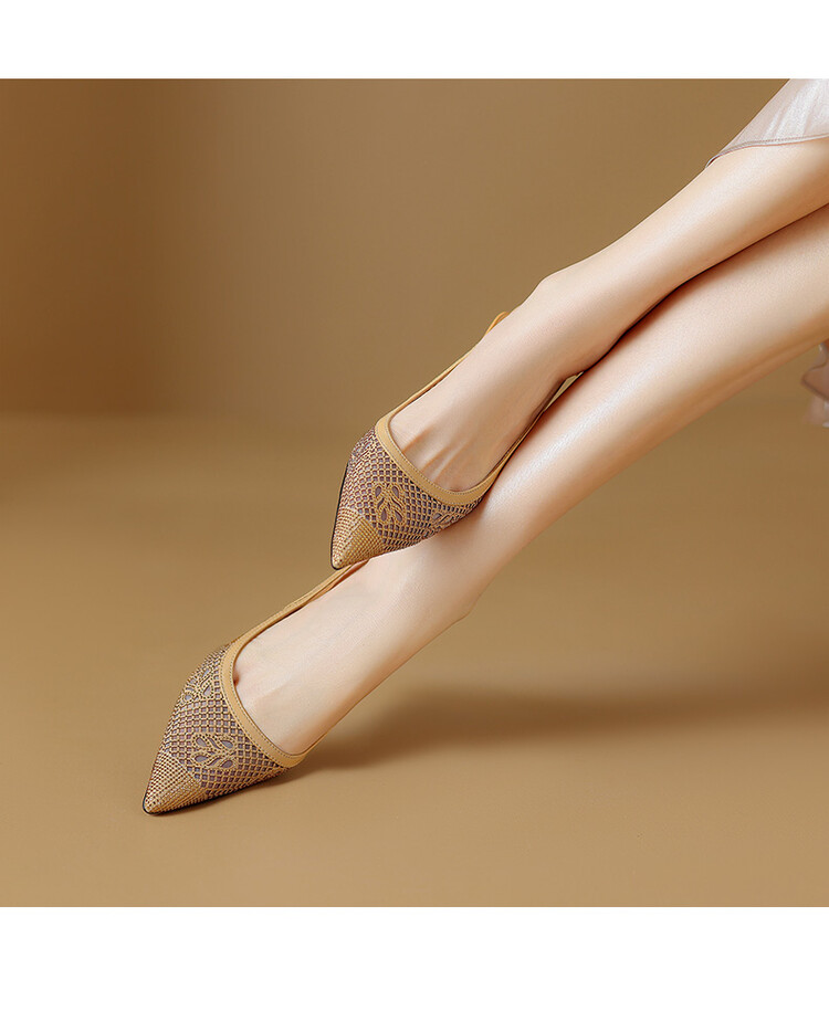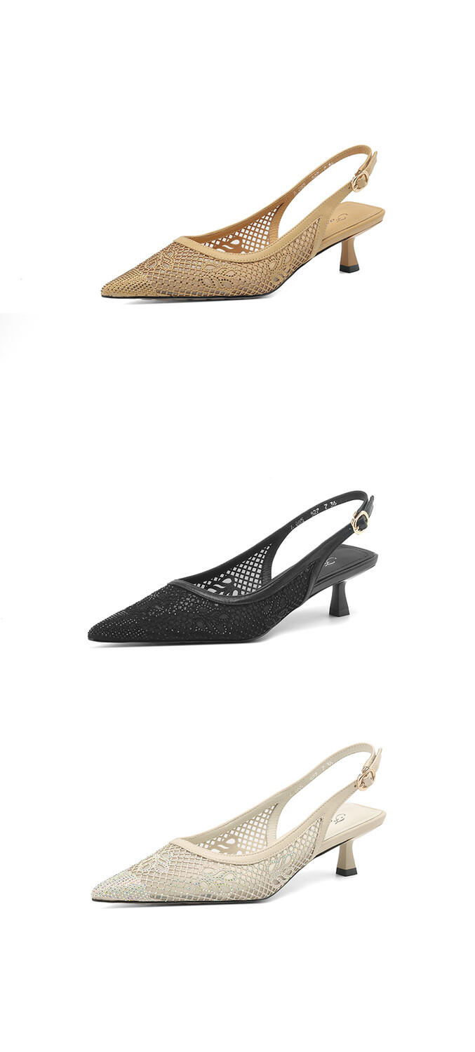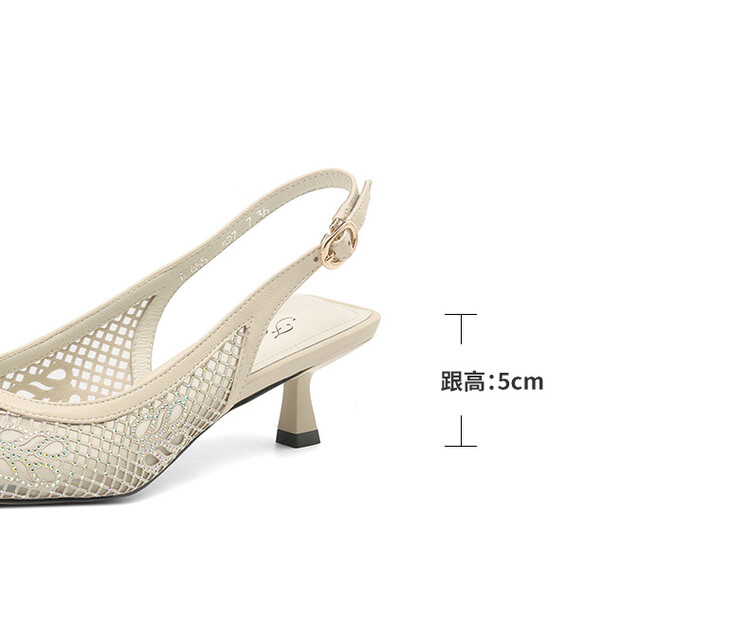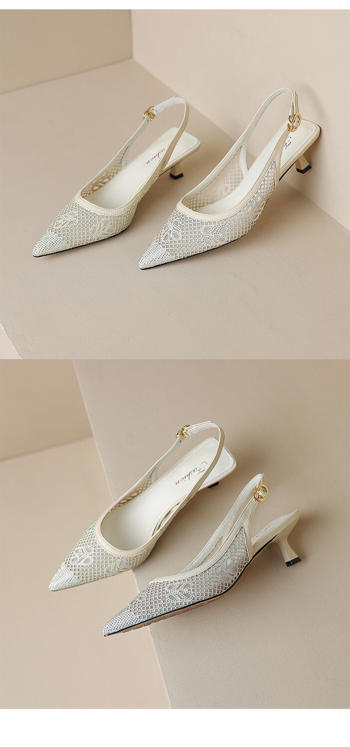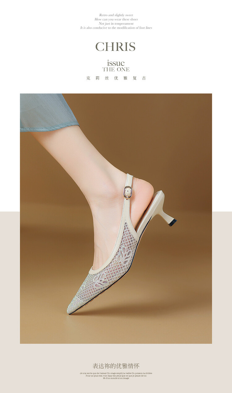 【预售5天】法式高跟单鞋,女鞋子新款布纹尖头气质简约黑色晚风凉鞋YS&5270