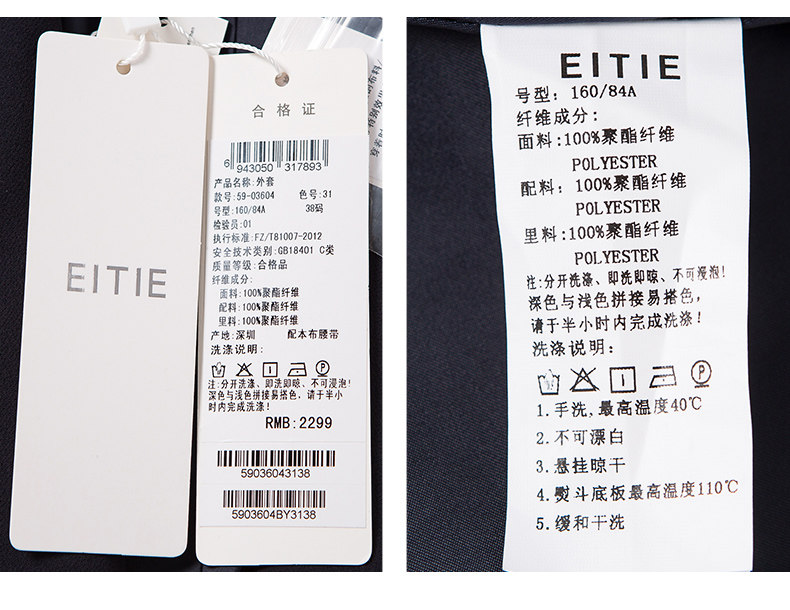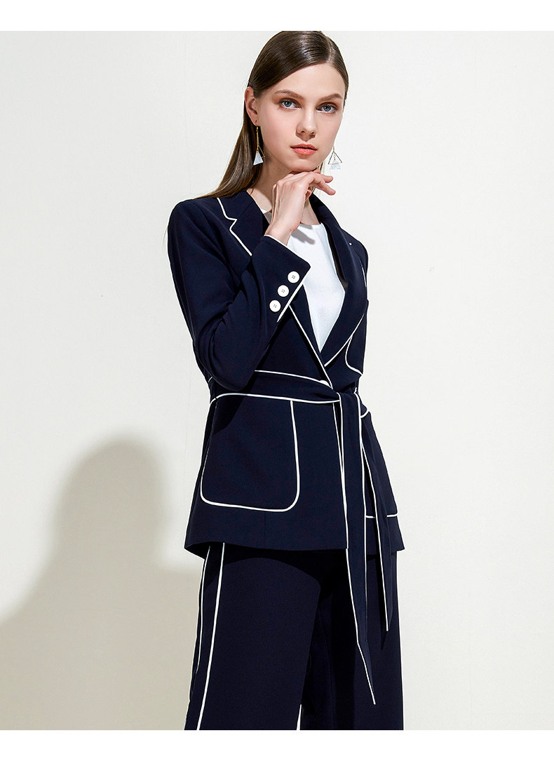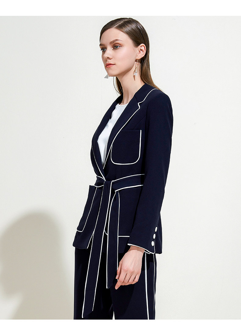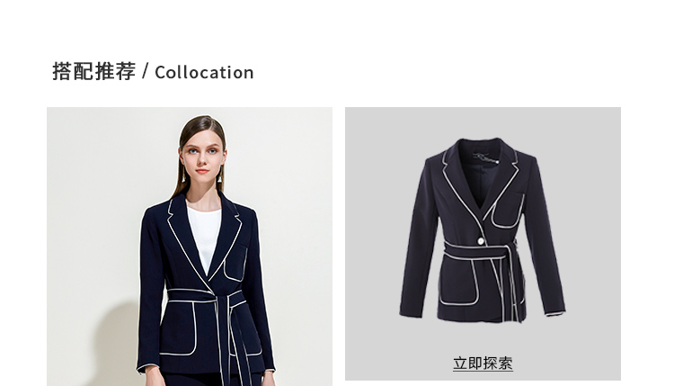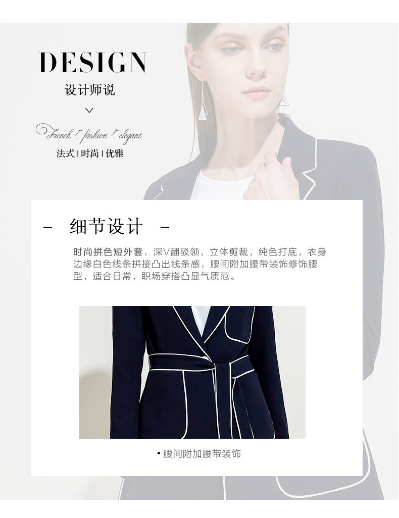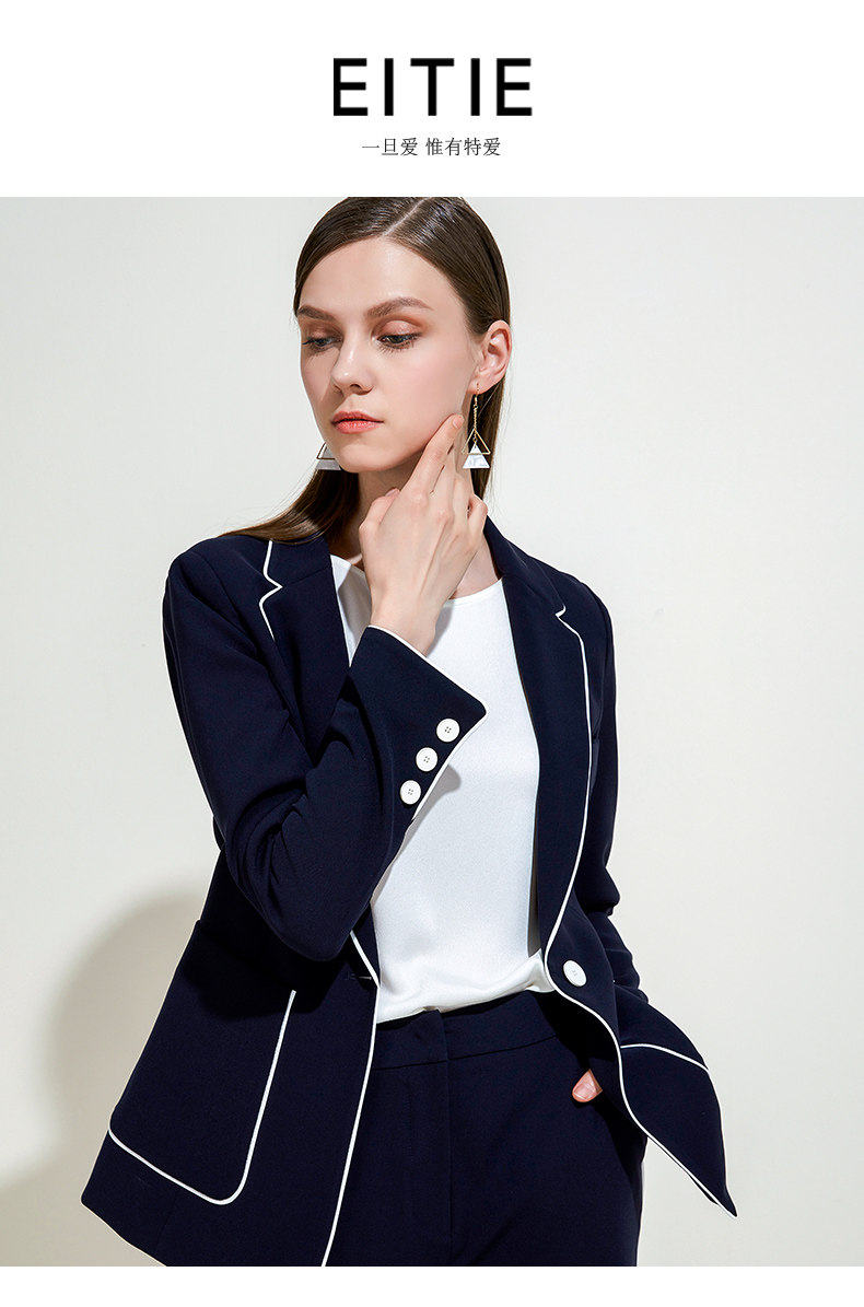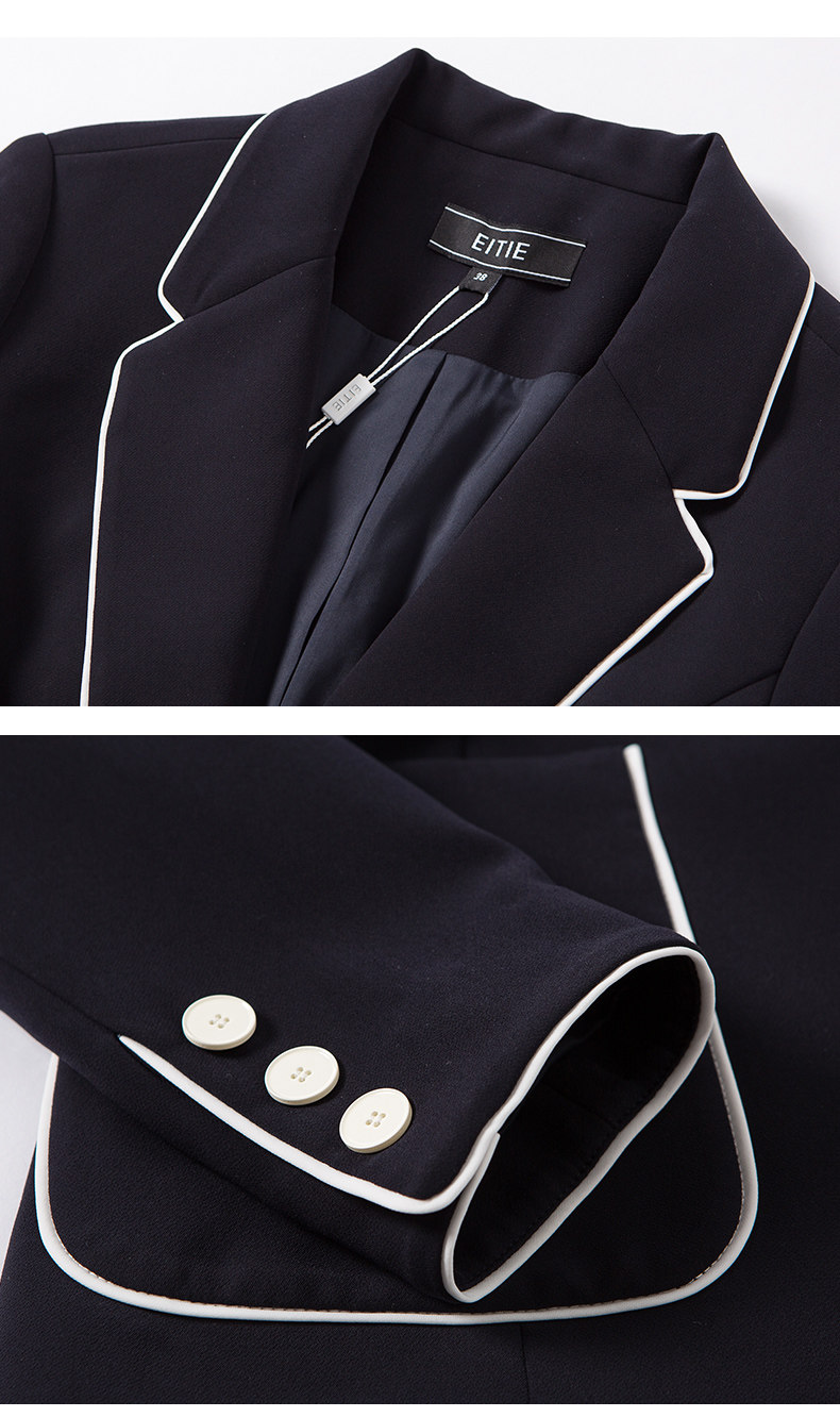 EITIE爱特爱春季气质翻领线条拼色收腰显瘦时尚优雅短外套女5903604