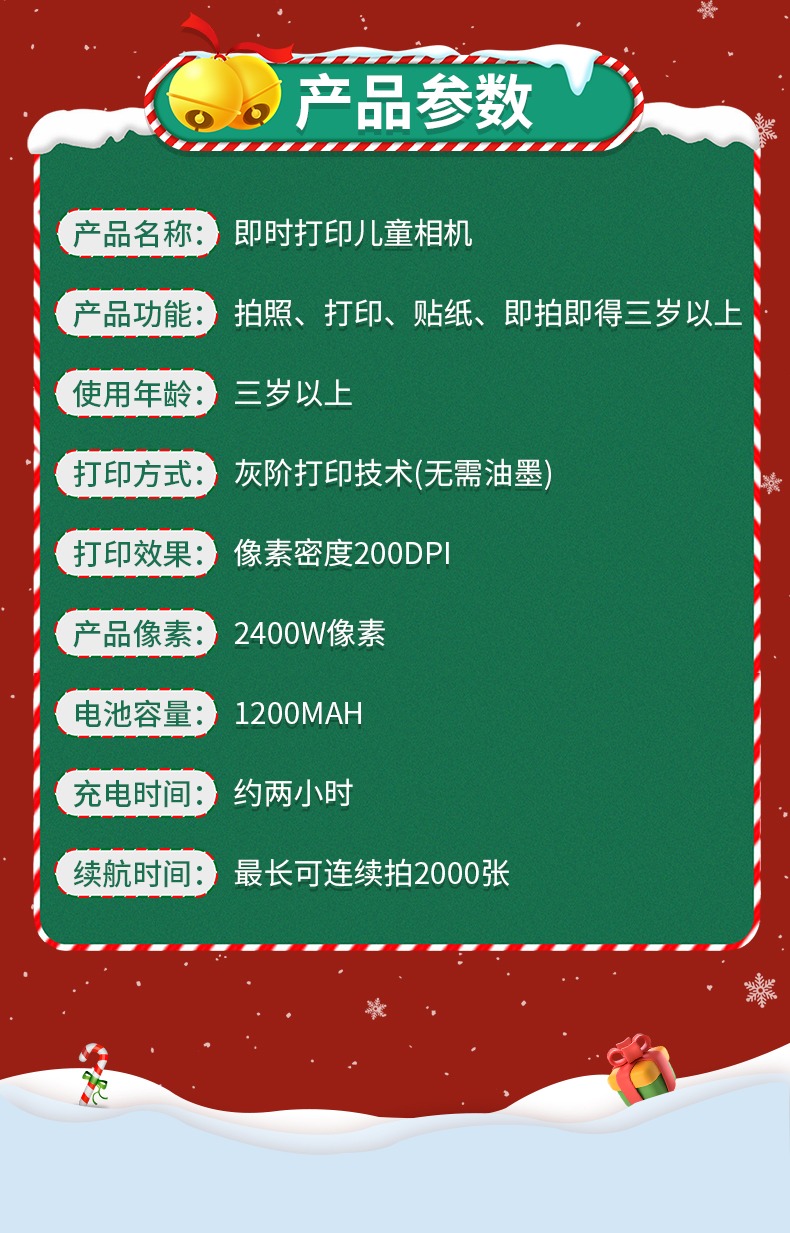 圣诞拍立得打印相机