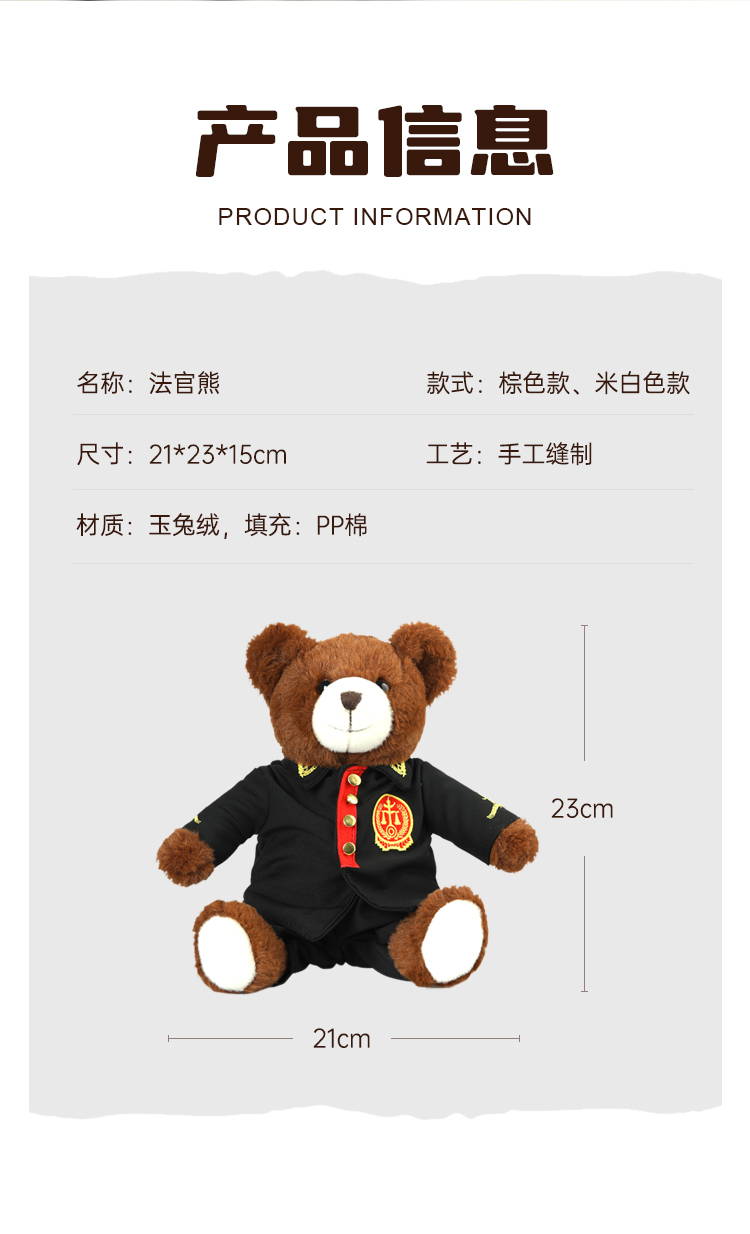 【法官熊】儿童毛绒公仔玩具 精致小熊玩偶布娃娃摆件