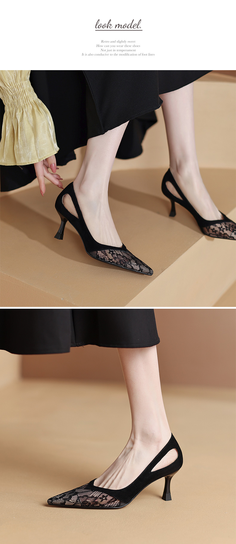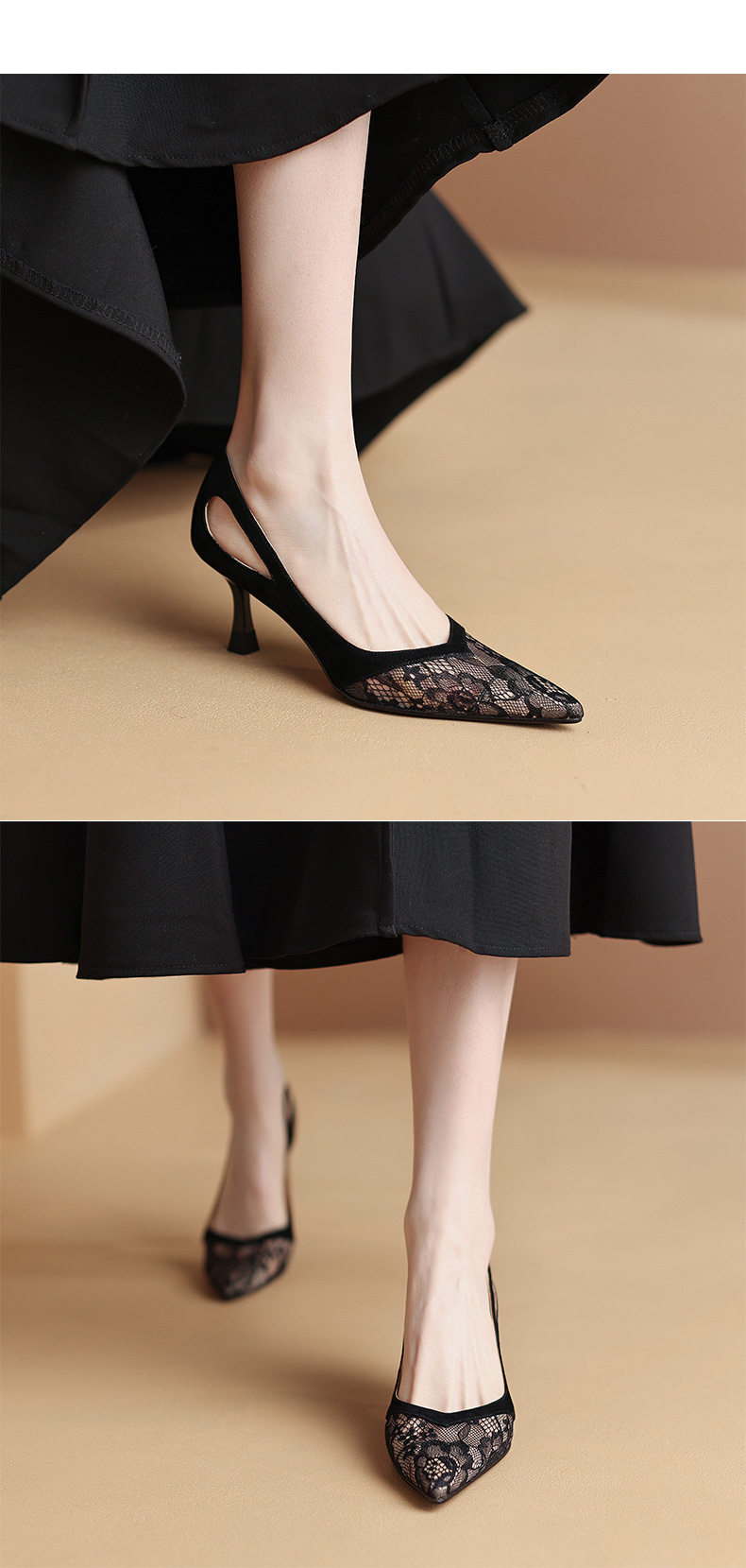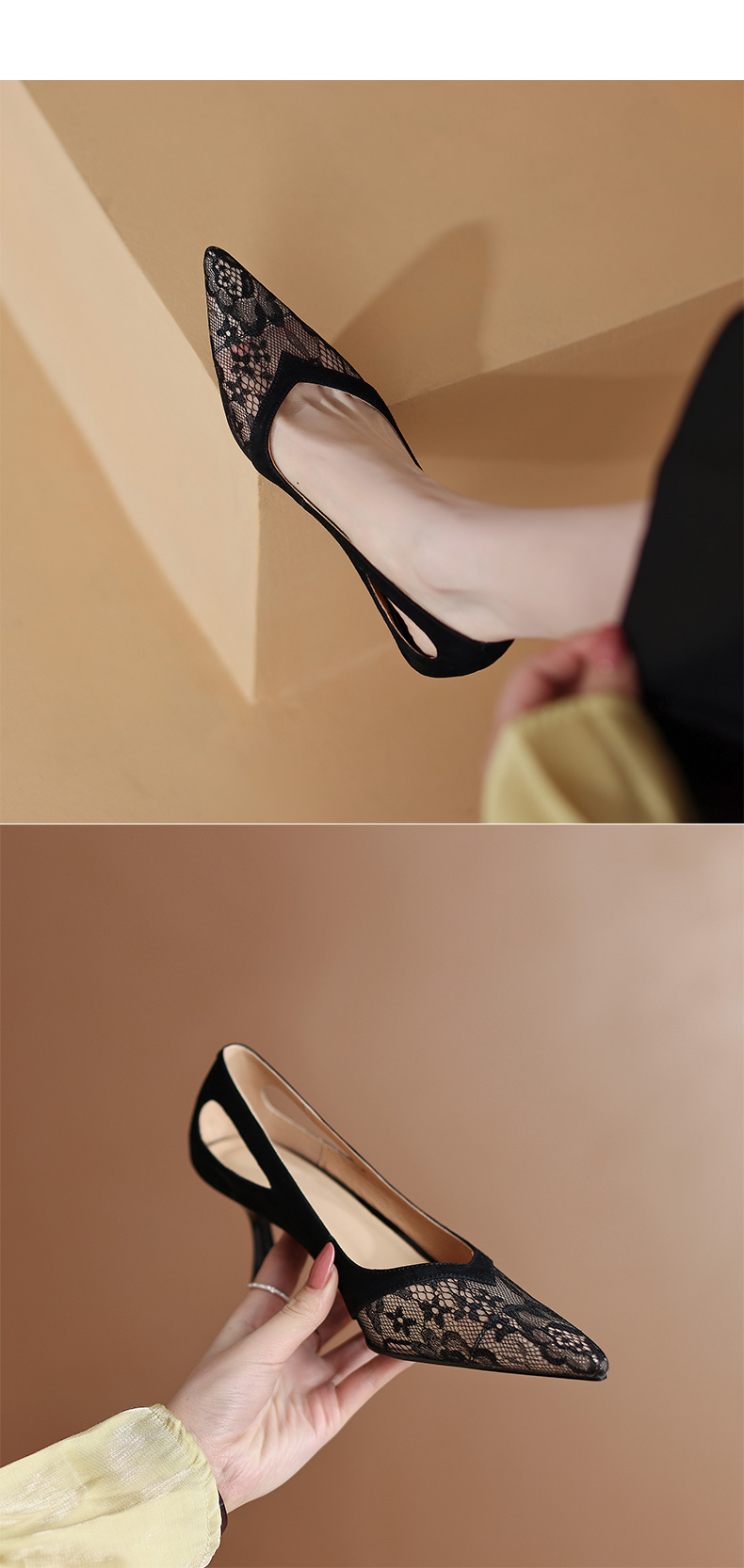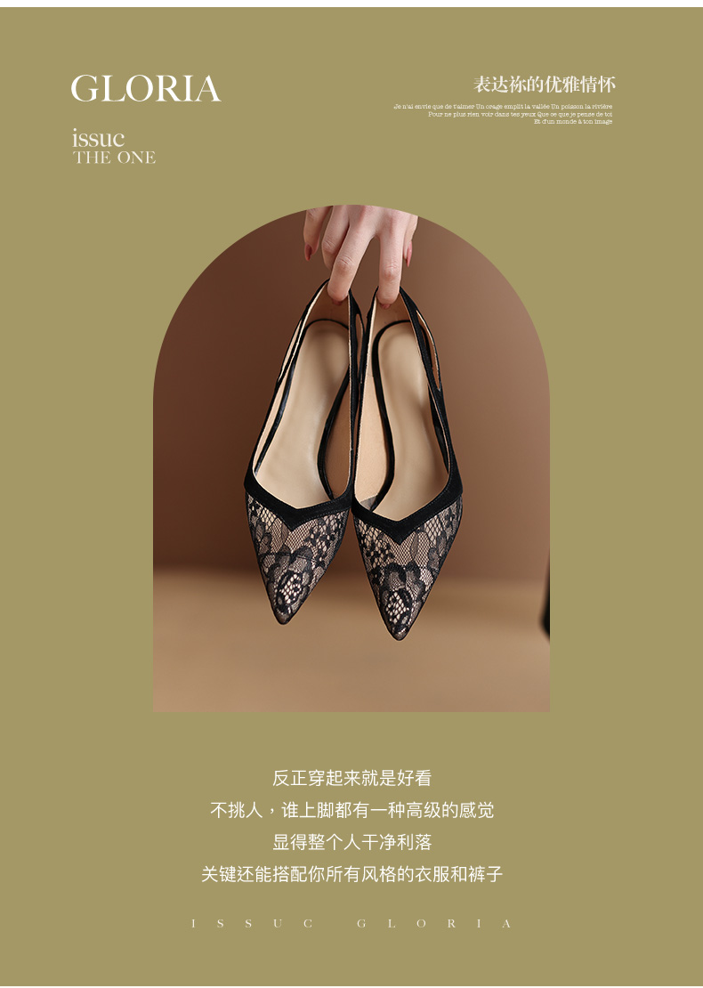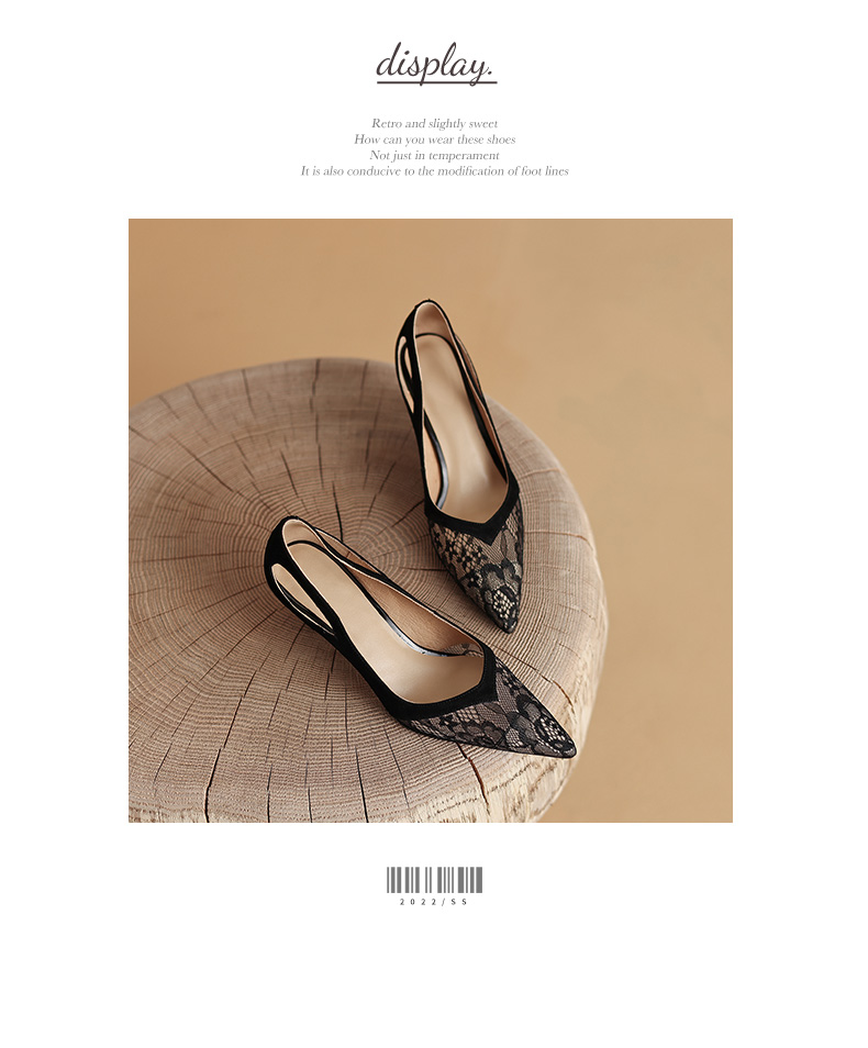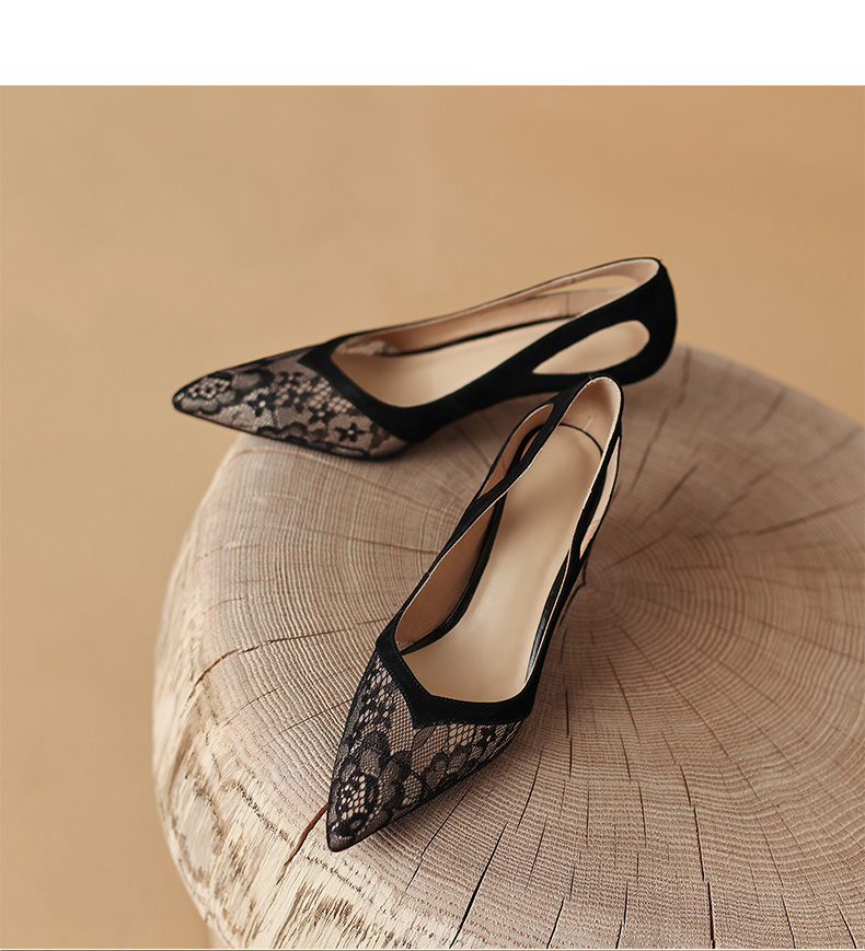 尖头细跟镂空,蕾丝浅口单鞋 DB-M5273