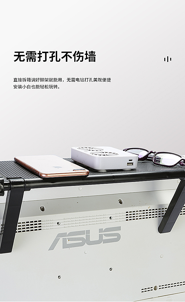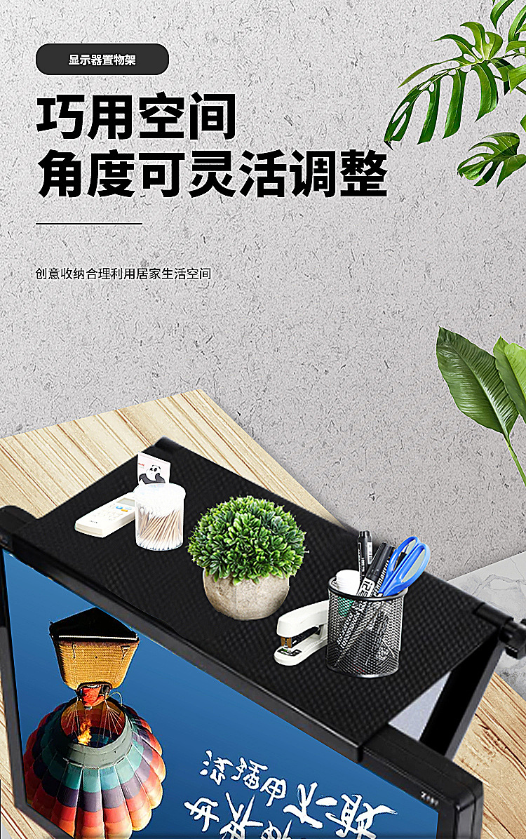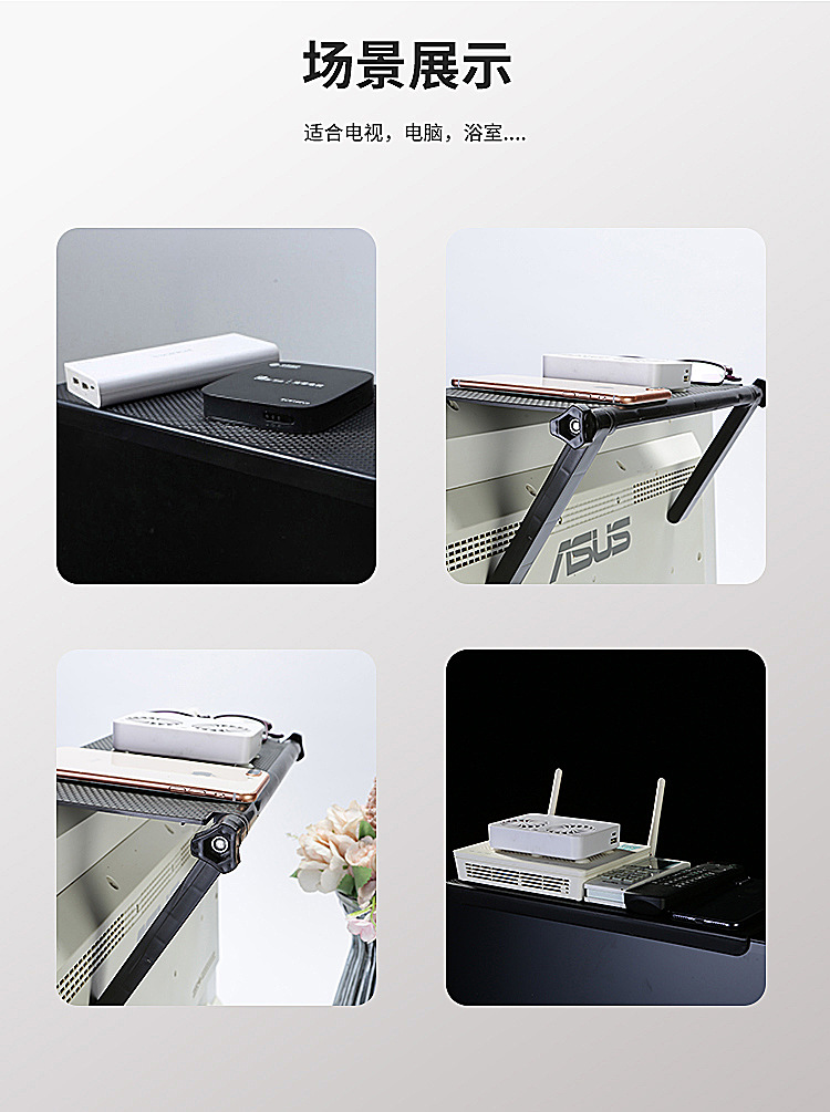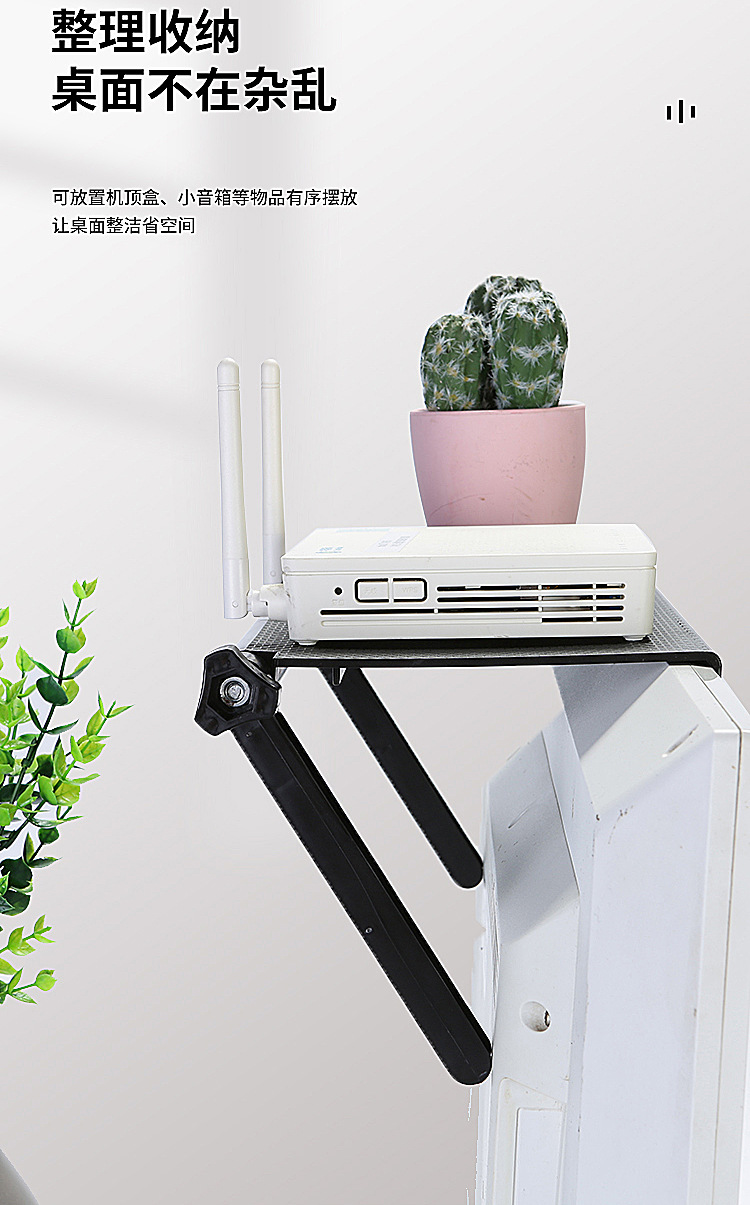 星罗免打孔电脑电视机置物架 显示屏路由器机顶盒桌面收纳架子整理支架-W仓