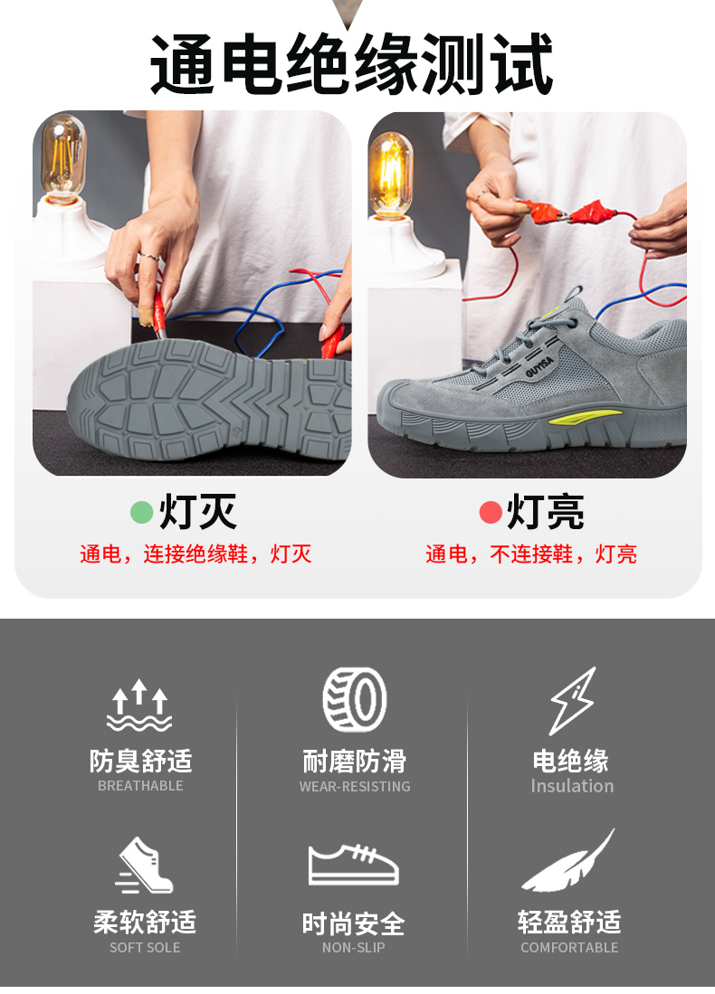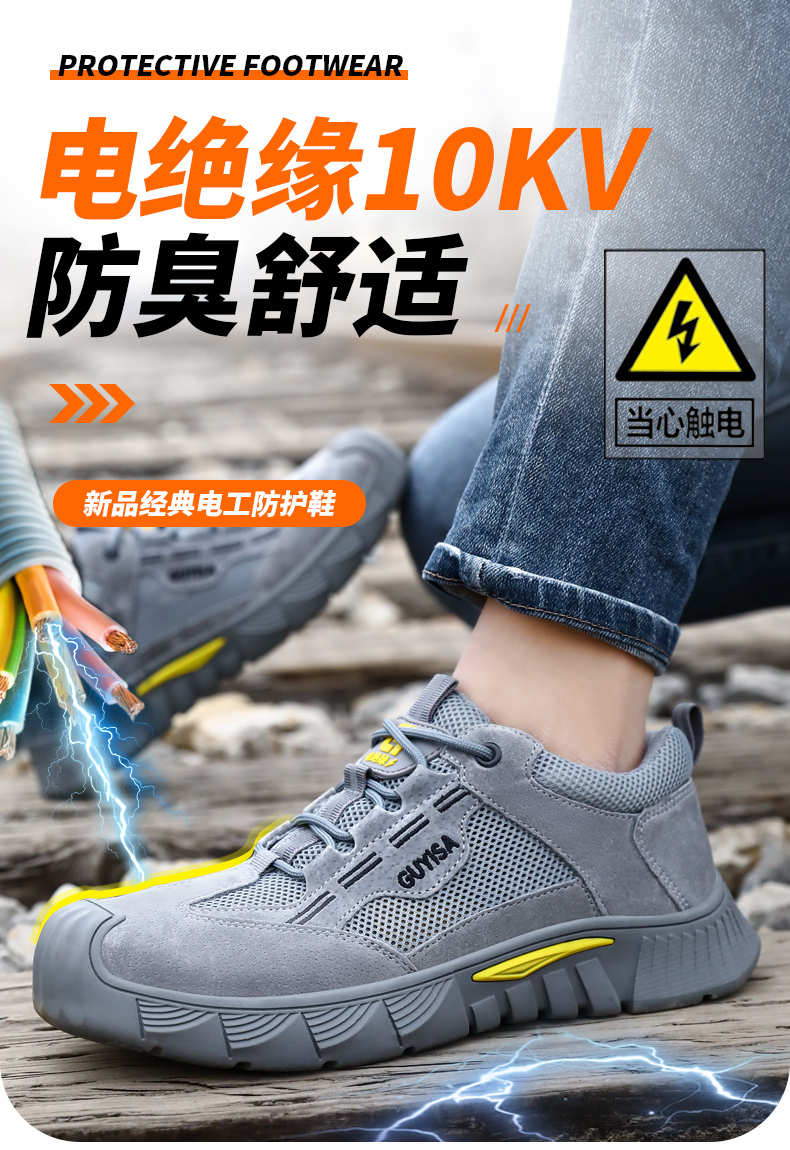 夏季款无包头无中底橡胶底劳保鞋绝缘鞋10KV电工专用工作安全鞋猪巴皮不防砸不防刺工作鞋