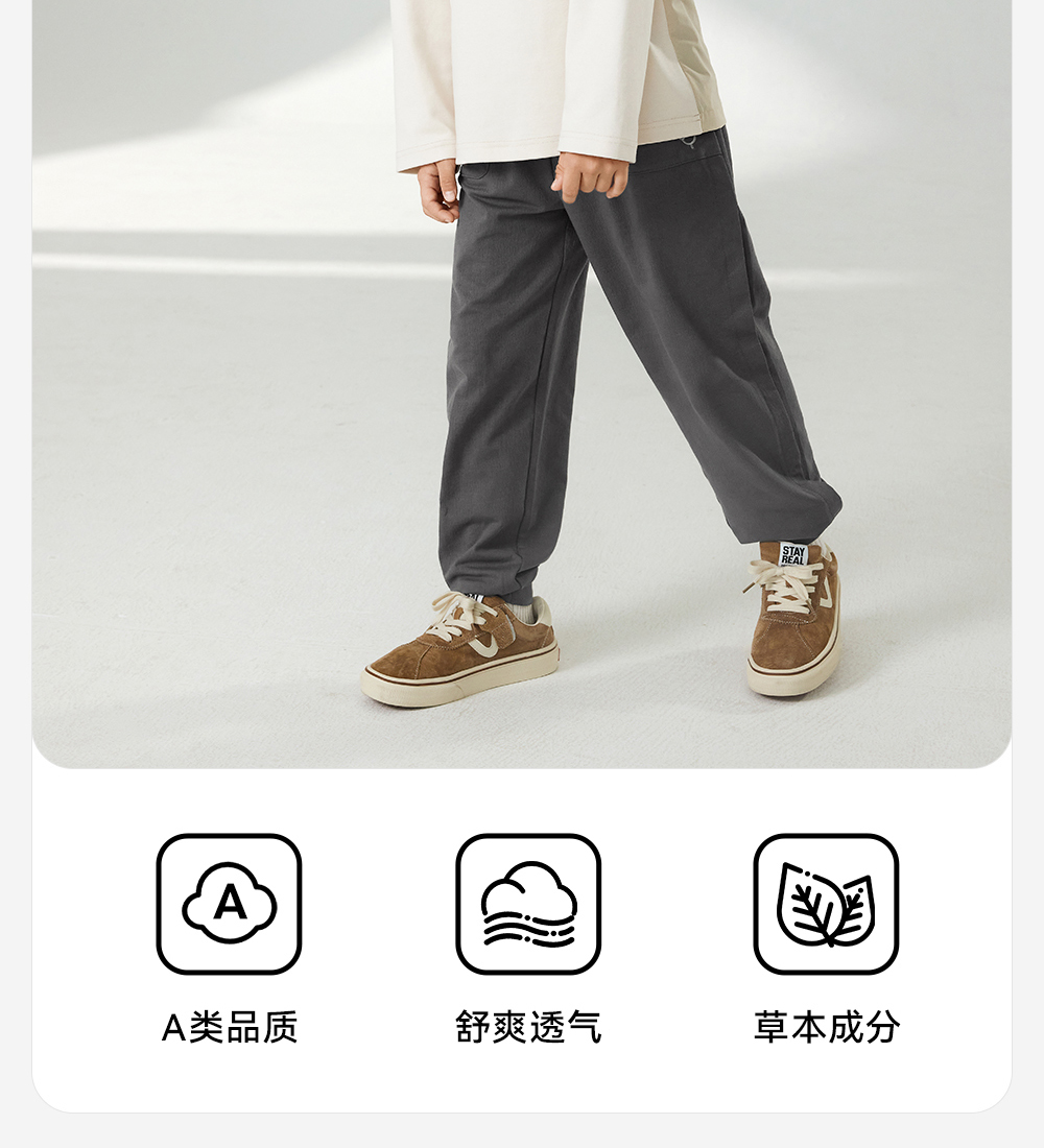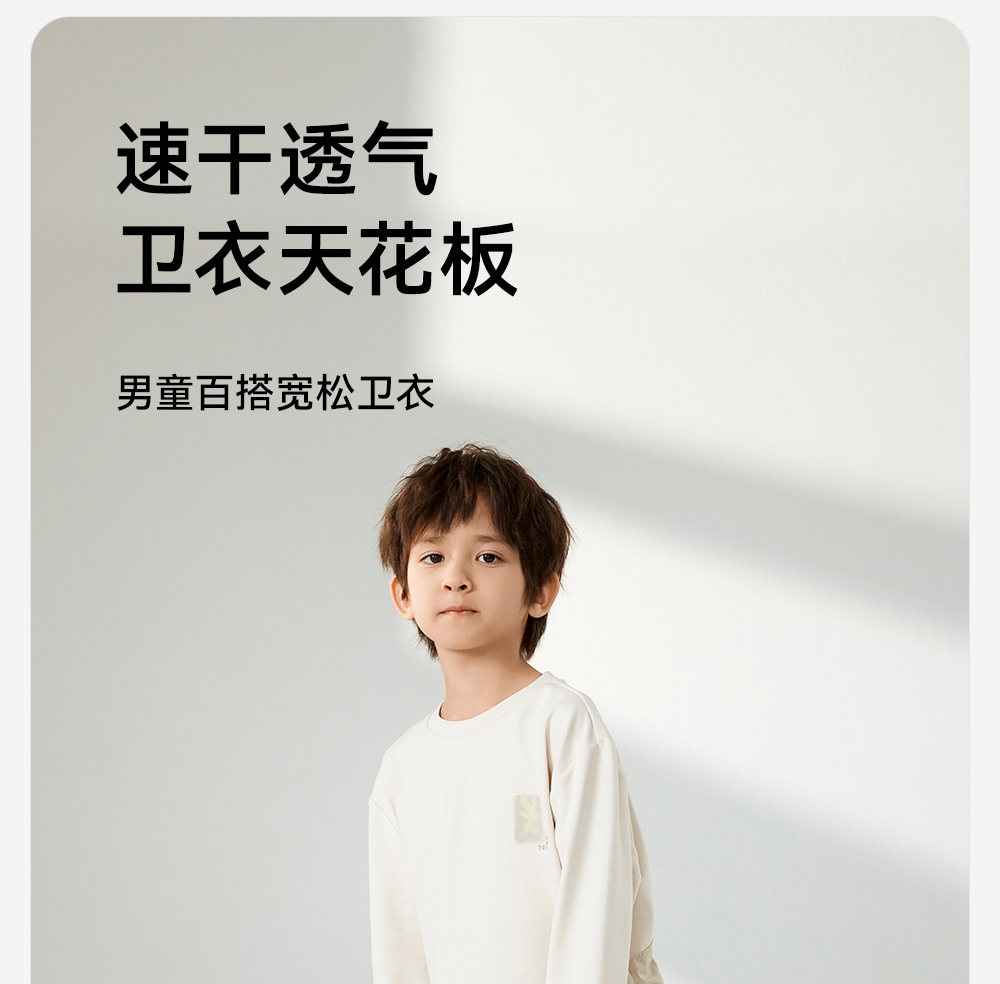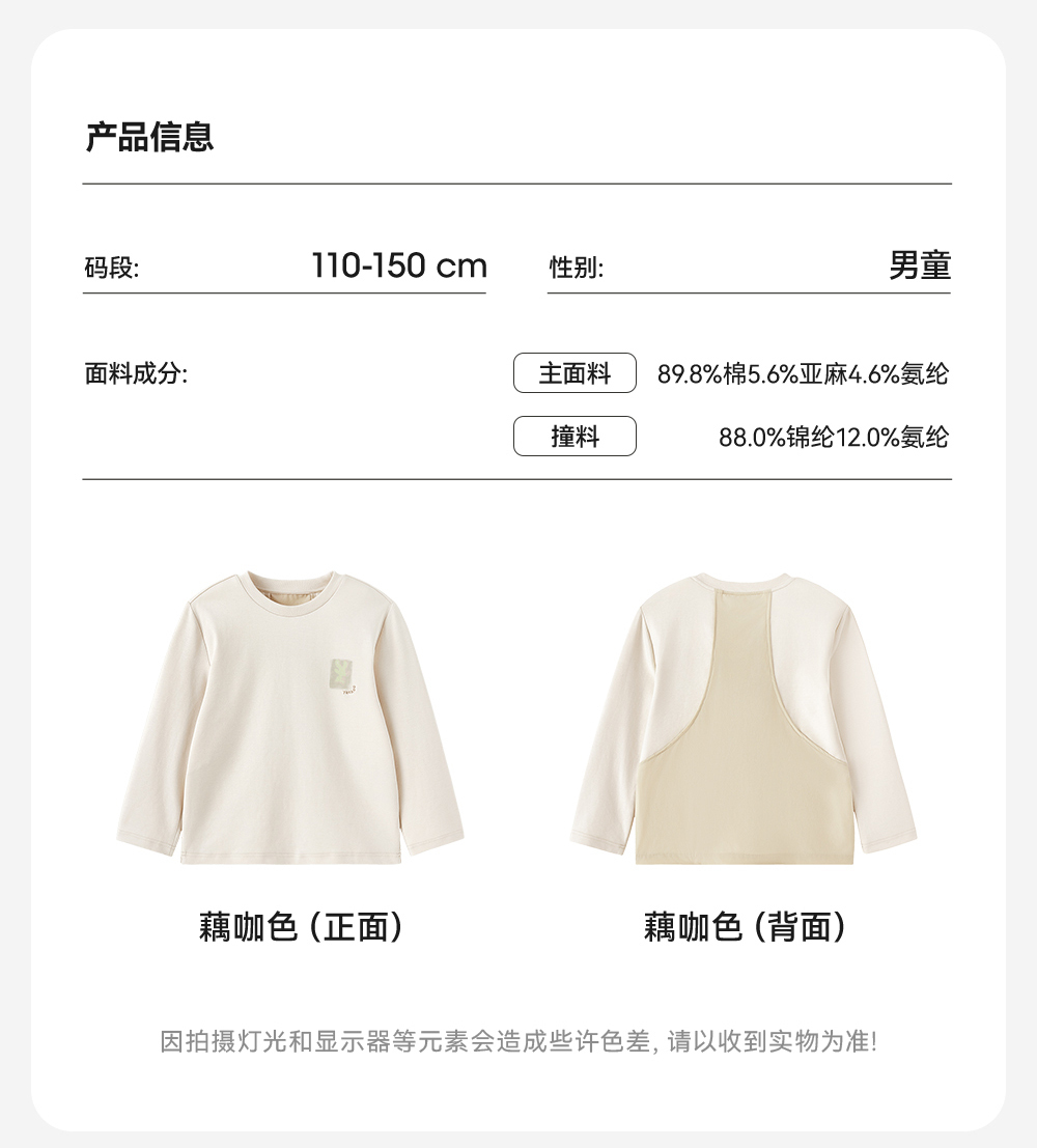 【商场同款】英氏儿童打底衫春夏男童长袖透气T恤亚麻休闲净色