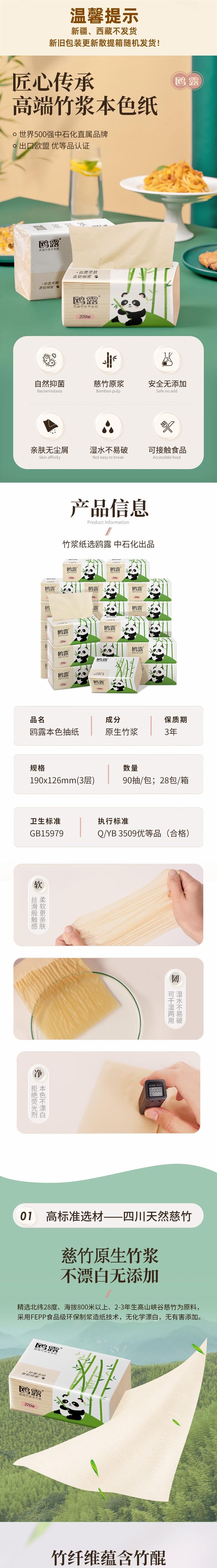 鸥露 竹浆本色抽纸3层90抽28包*2箱 OLBJ90S282