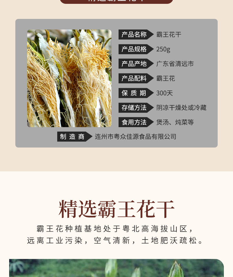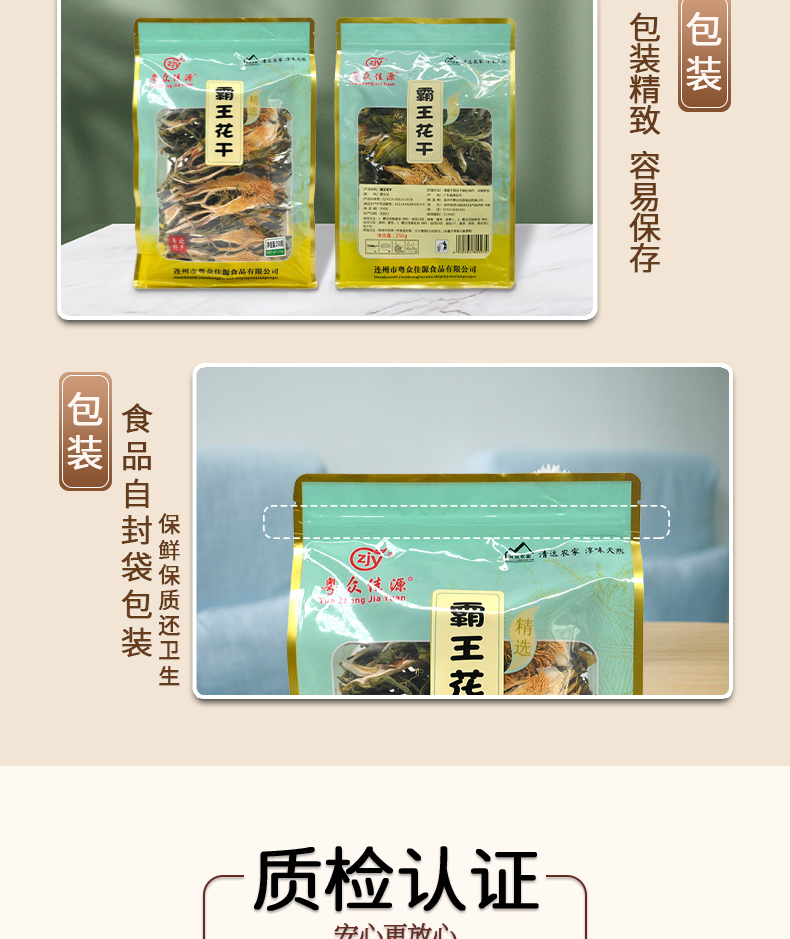 连州粤众佳源霸王花干八边封自立袋250克蔬菜干制品