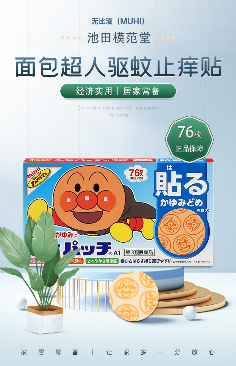 【门店直发】日本进口MUHI池田模范堂面包超人儿童止痒驱蚊贴蚊虫叮咬76枚