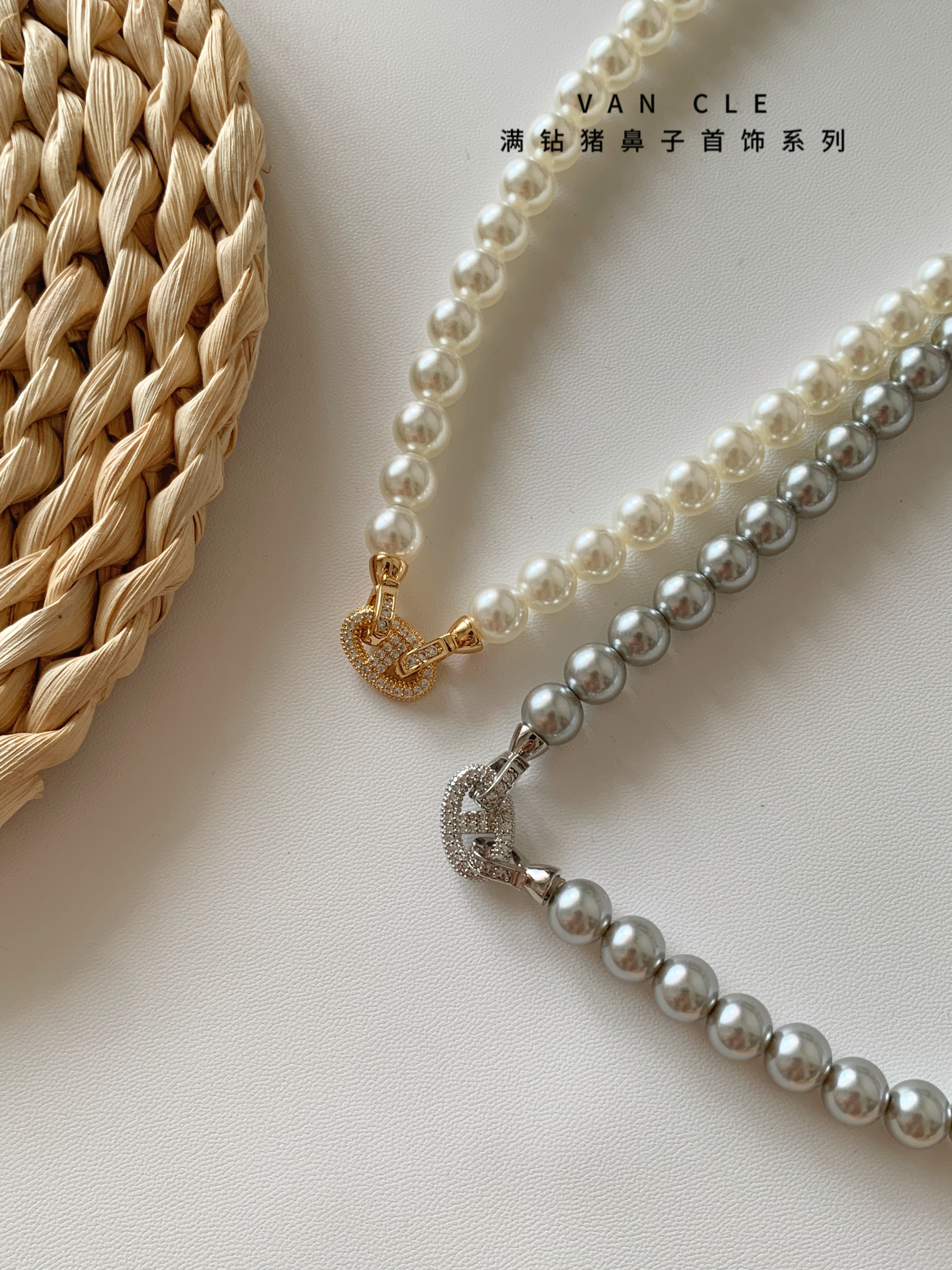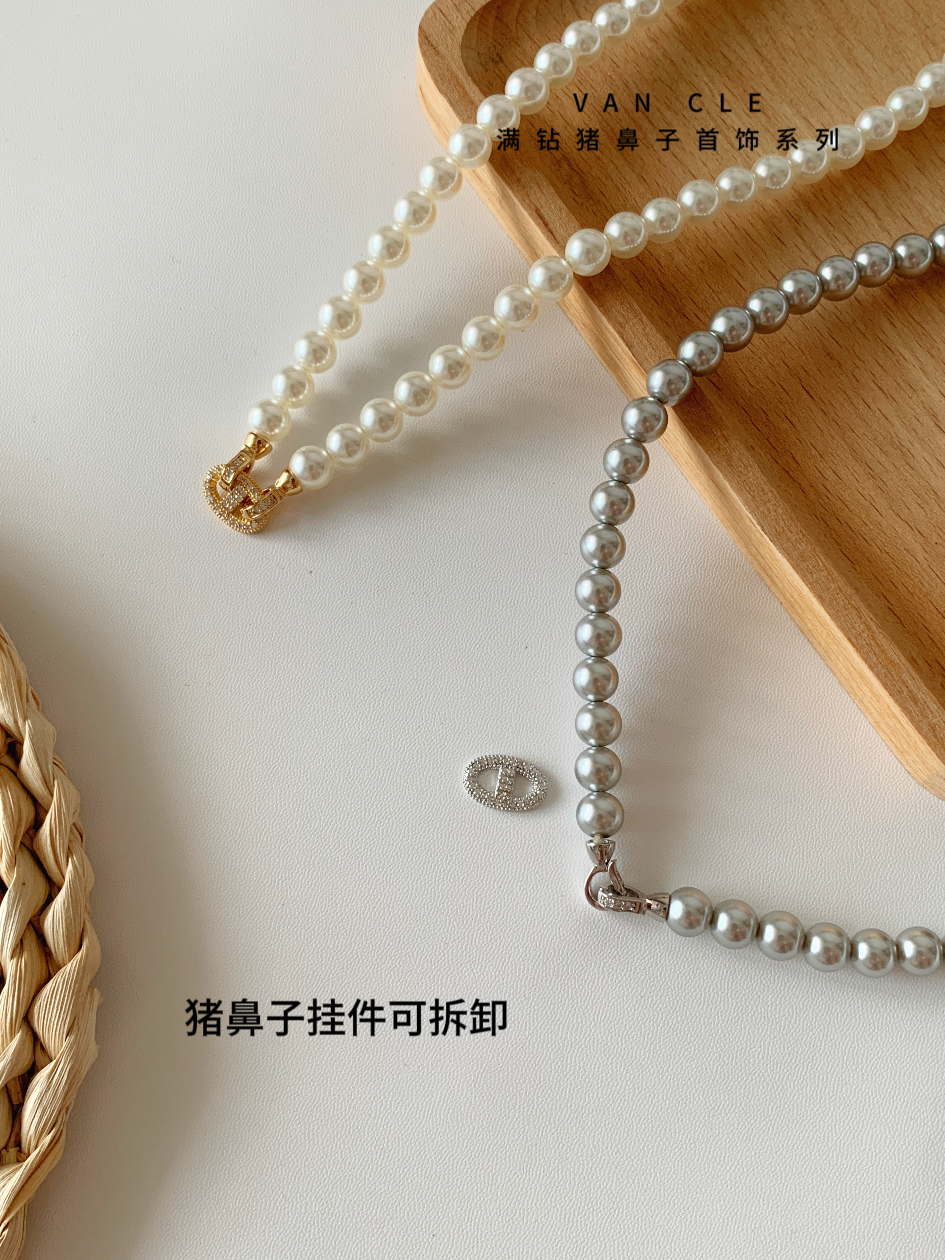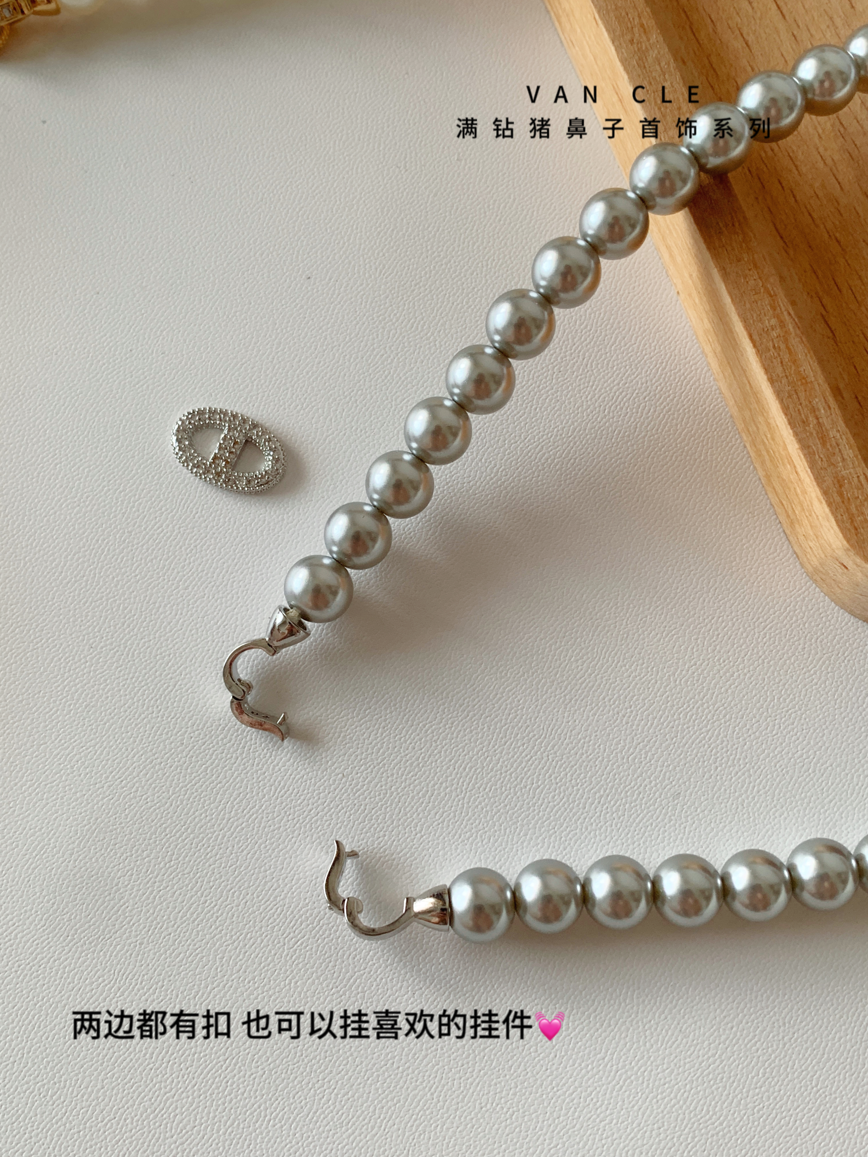 规格:8mm珍珠项链、 猪鼻子皮带扣手链、戒指、耳钉
