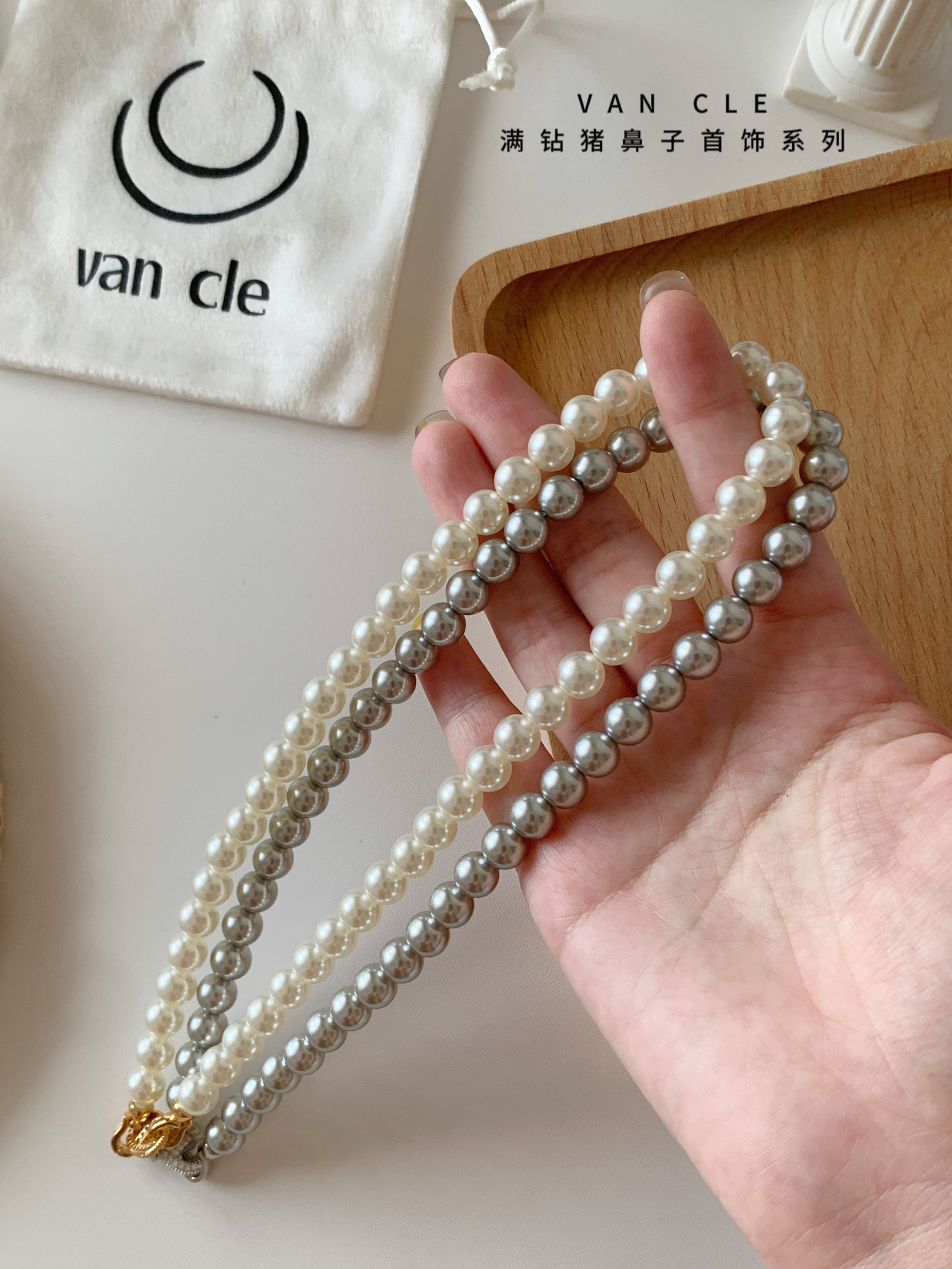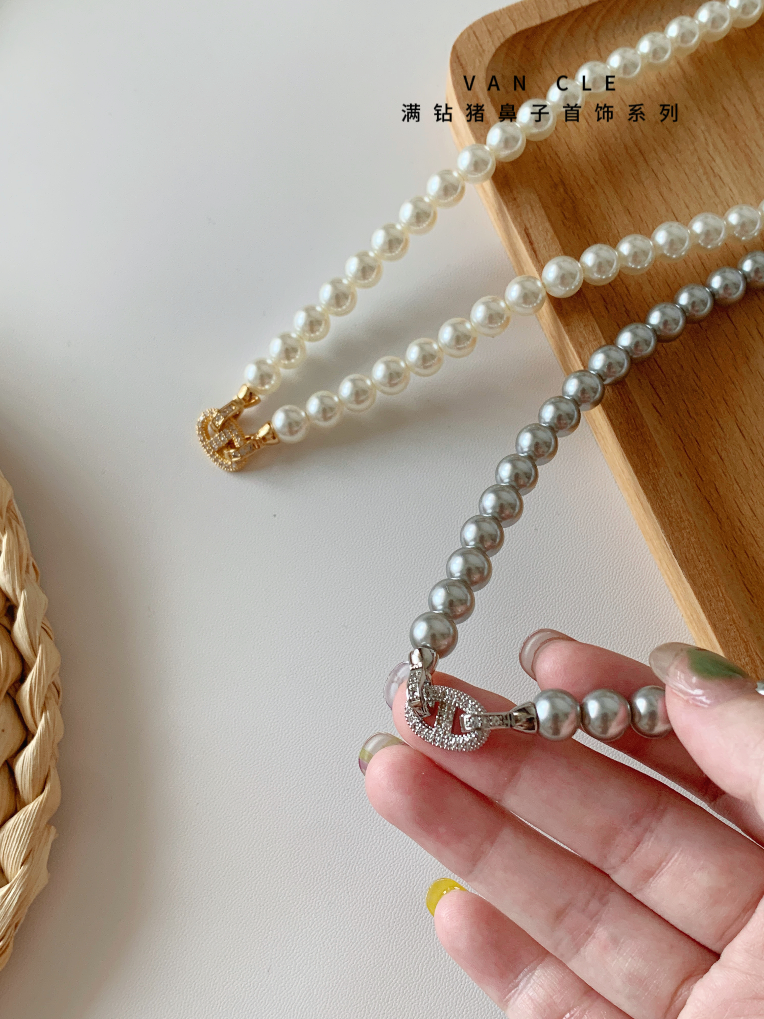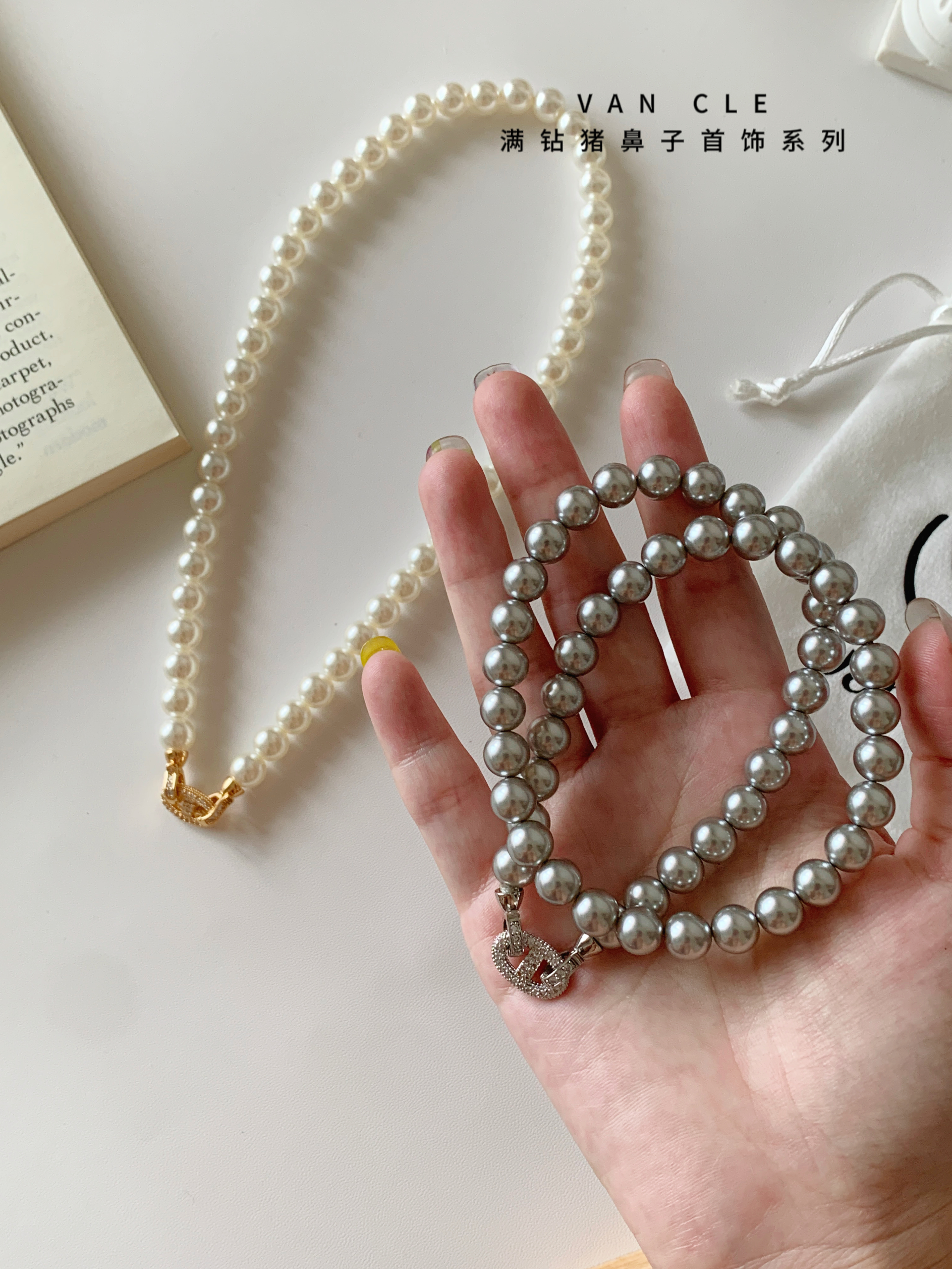 规格:8mm珍珠项链、 猪鼻子皮带扣手链、戒指、耳钉