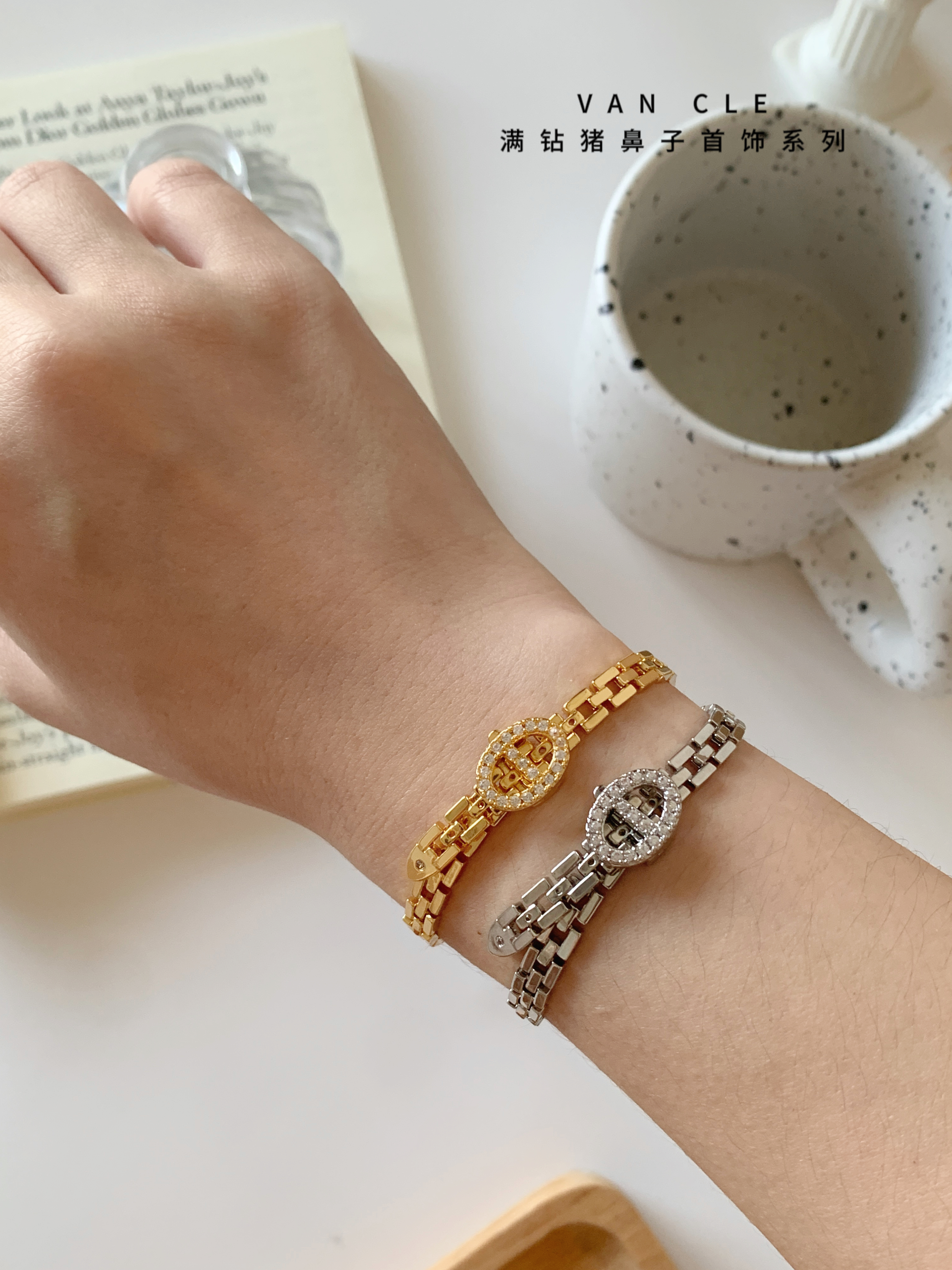 七夕首选 【VAN CLE猪鼻子满钻轻奢首饰系列】优雅百搭 送人自留都合适 经典金银双色