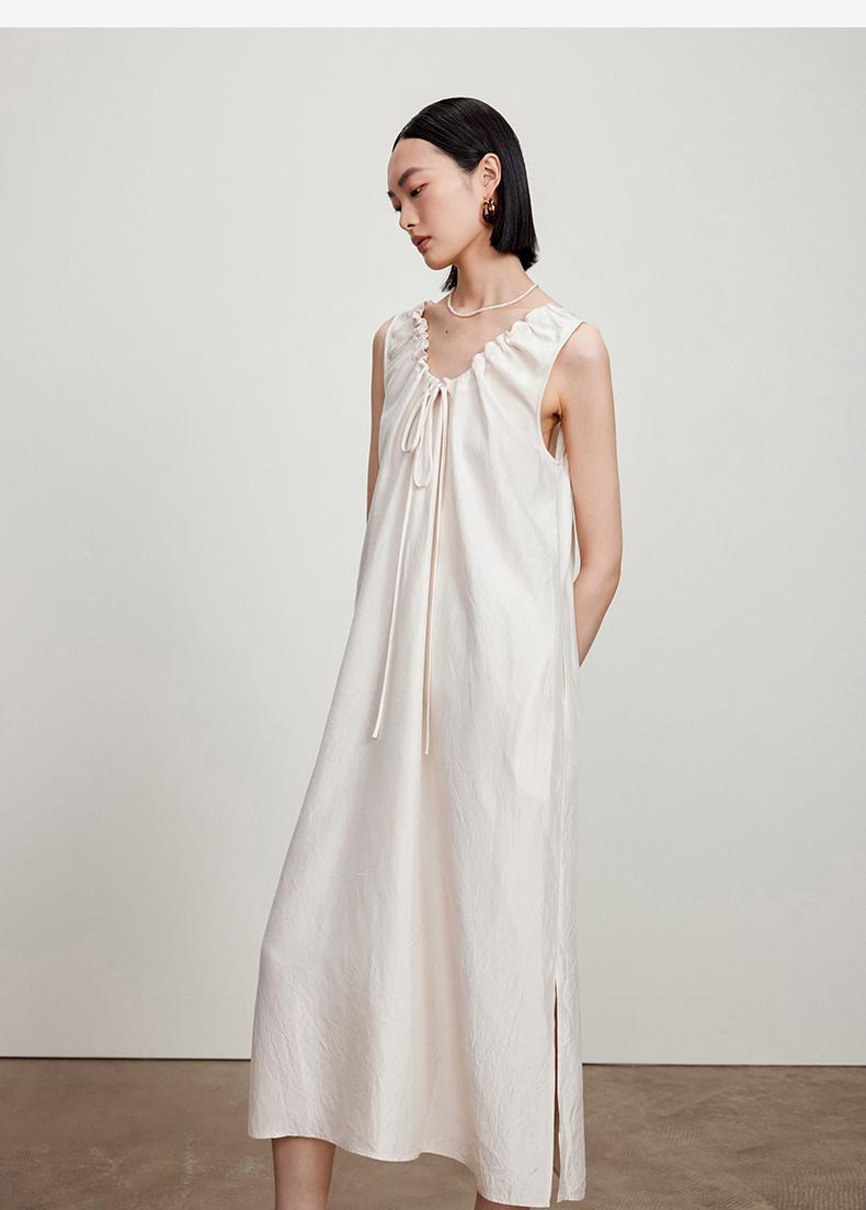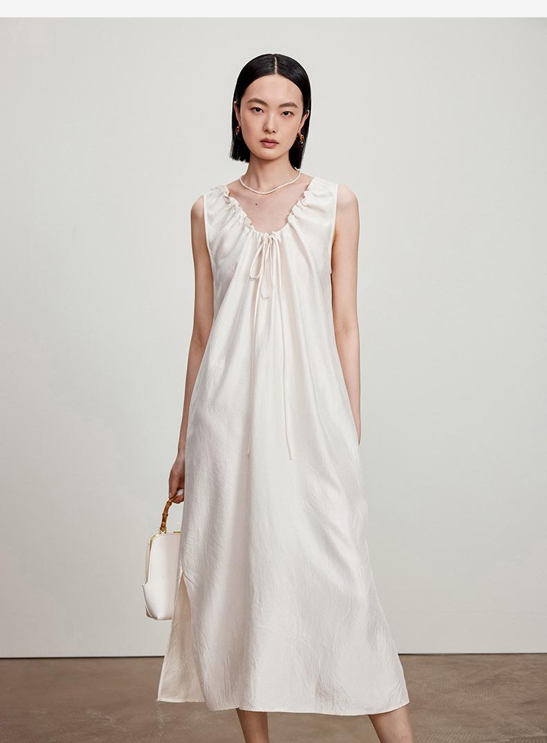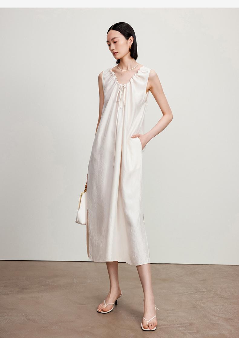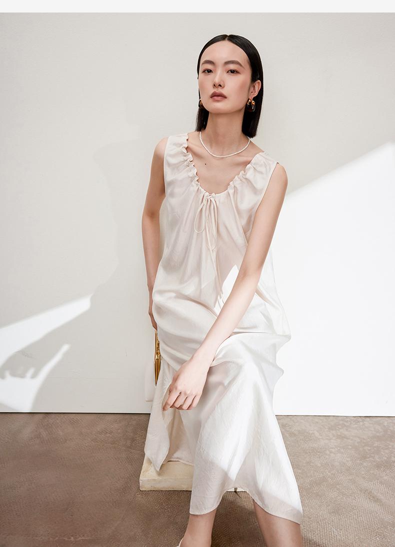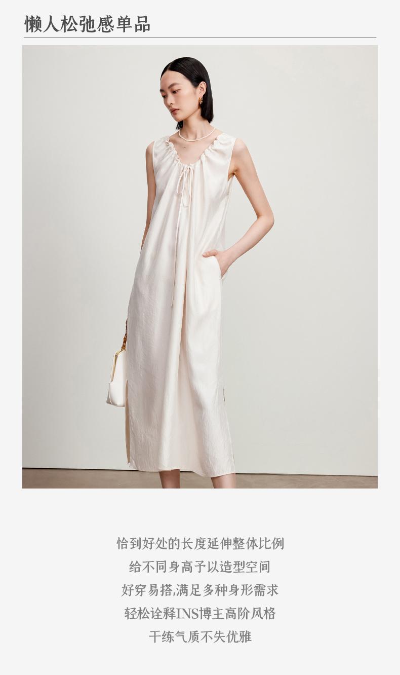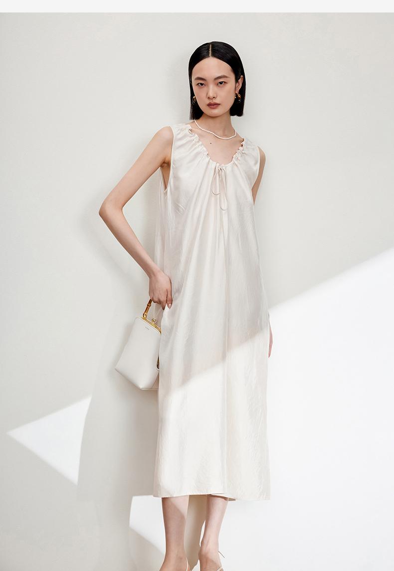 西嘉C+IMPRESS/西嘉醋酸多穿抽绳无袖慵懒风宽松法式连衣裙女夏优雅LYQ2402036