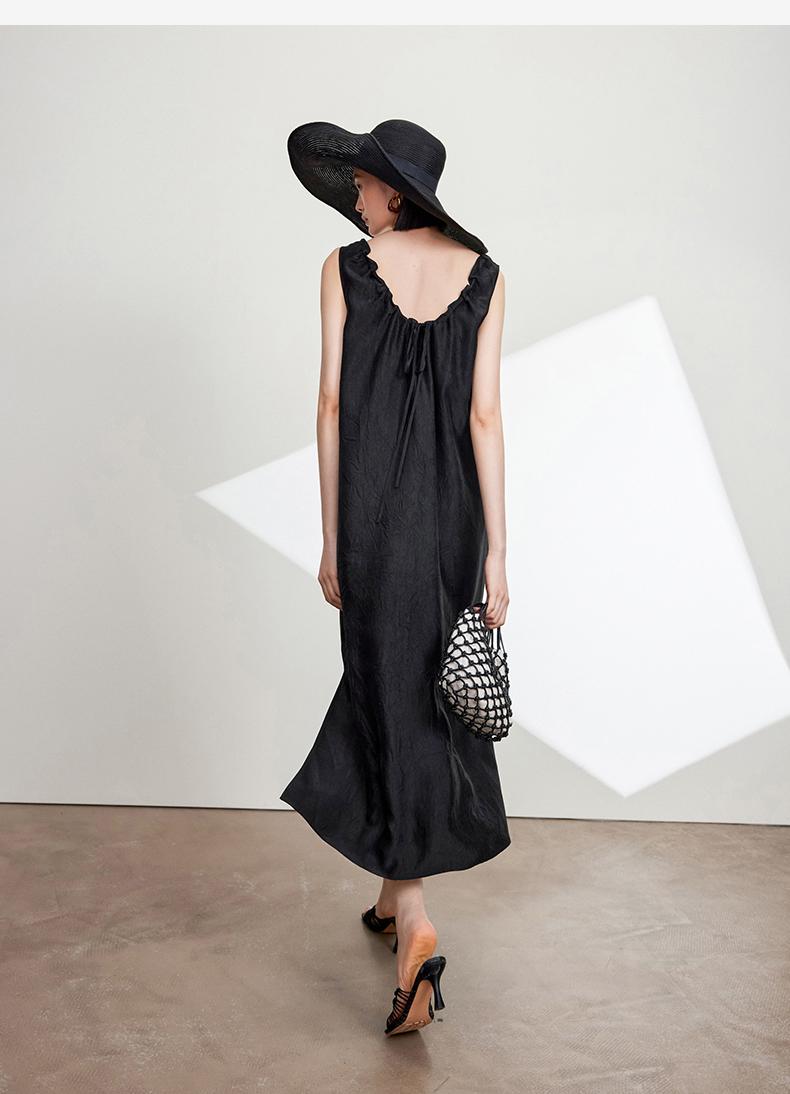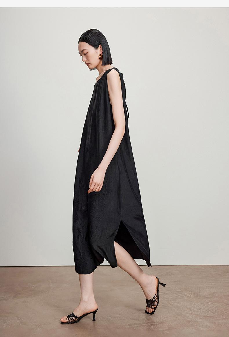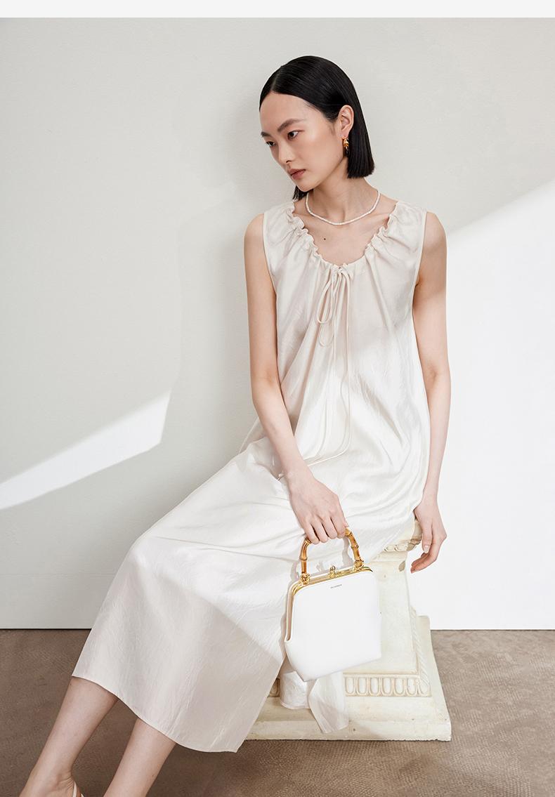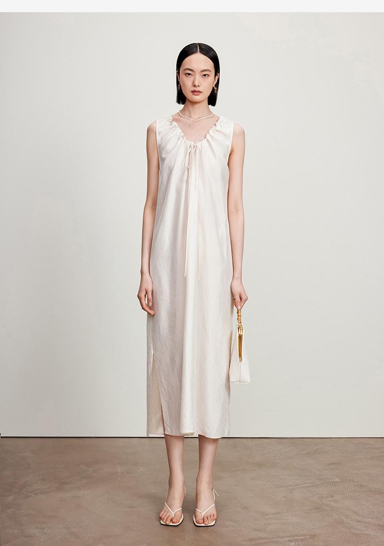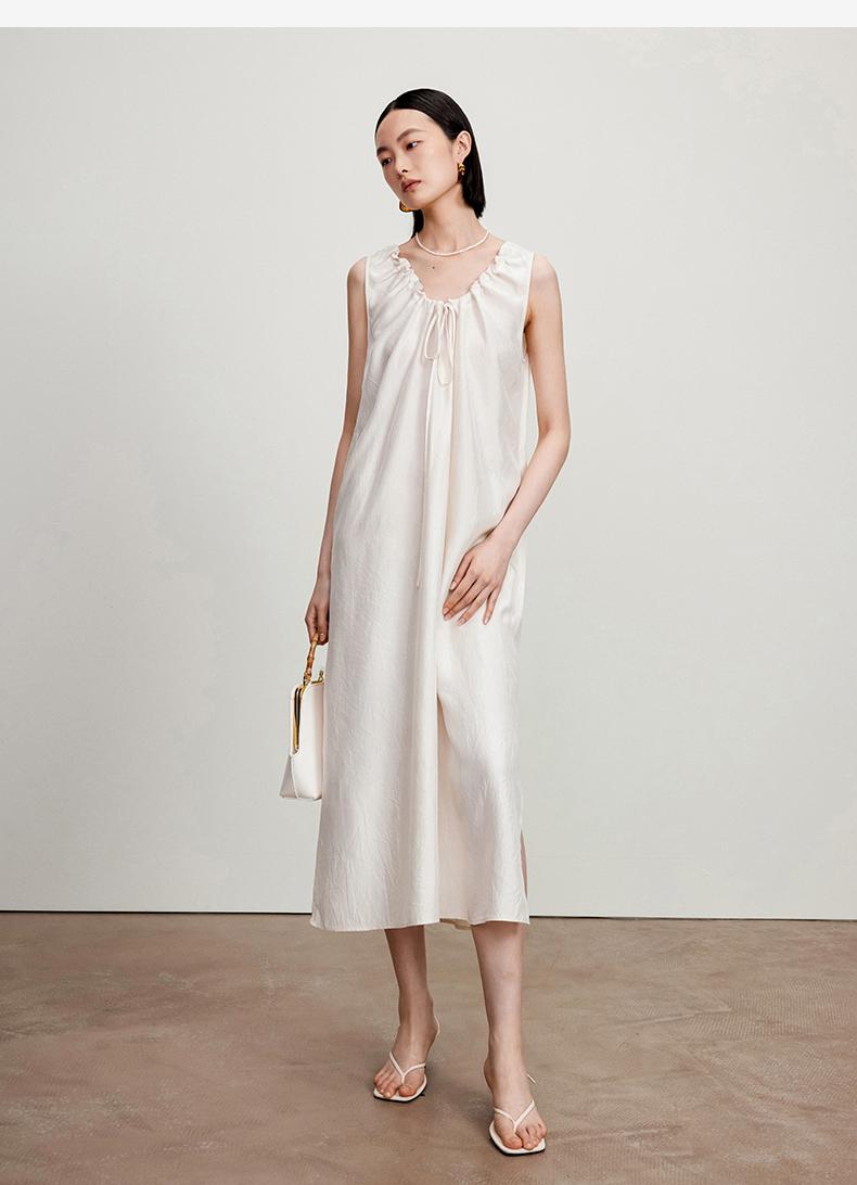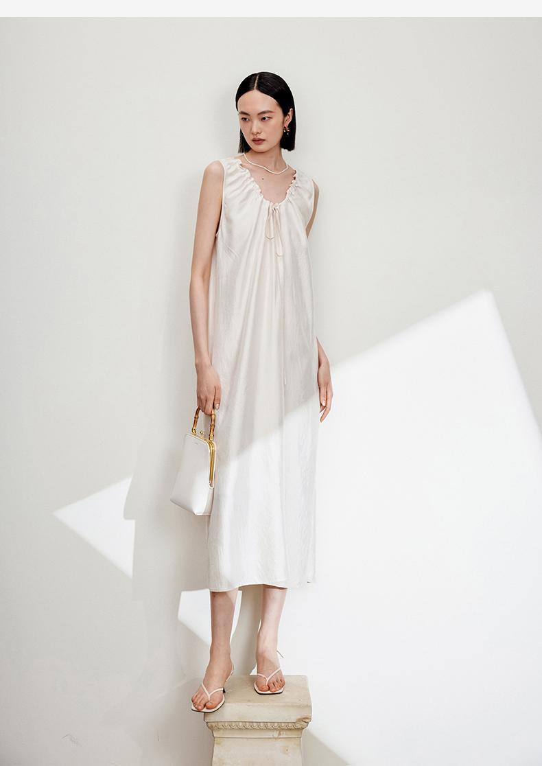 西嘉C+IMPRESS/西嘉醋酸多穿抽绳无袖慵懒风宽松法式连衣裙女夏优雅LYQ2402036