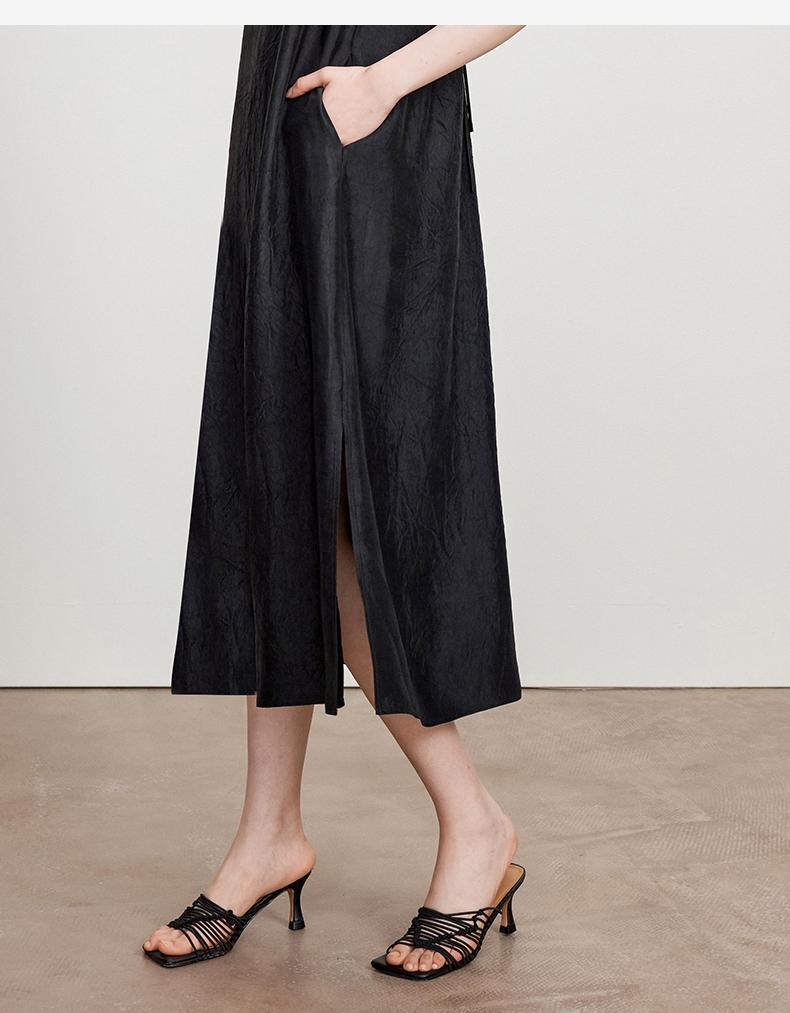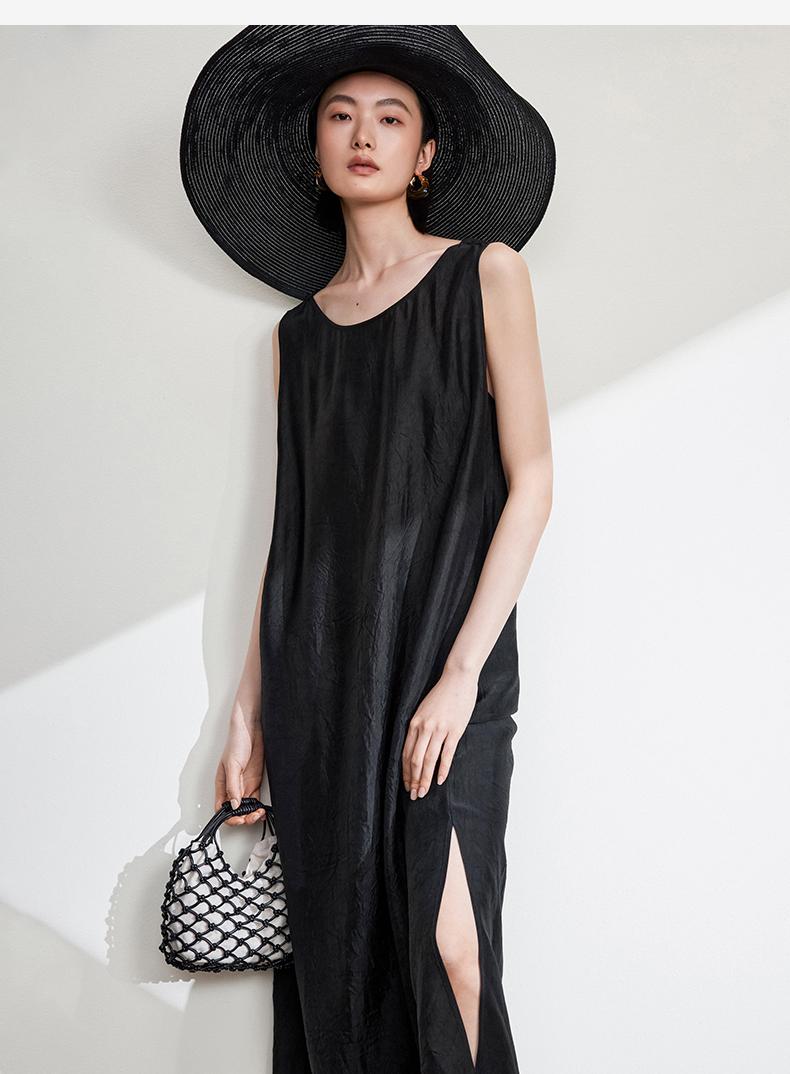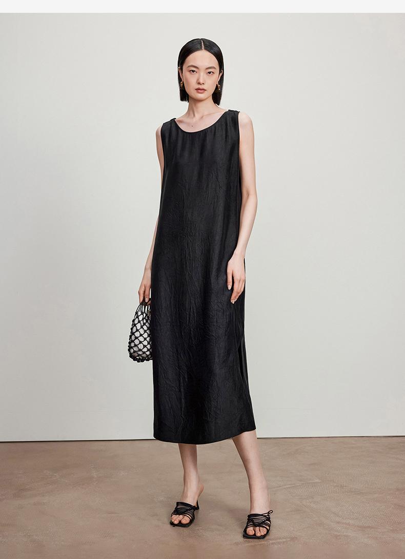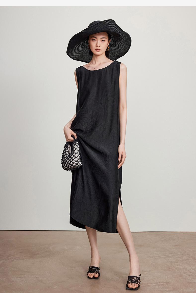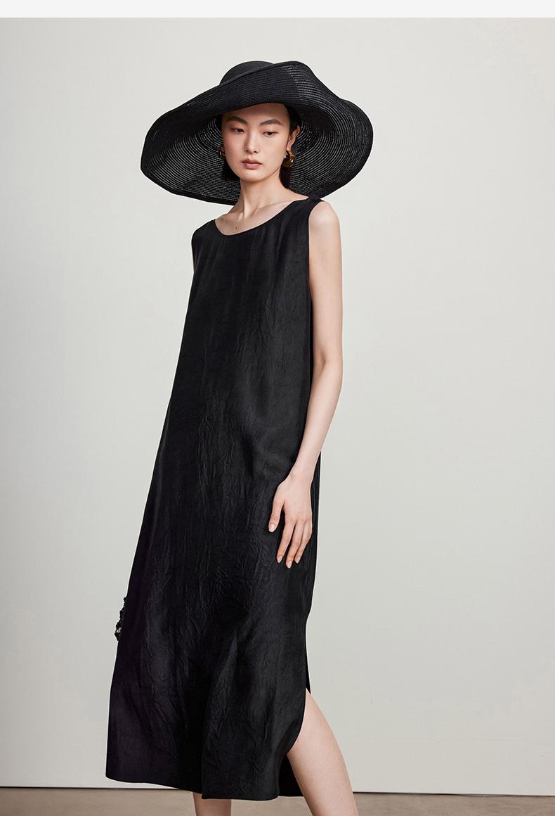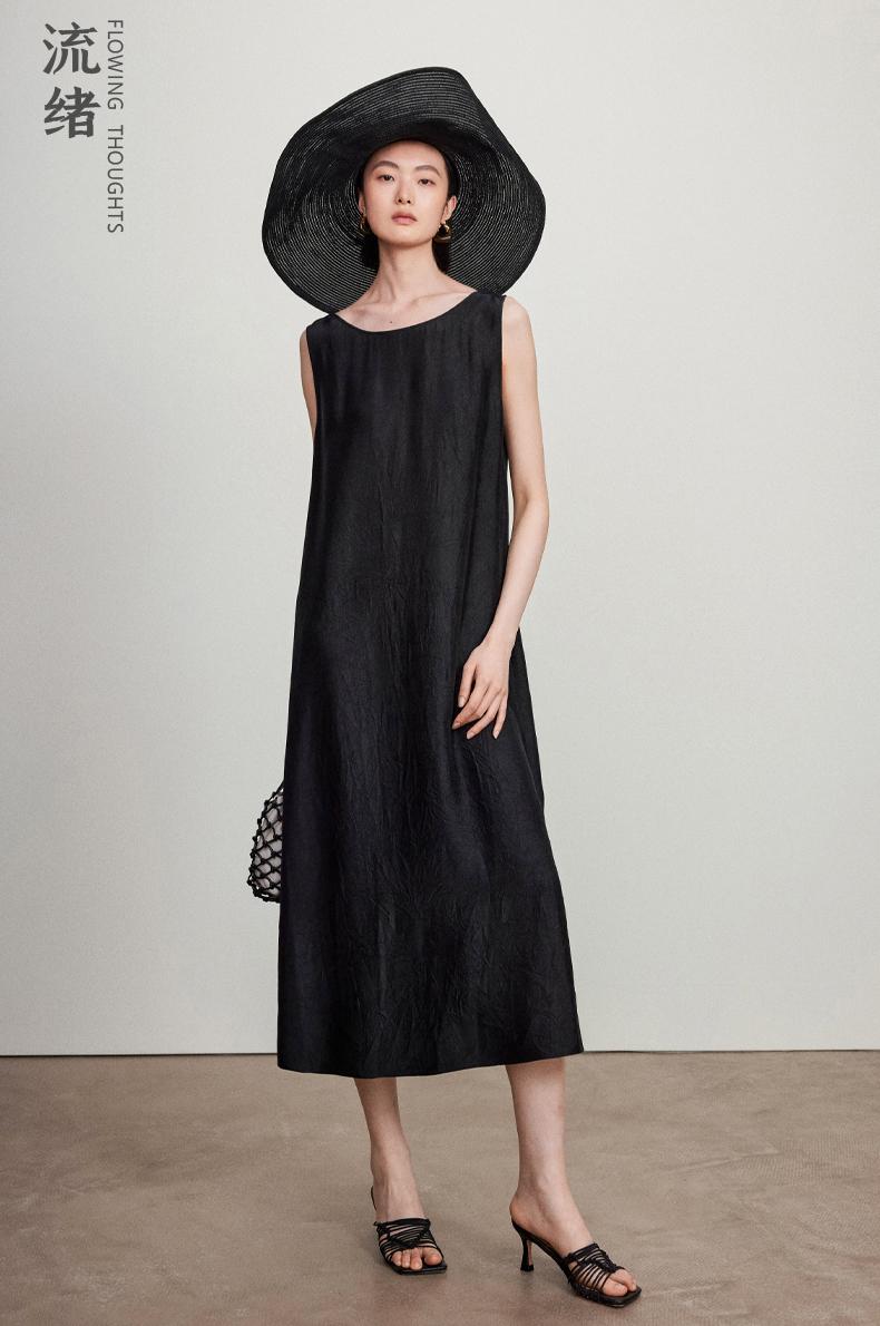 西嘉C+IMPRESS/西嘉醋酸多穿抽绳无袖慵懒风宽松法式连衣裙女夏优雅LYQ2402036