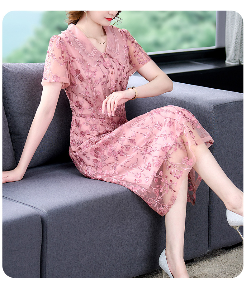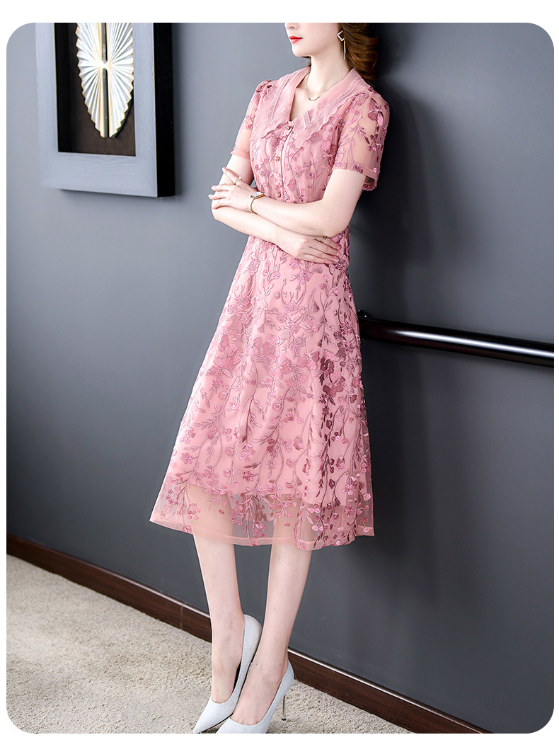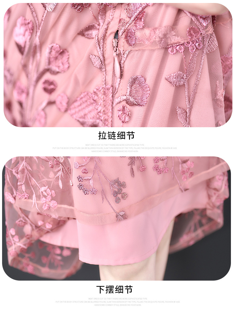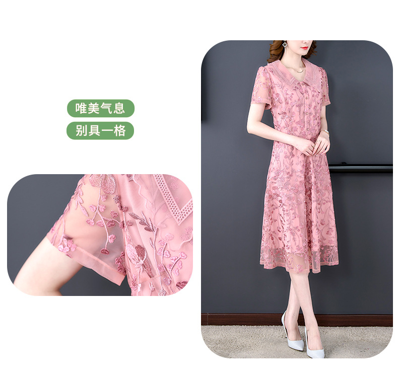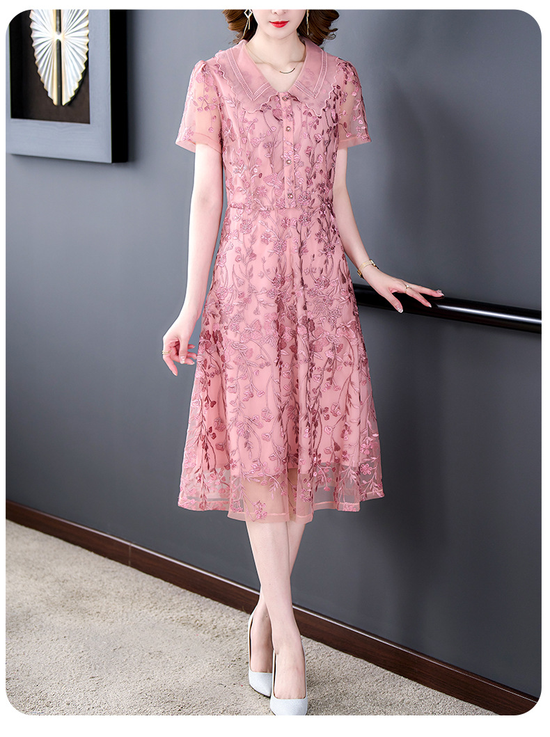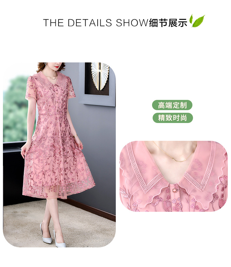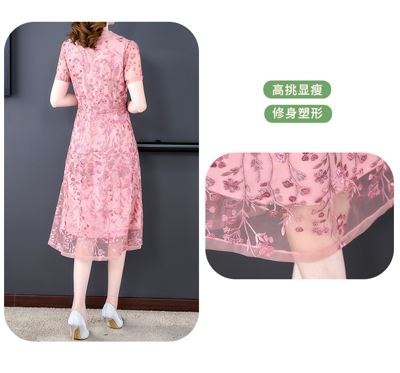 AHM msfs9969雪纺连衣裙优雅复古减龄中长款刺绣裙