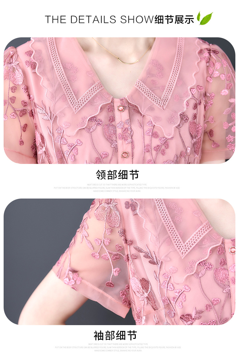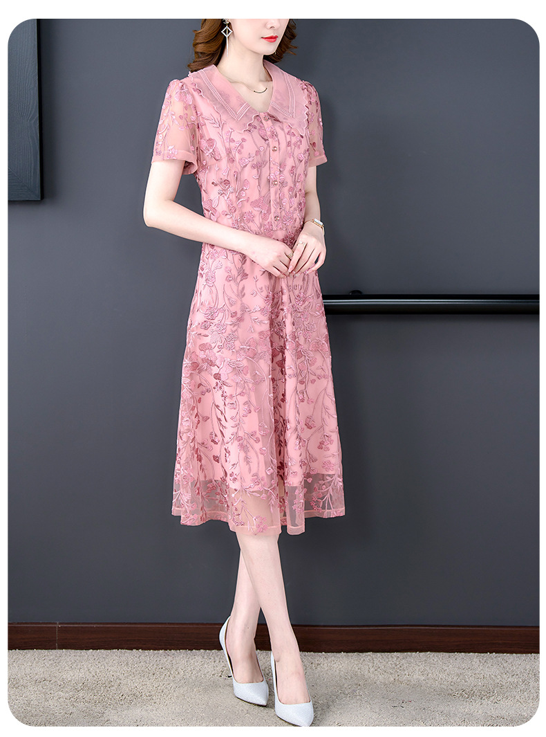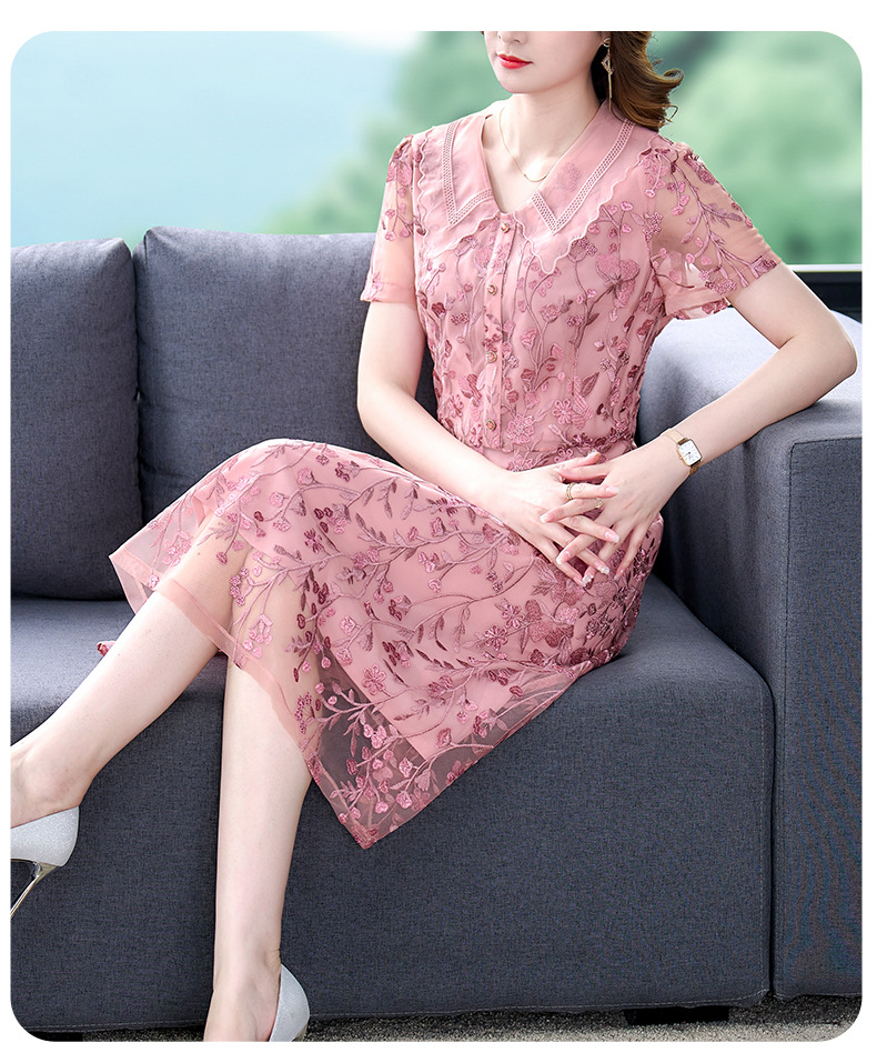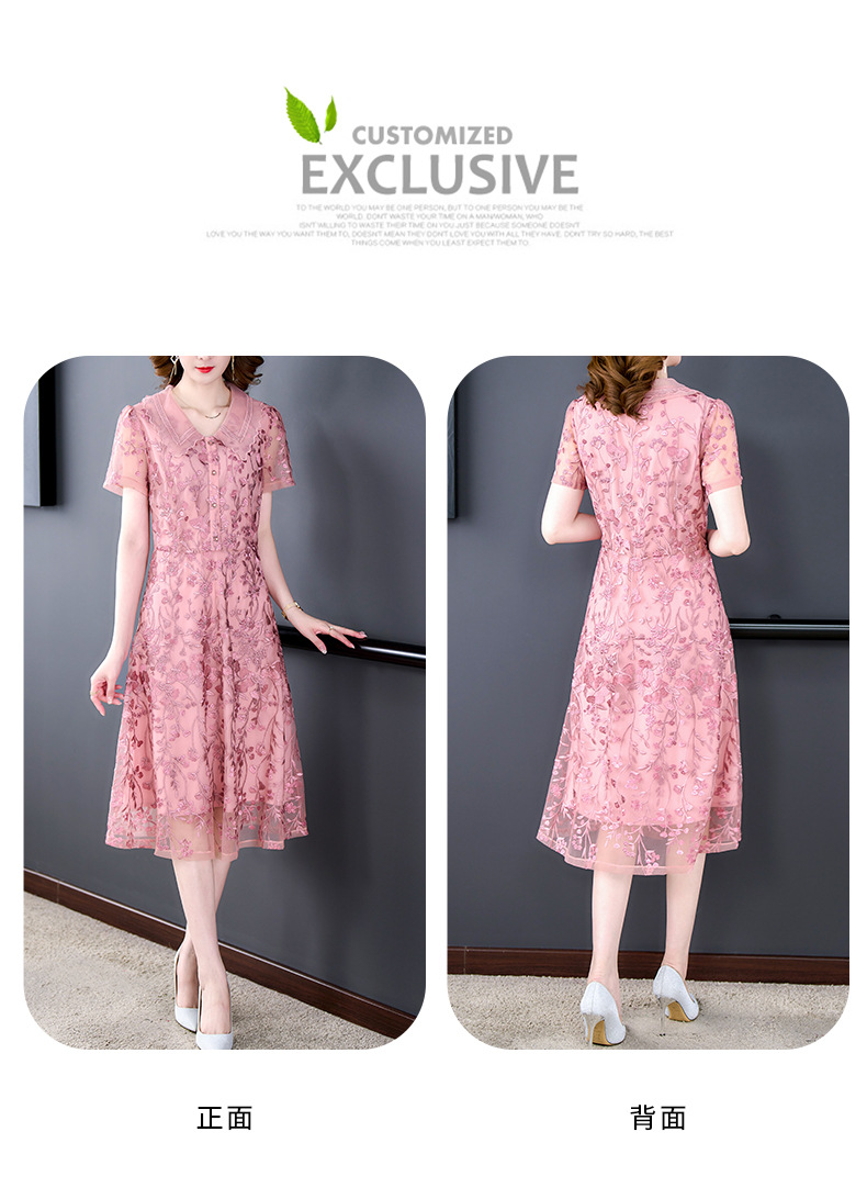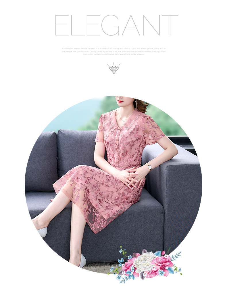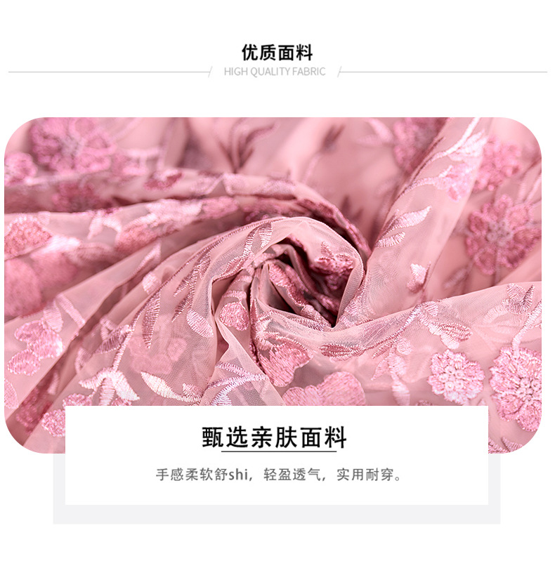 AHM msfs9969雪纺连衣裙优雅复古减龄中长款刺绣裙