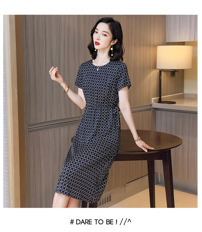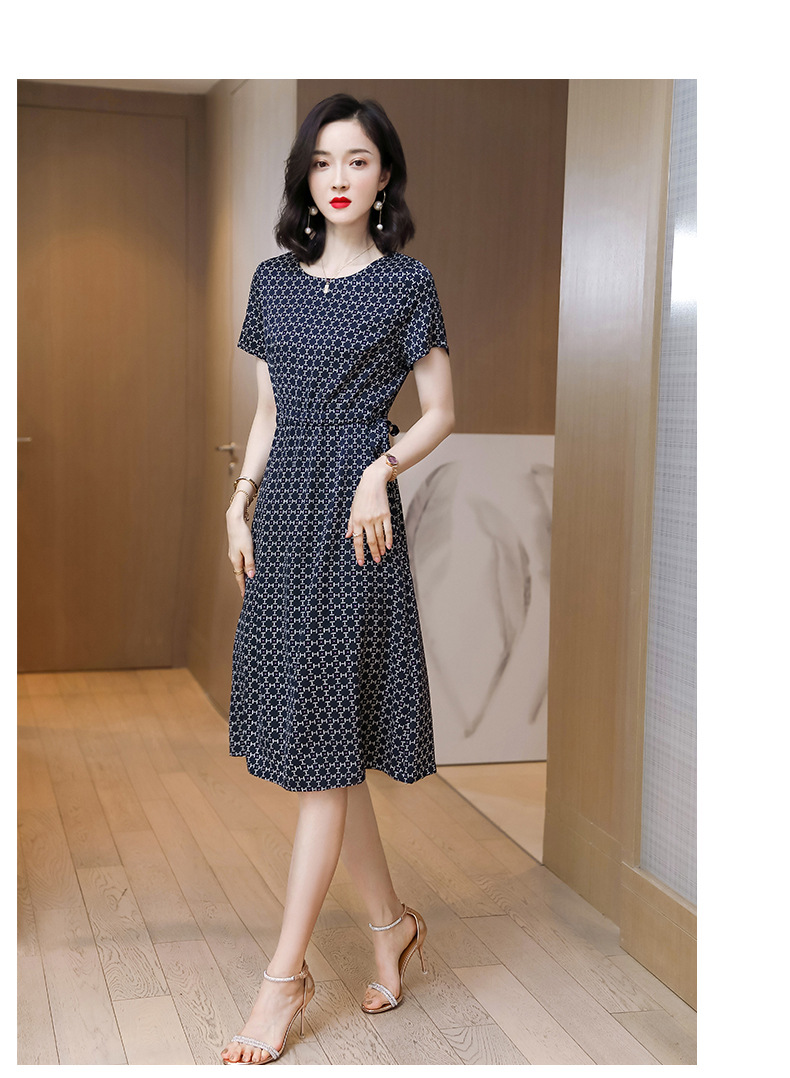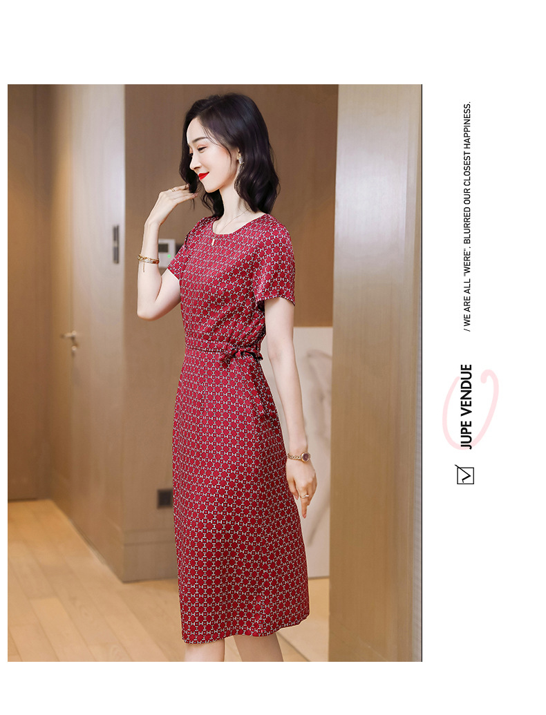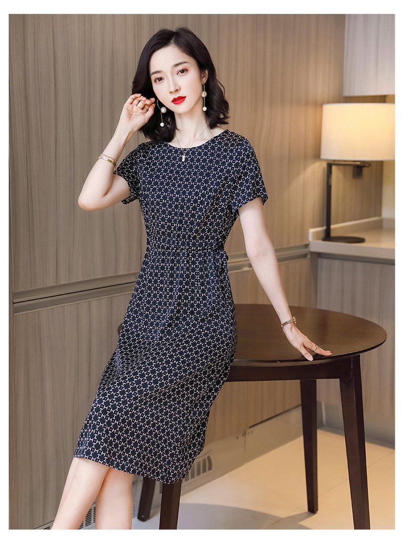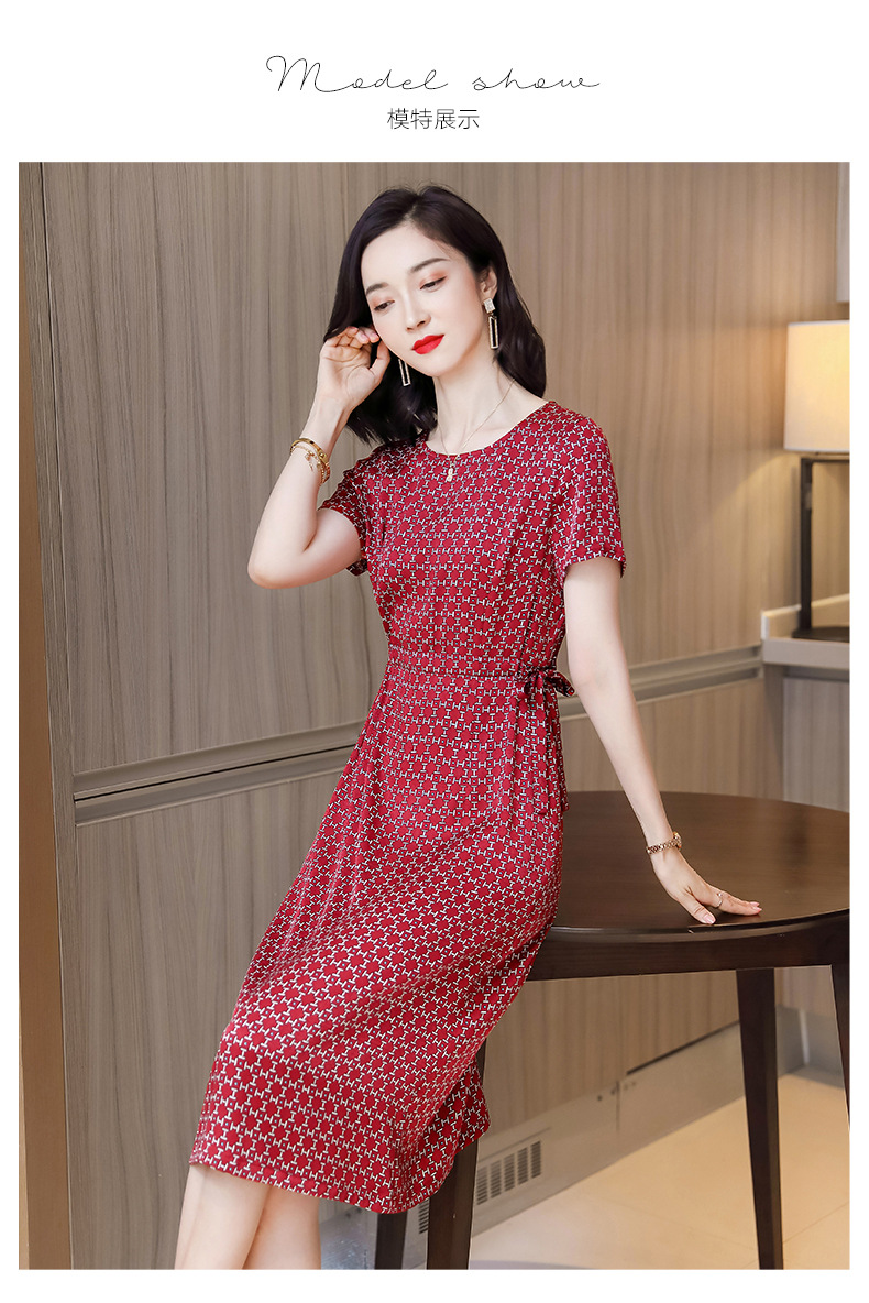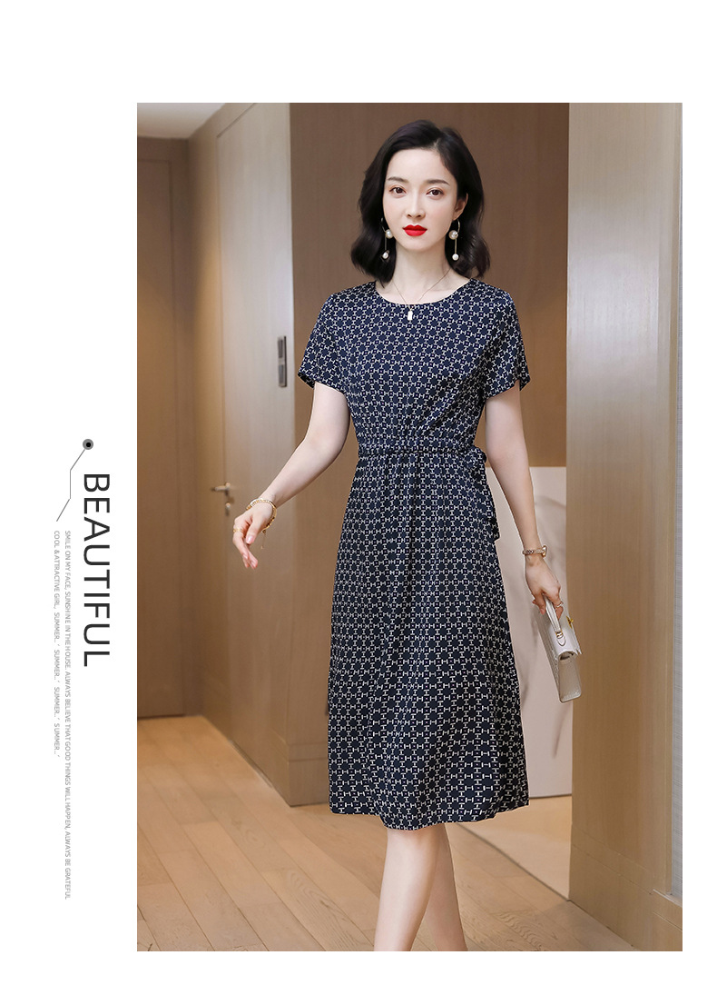 上海旗袍厂ASE-9116真丝连衣裙夏款新款格纹短袖长款收腰显瘦气质桑蚕丝