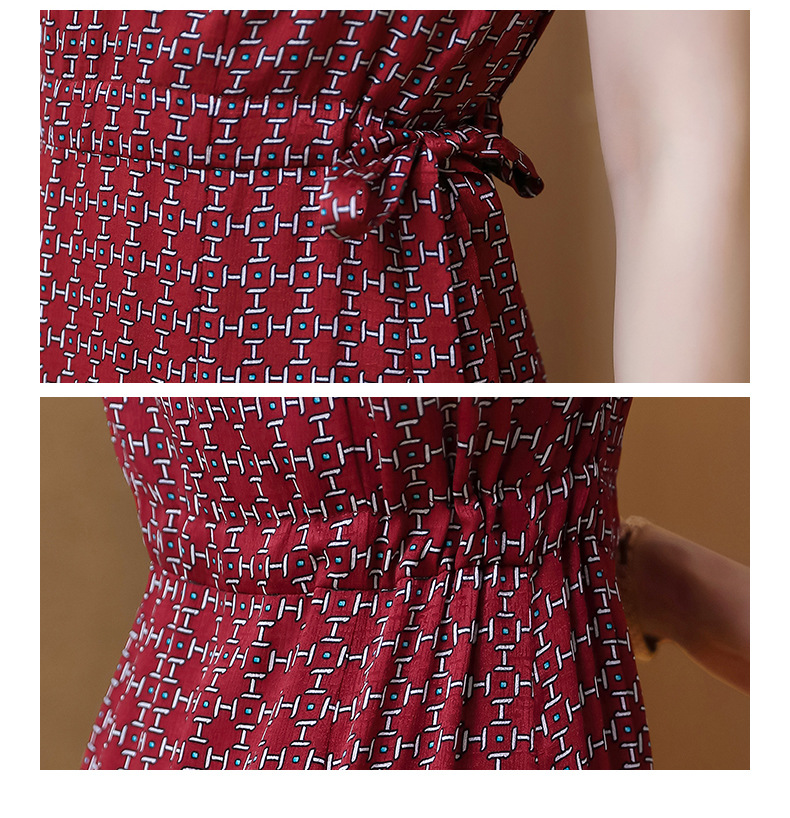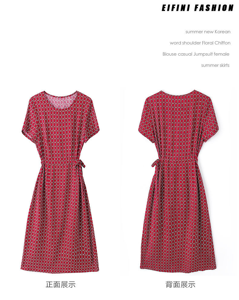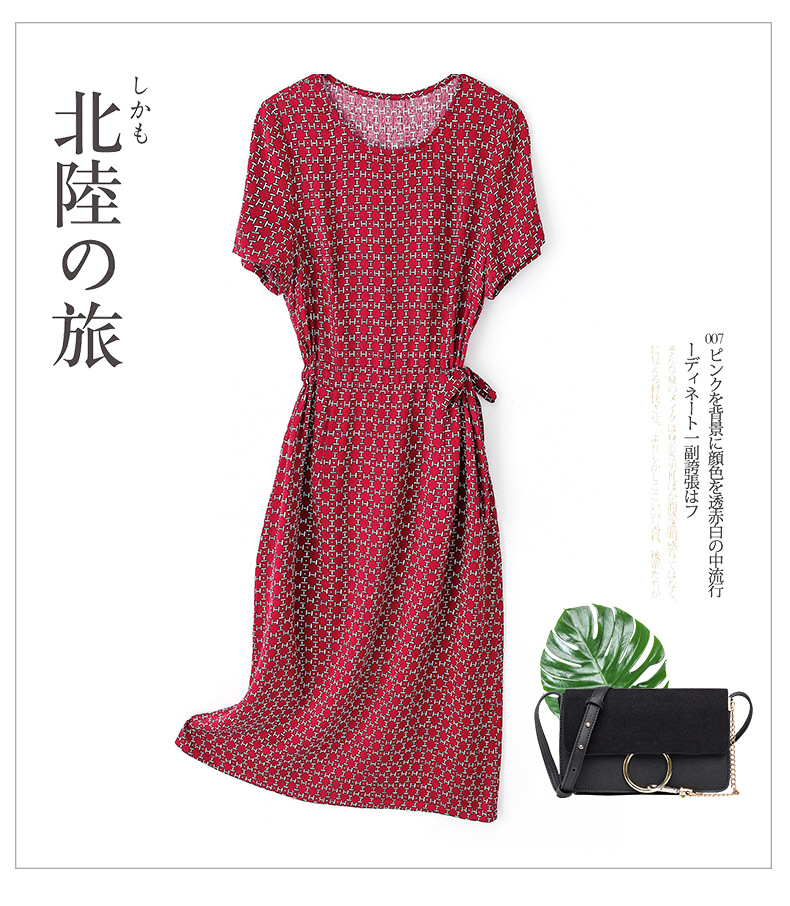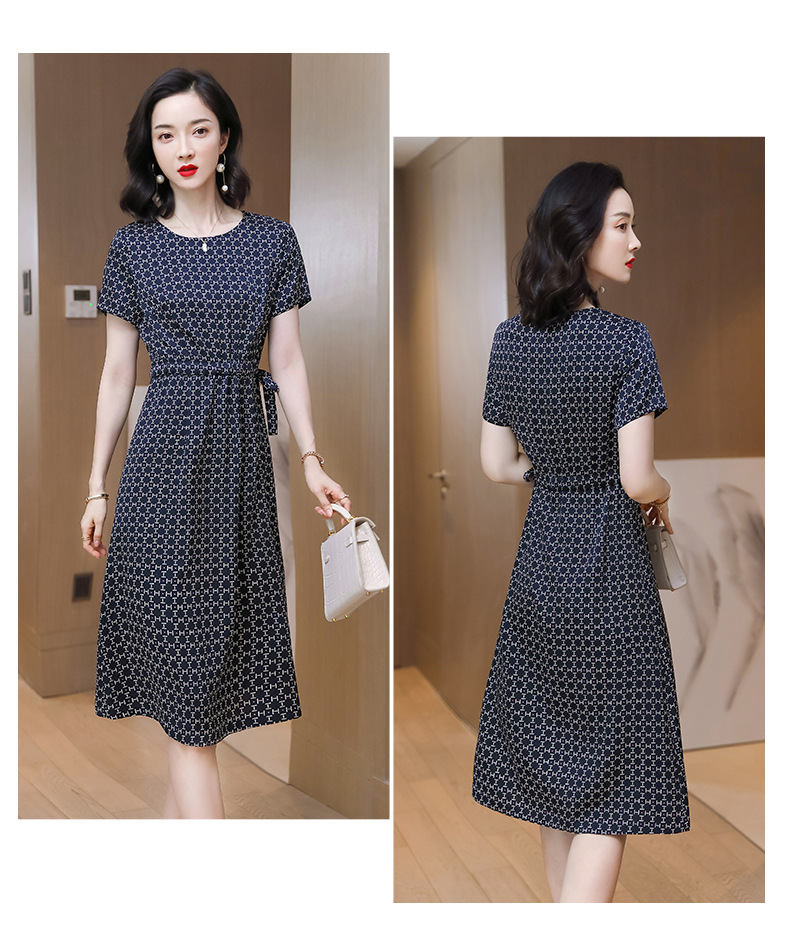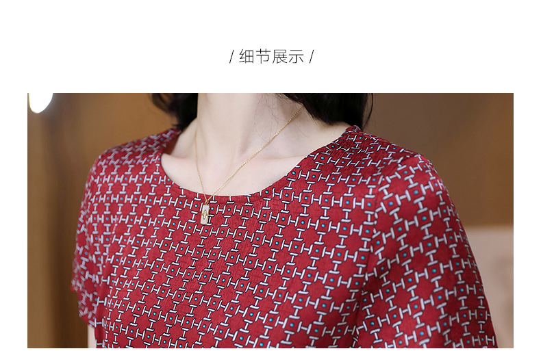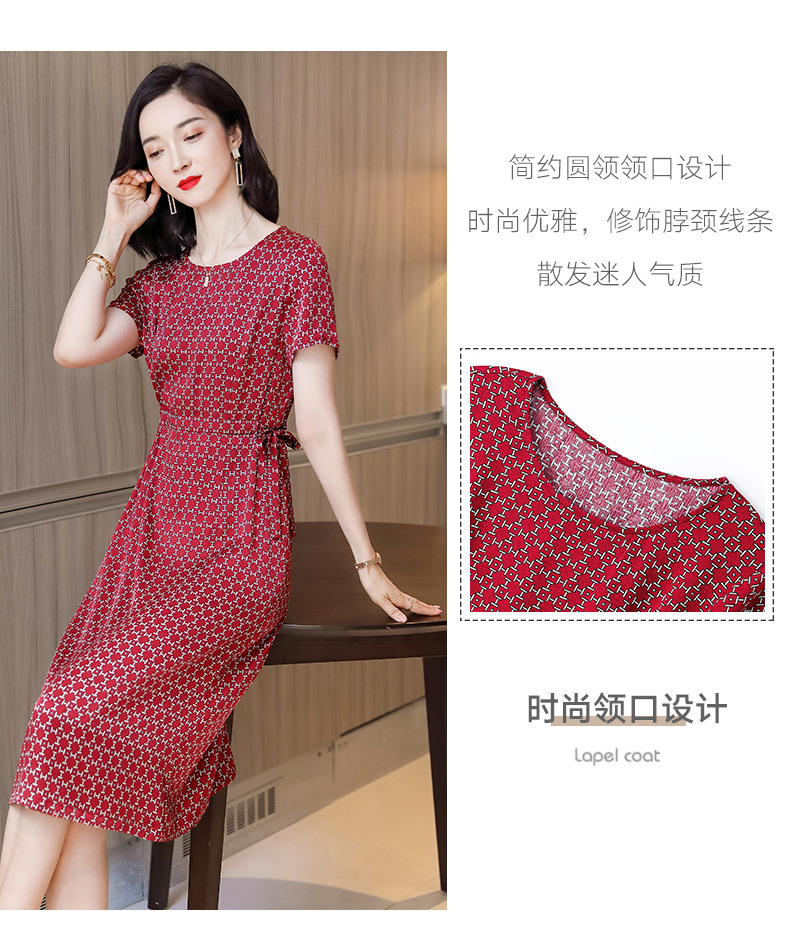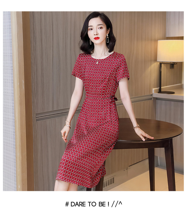 上海旗袍厂ASE-9116真丝连衣裙夏款新款格纹短袖长款收腰显瘦气质桑蚕丝