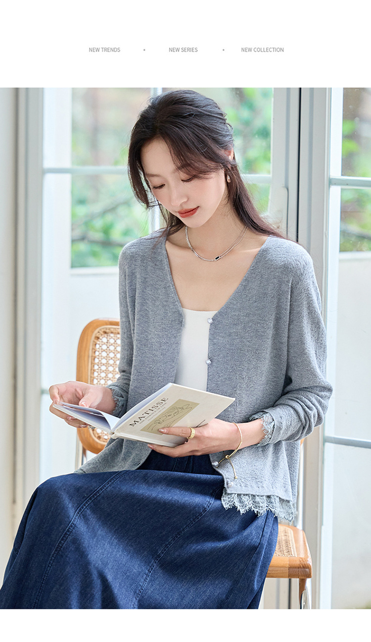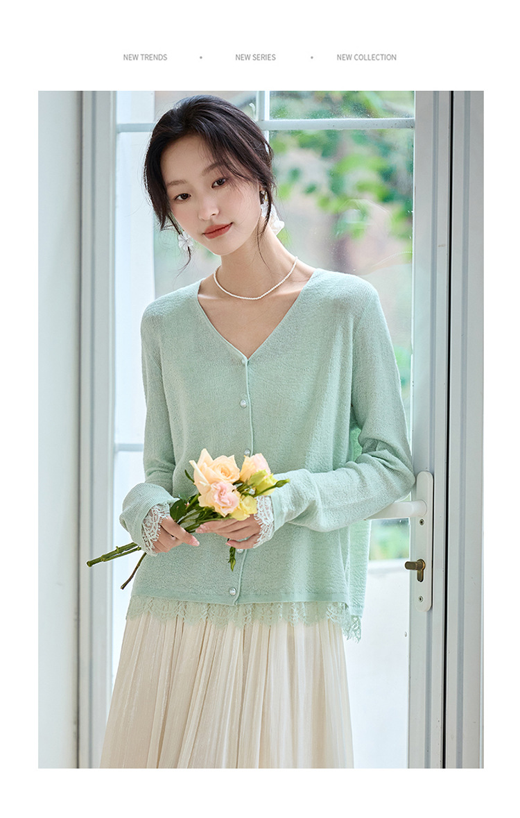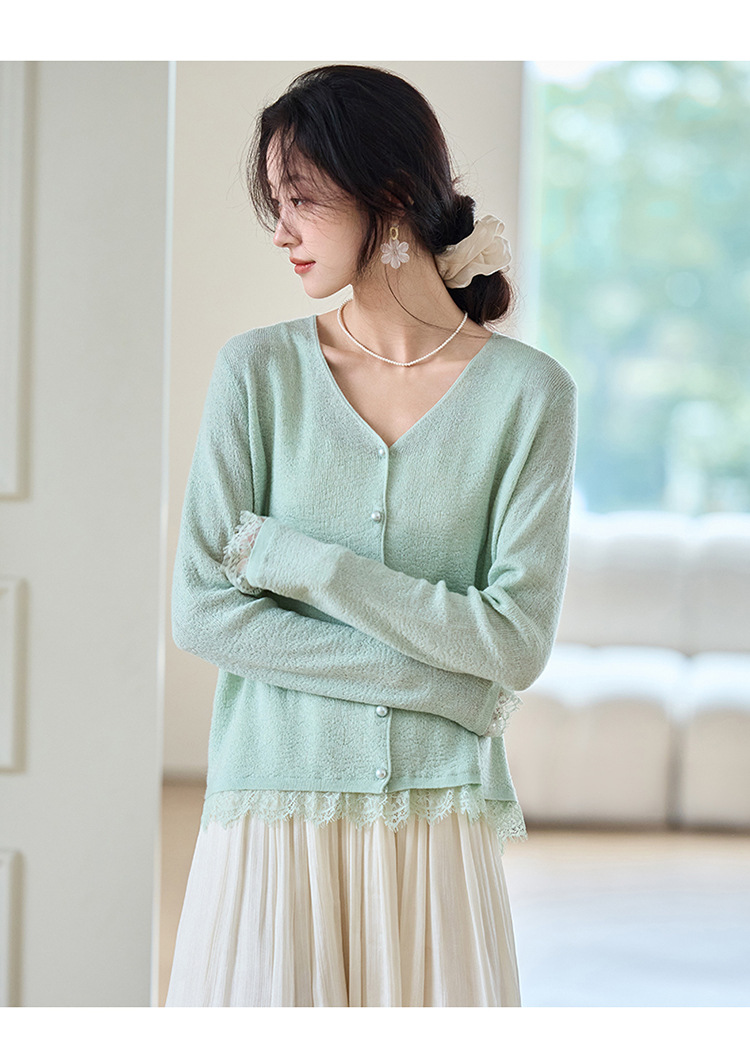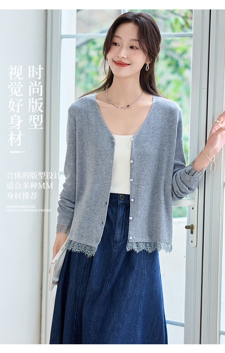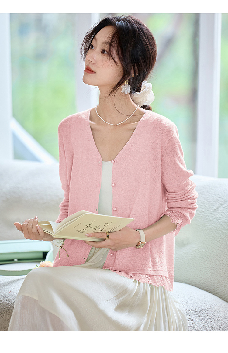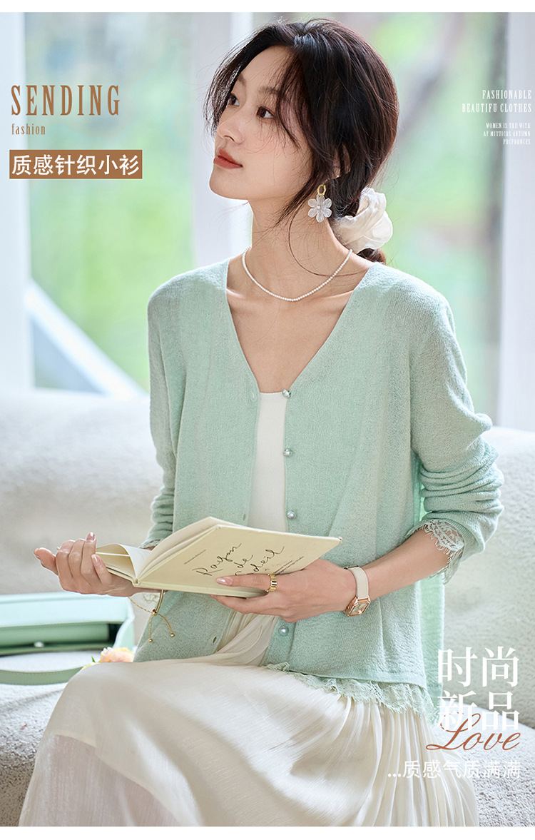 CC-22-2619短款漂亮外套女2025新款薄款蕾丝花边防晒冰丝针织开衫薄款空调衫