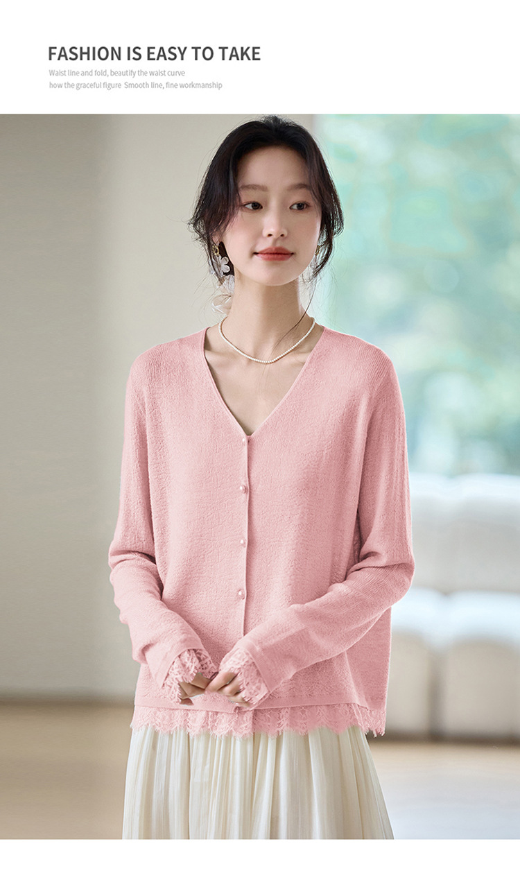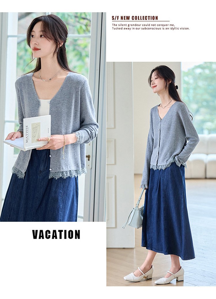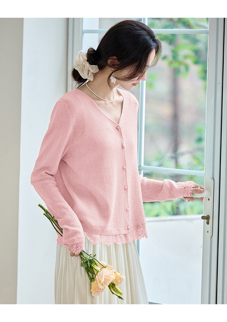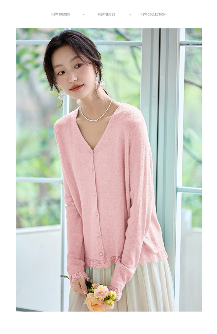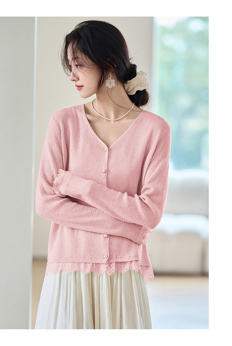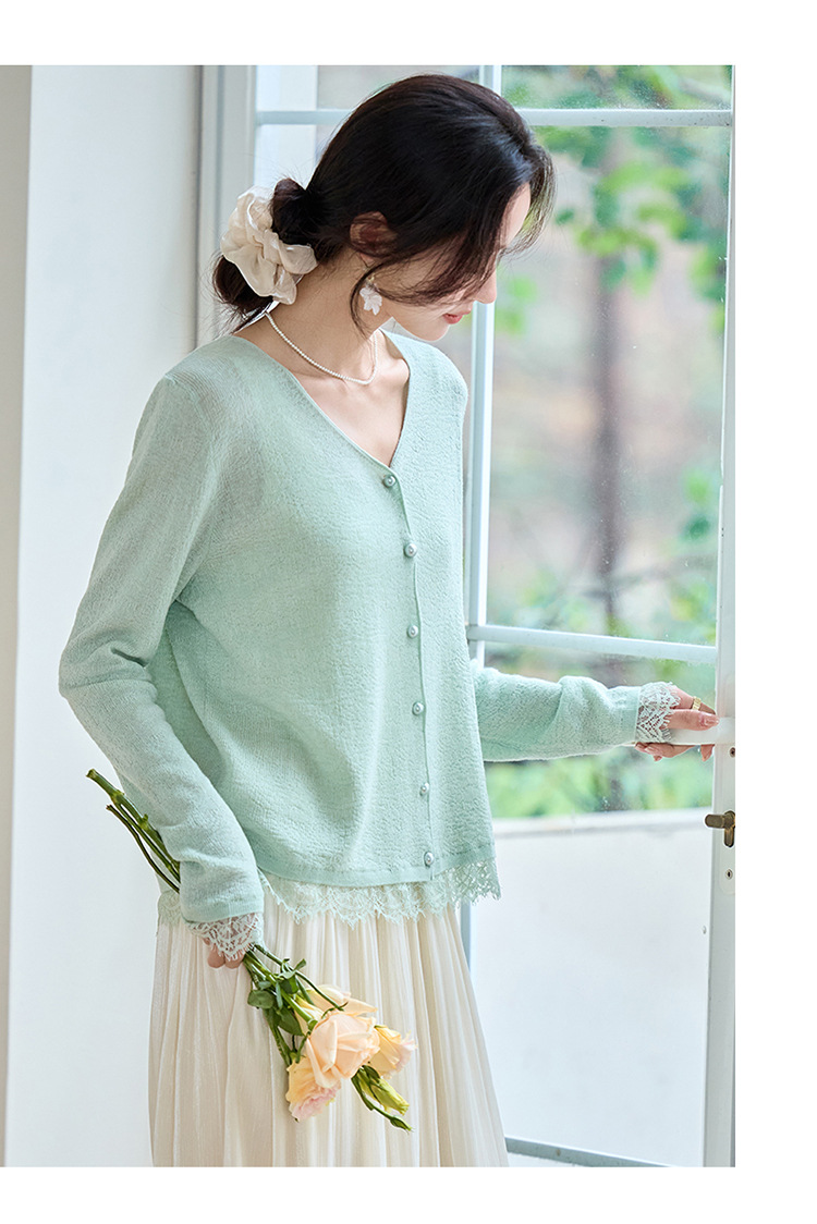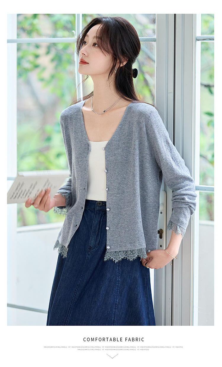 CC-22-2619短款漂亮外套女2025新款薄款蕾丝花边防晒冰丝针织开衫薄款空调衫