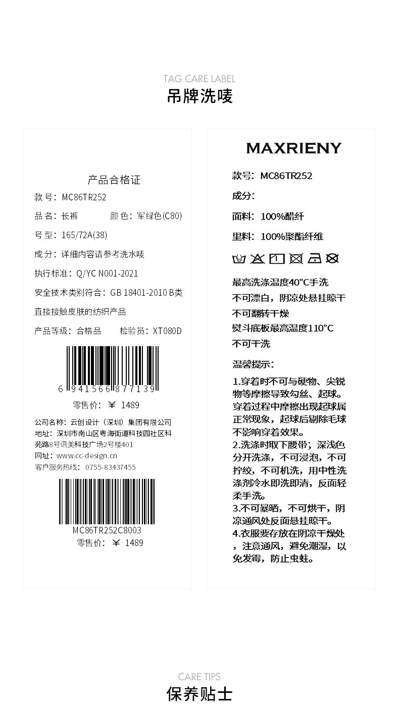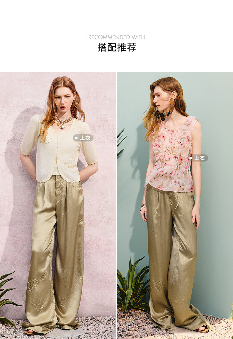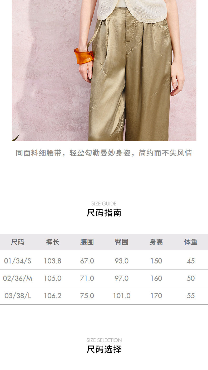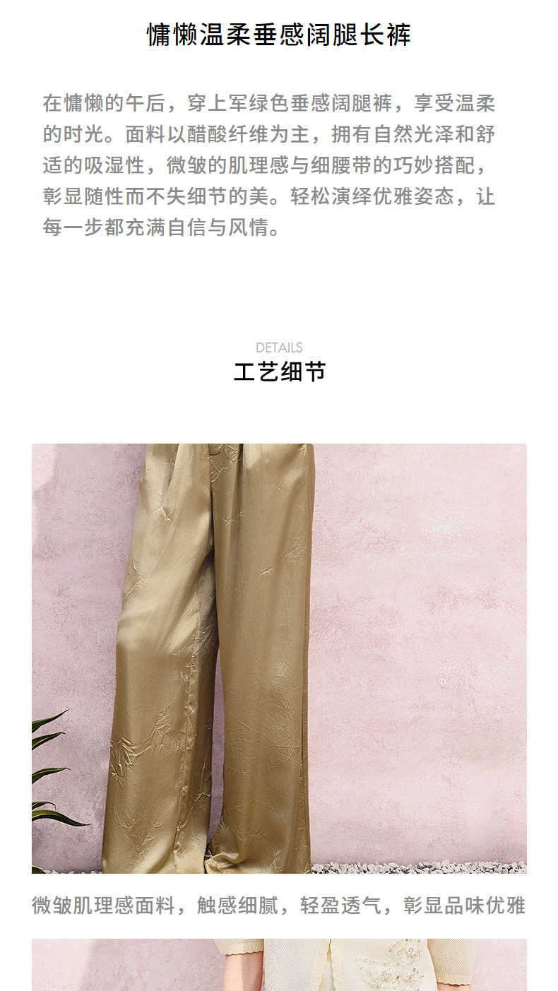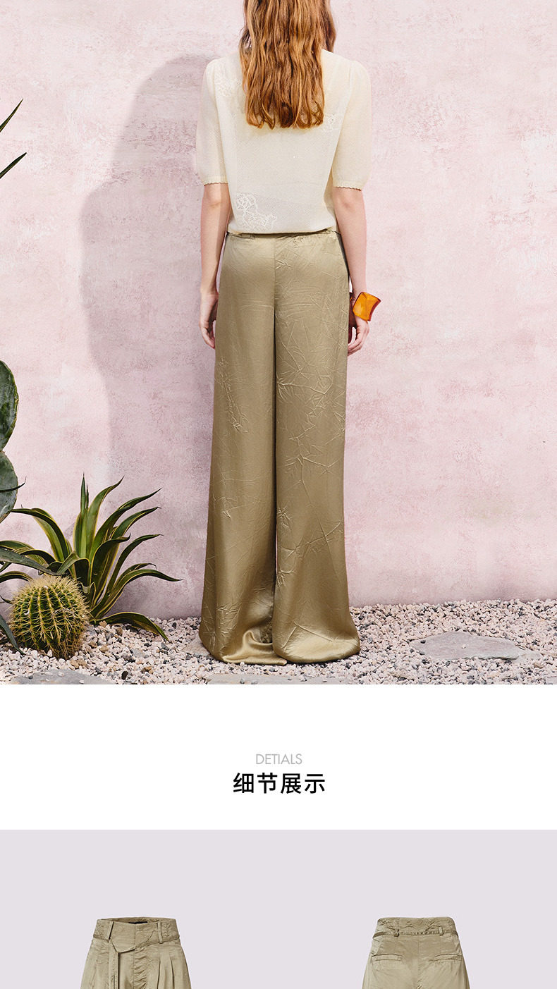 【商场同款】MAXRIENY慵懒温柔垂坠感阔腿长裤军绿色醋酸休闲裤夏(货号:MC86TR252)