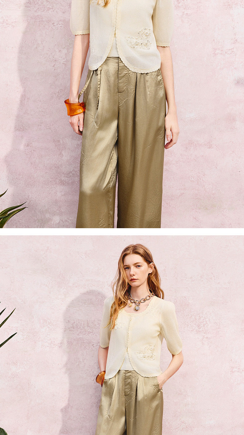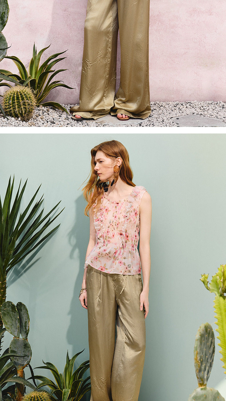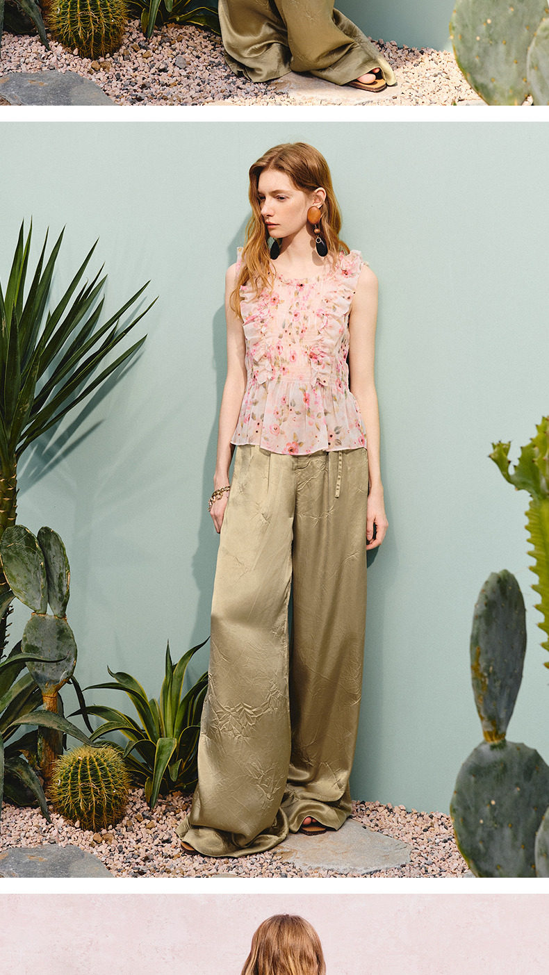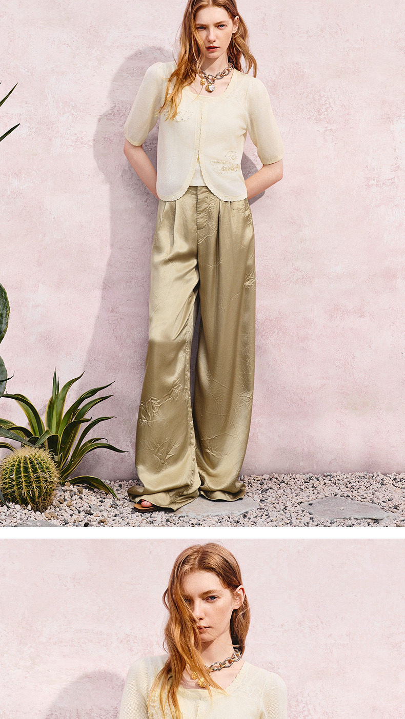 【商场同款】MAXRIENY慵懒温柔垂坠感阔腿长裤军绿色醋酸休闲裤夏(货号:MC86TR252)