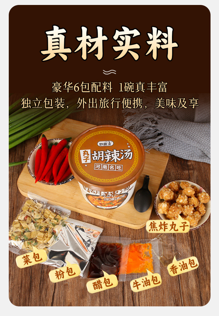【汤味浓郁,香辣可囗】丸子胡辣汤河南特色桶装 早餐方便面 懒人水冲速食汤粉丝一整箱-QQ
