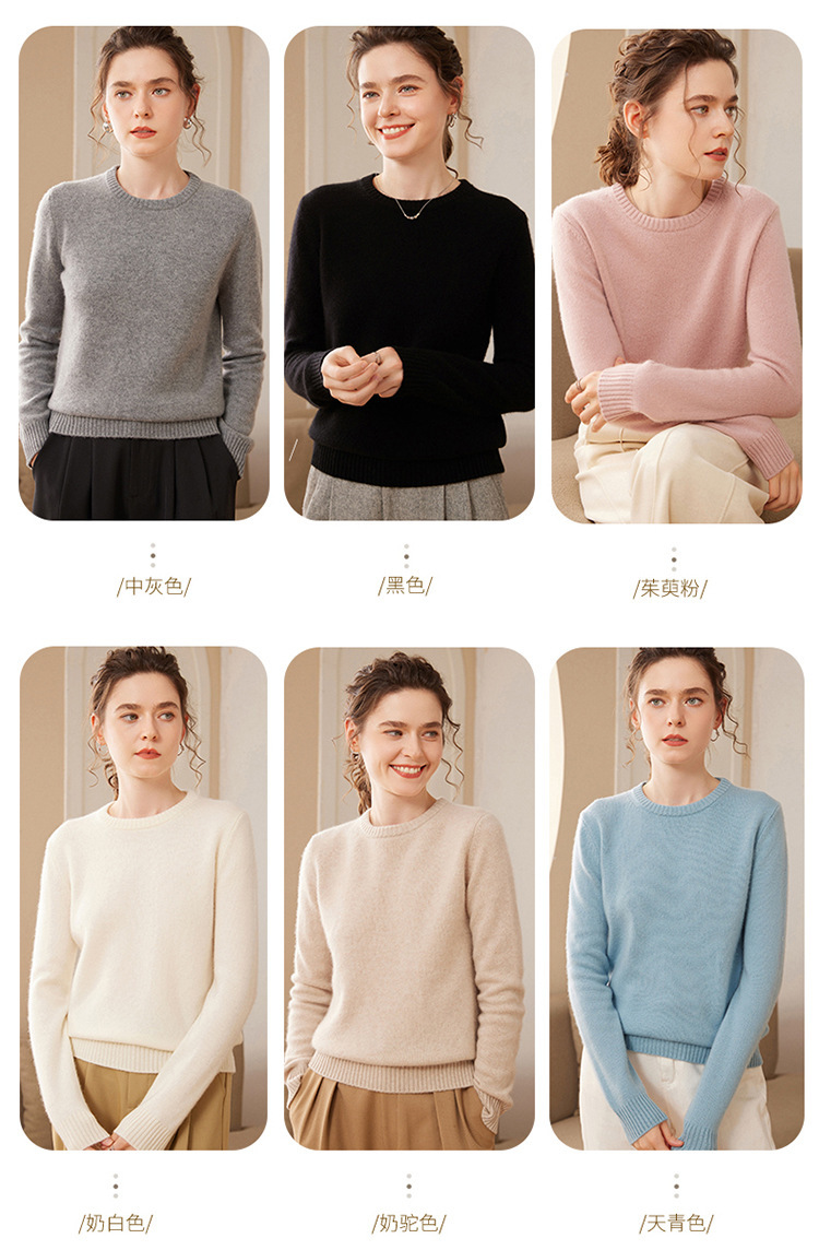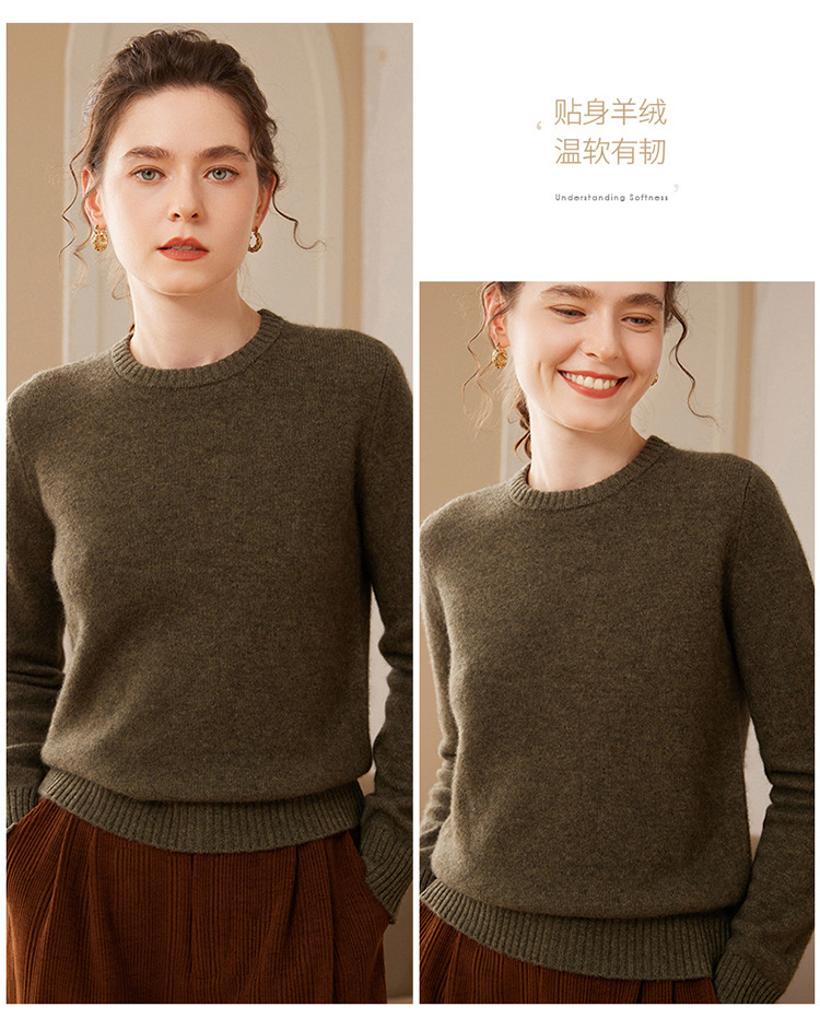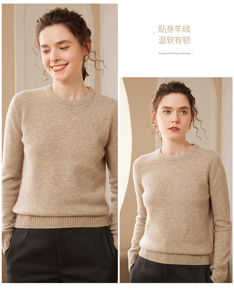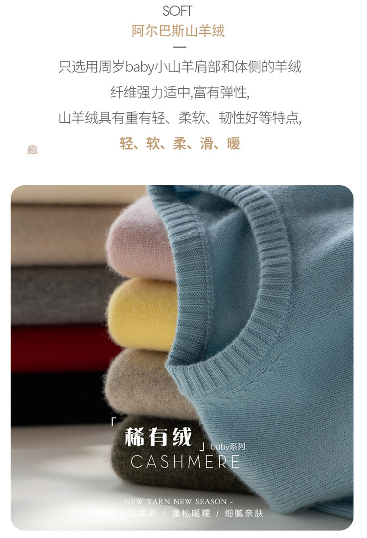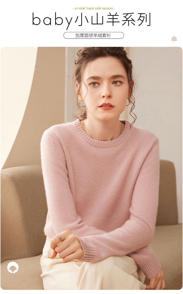 【高货QJ】全新升级【铂金会员367/天猫499/差价132】(35725) 洛诗琳秋冬新款加厚山羊绒针织打底衫长袖圆领宽松显瘦毛衣