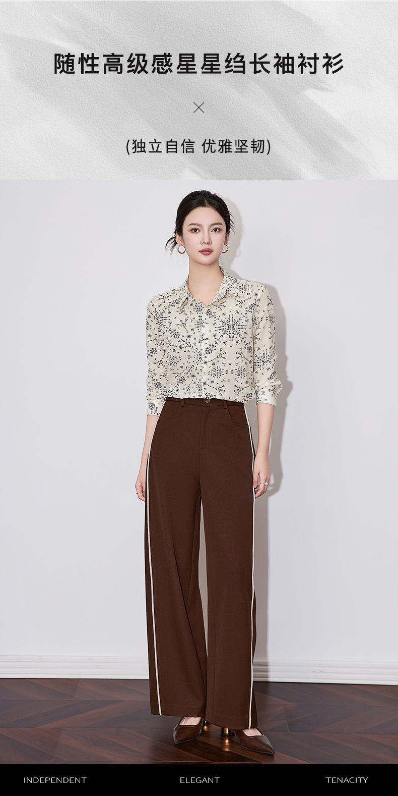 【高货wl】全新升级【铂金会员257/天猫339/差价82】(11832) 洛诗琳高级感星星绉印花衬衫2025春季通勤气质翻领上衣