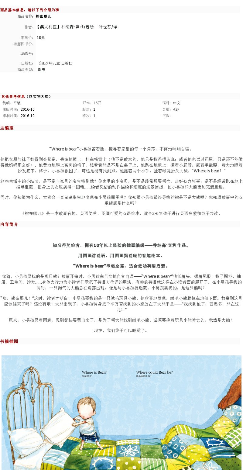 【点读版】双语绘本:熊在哪儿(平)