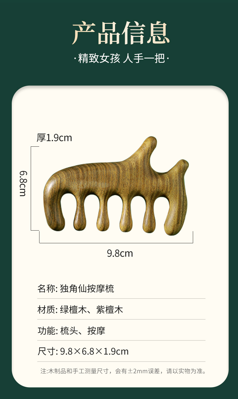 1【可梳头】经络梳齿较宽,女生可以拿来梳头,不容易卡头发,很小巧,放包里很便携。
