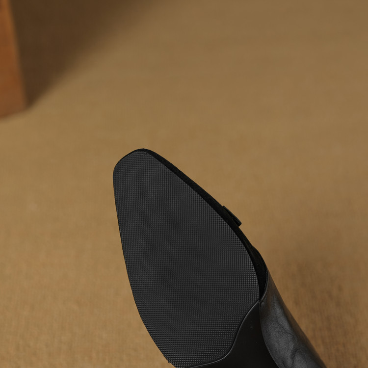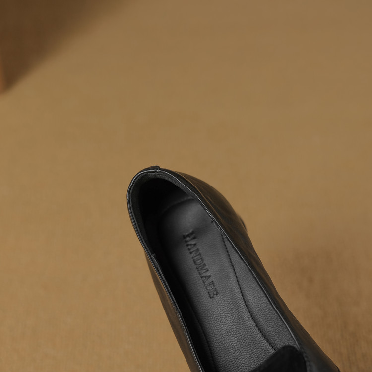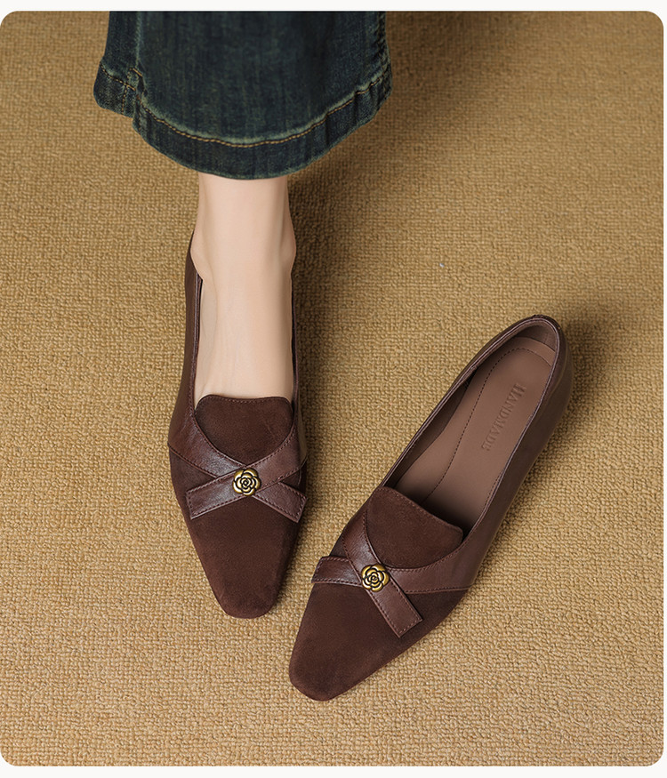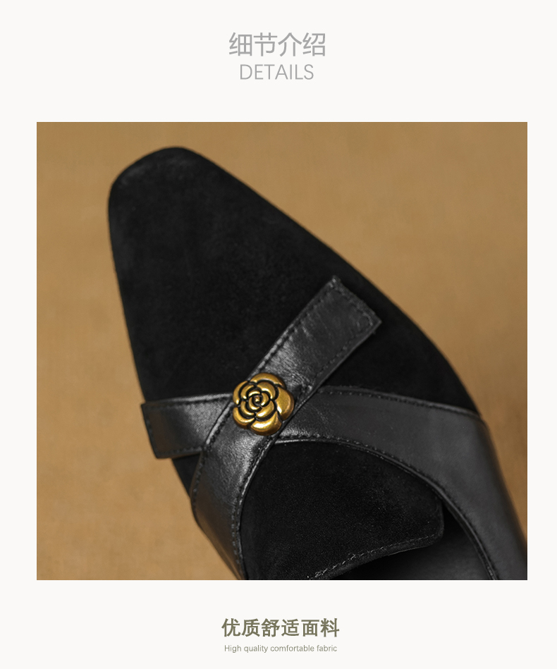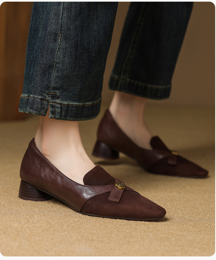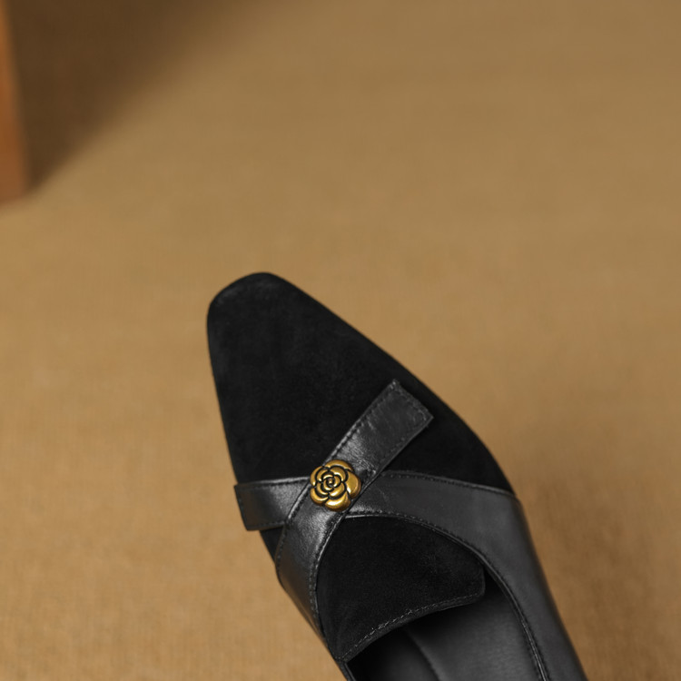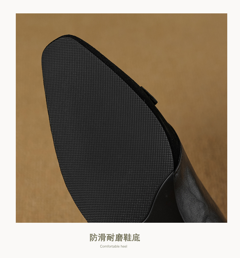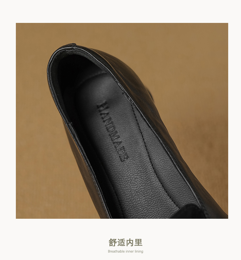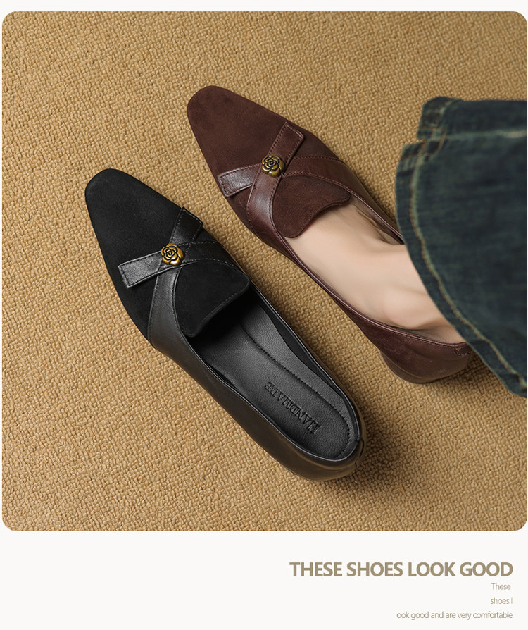【预售5天】法式深口单鞋女春秋蝴蝶结方头低跟粗跟真皮翻毛皮乐福鞋女SSS&S9844