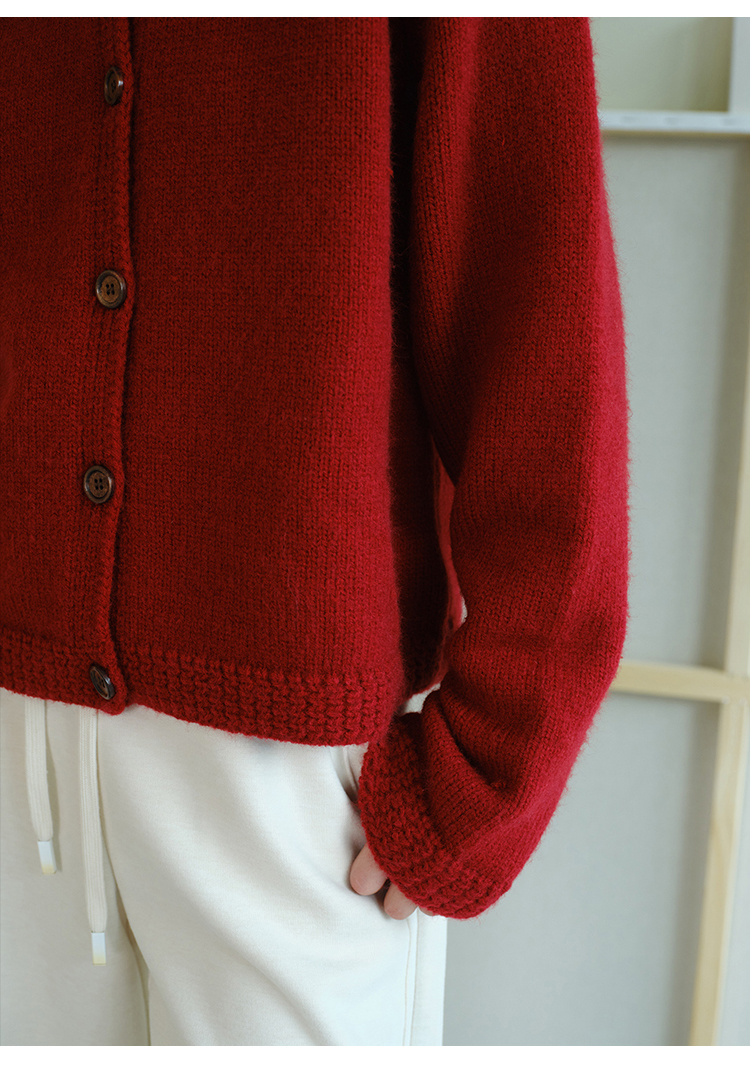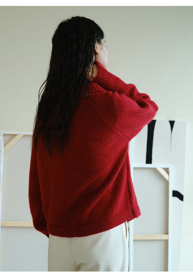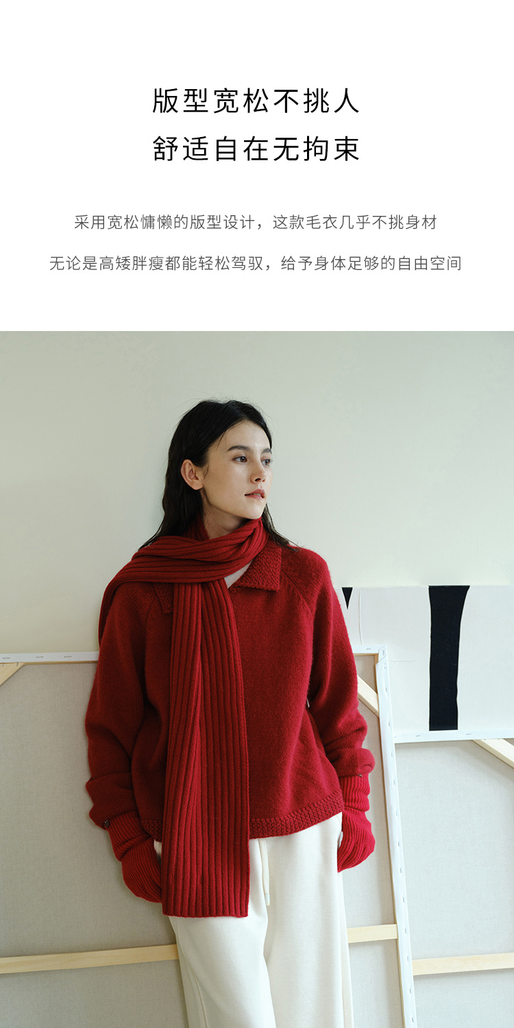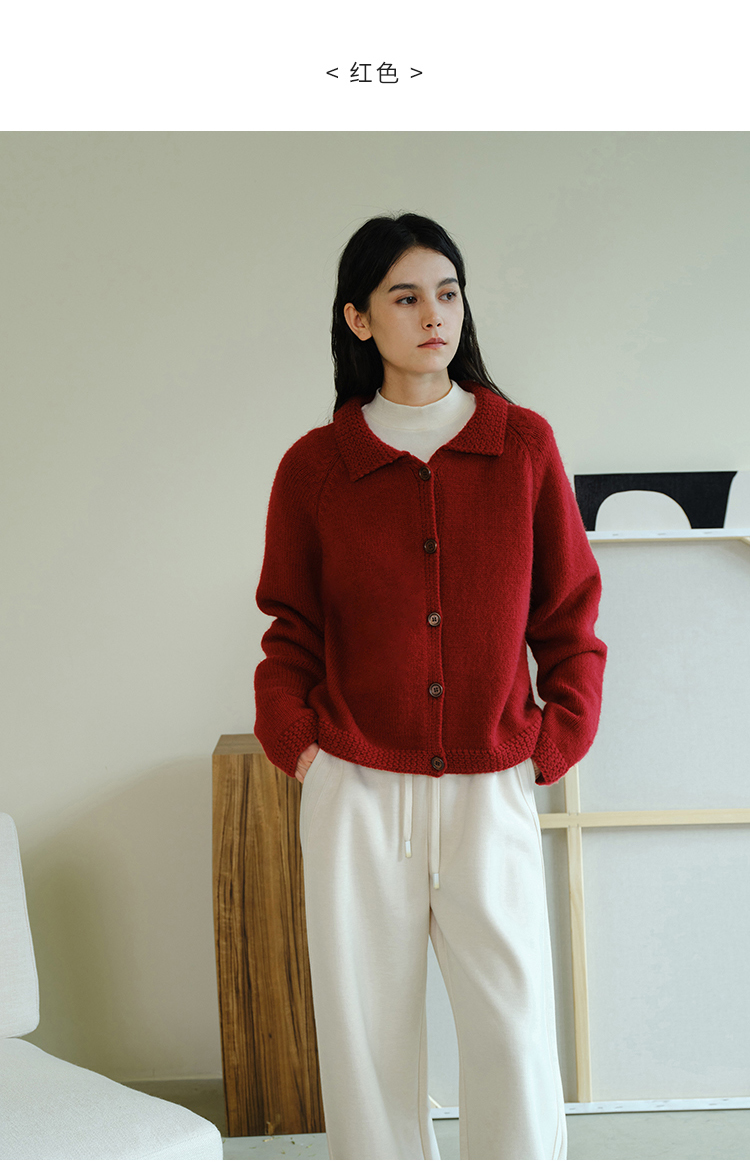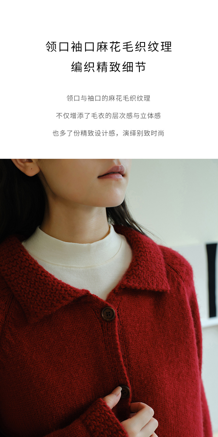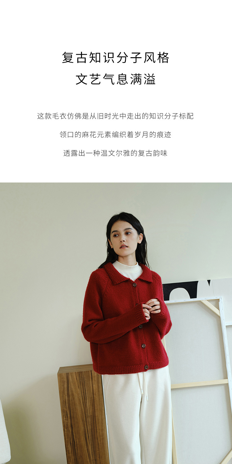 (小眠专属)HeyDress法式翻领针织开衫女秋冬复古红色毛衣慵懒百搭宽松上衣