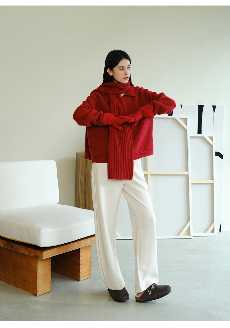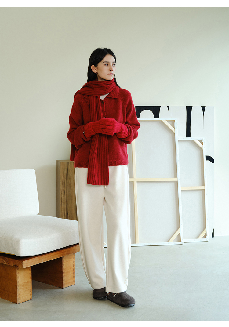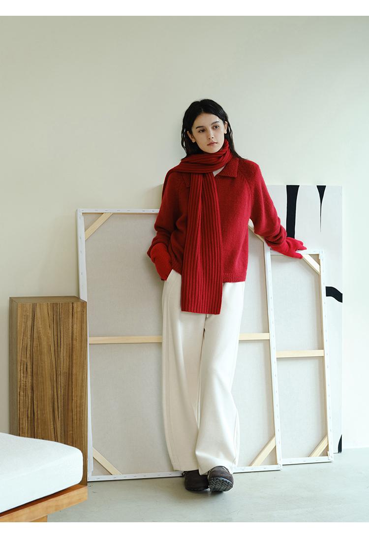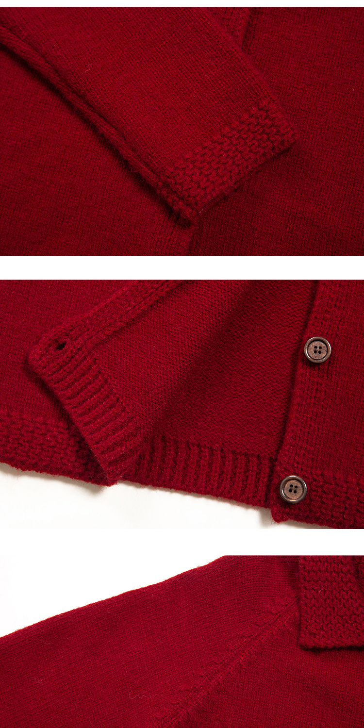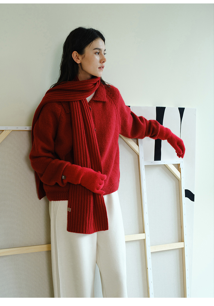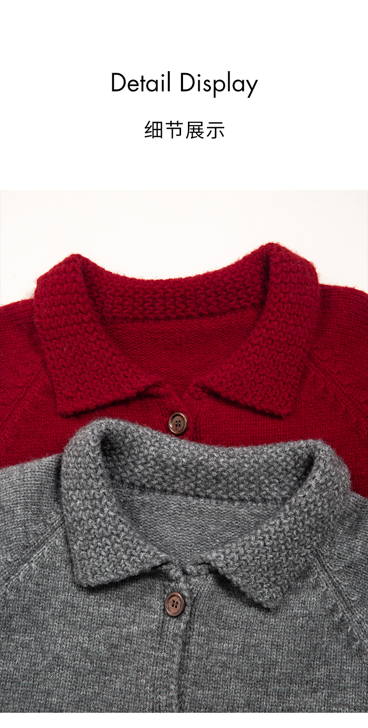 (小眠专属)HeyDress法式翻领针织开衫女秋冬复古红色毛衣慵懒百搭宽松上衣
