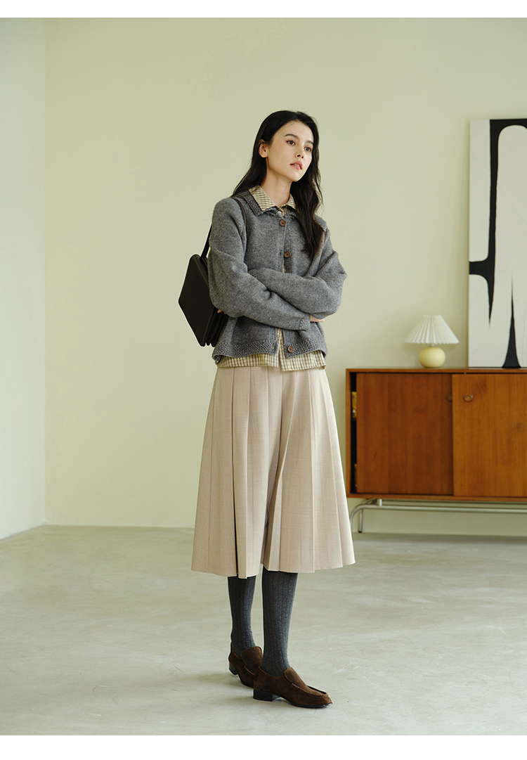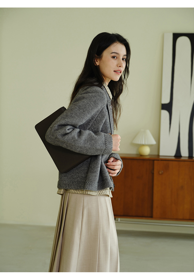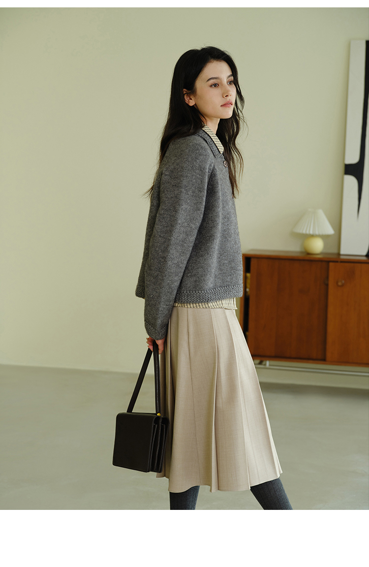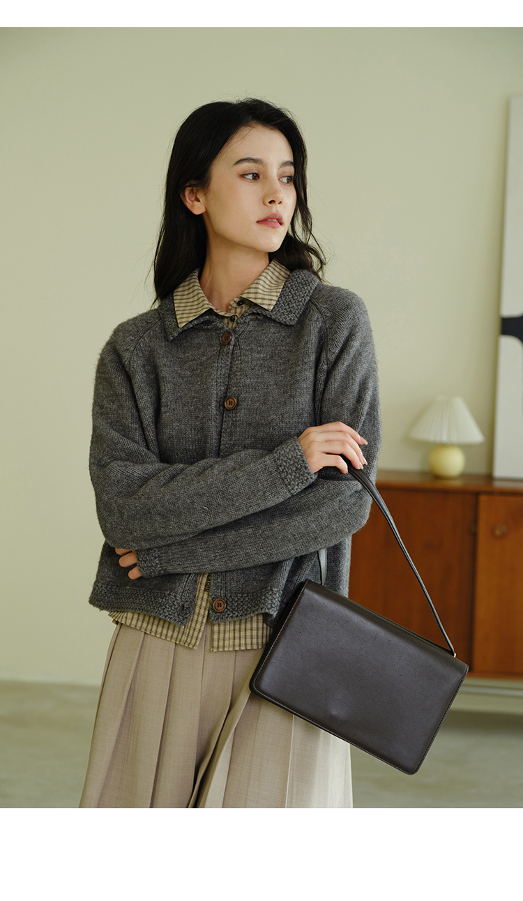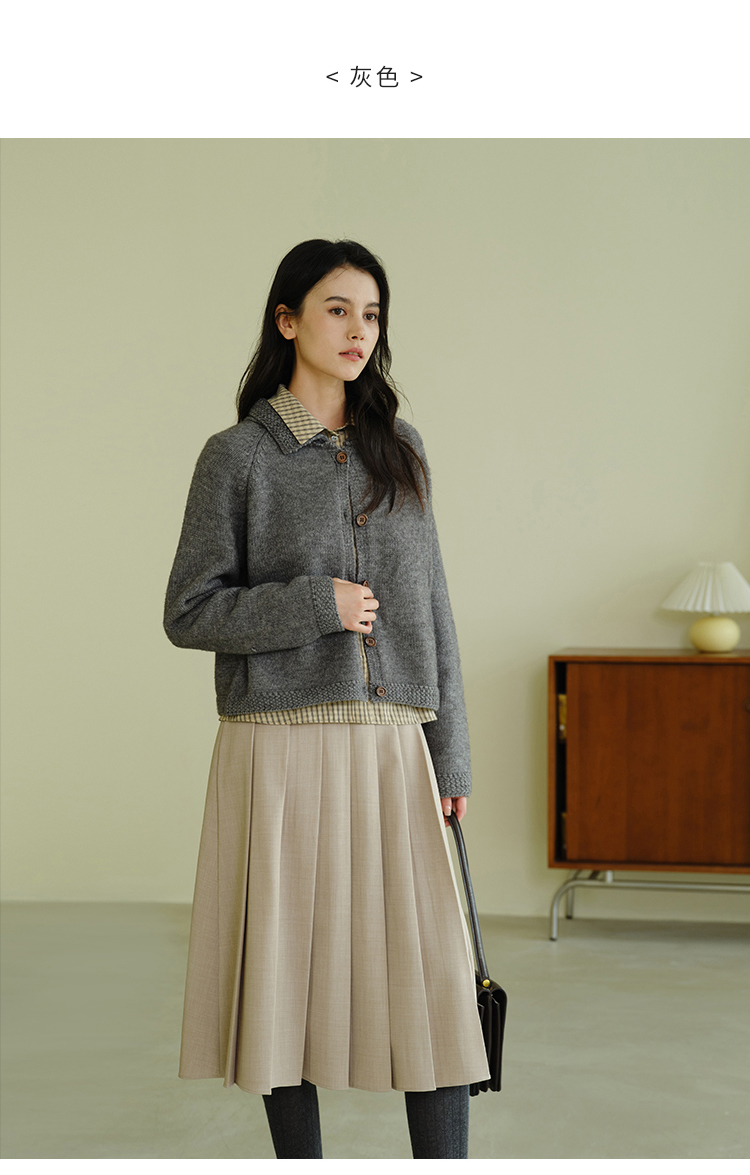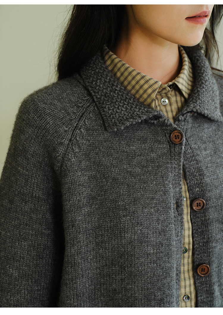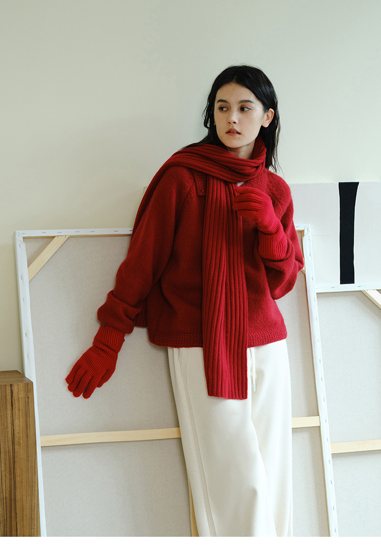 (小眠专属)HeyDress法式翻领针织开衫女秋冬复古红色毛衣慵懒百搭宽松上衣