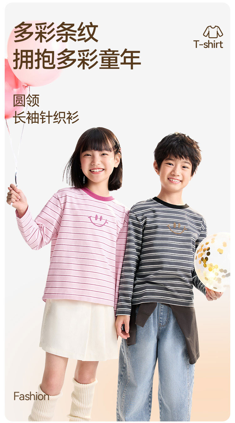 男女童圆领长袖针织衫秋季新款安奈儿童装EM531505