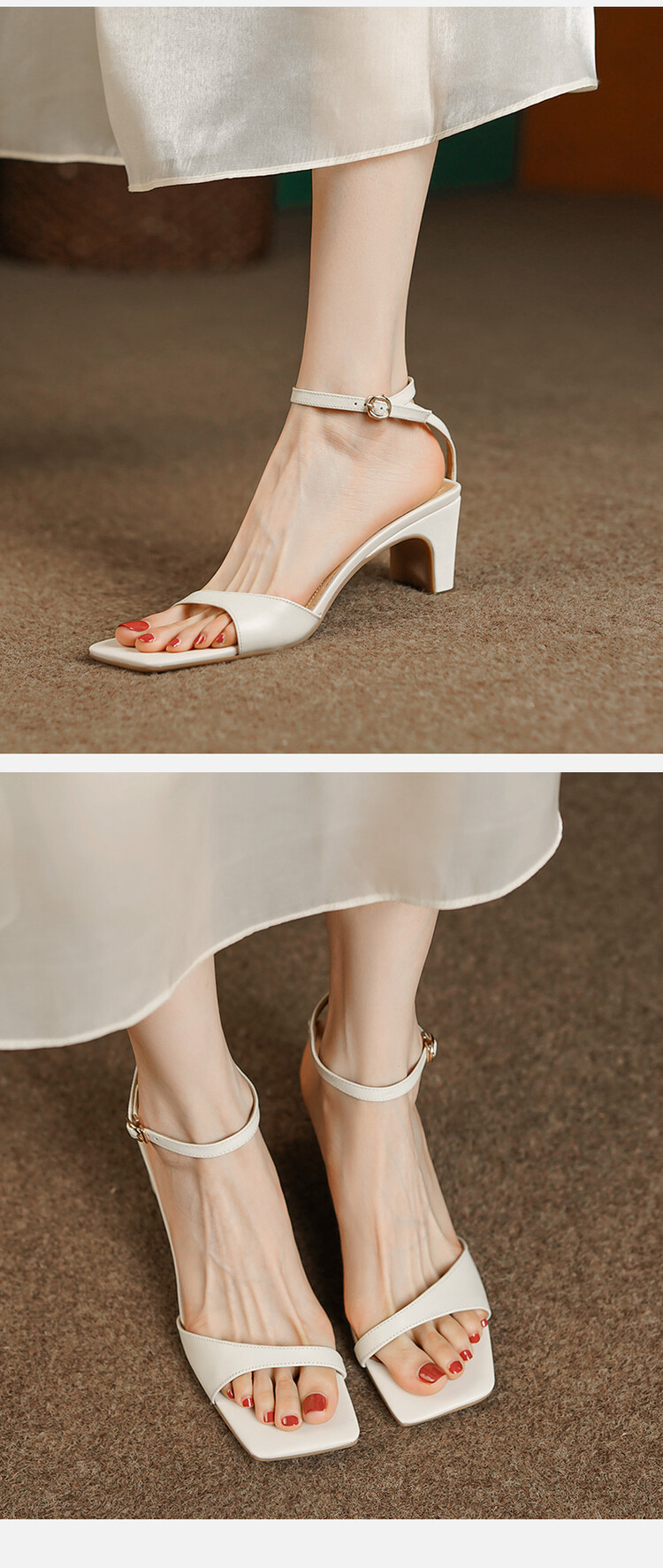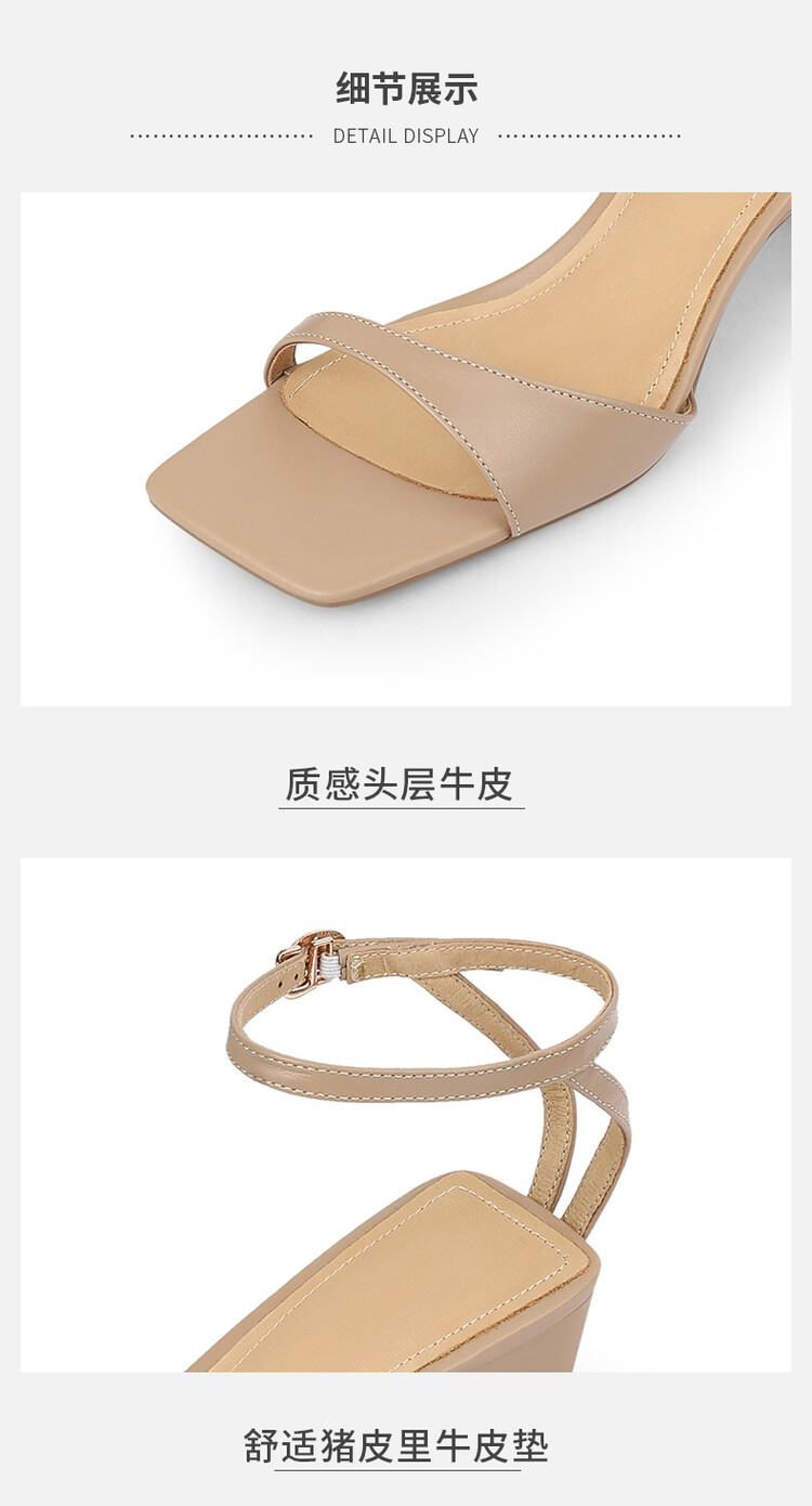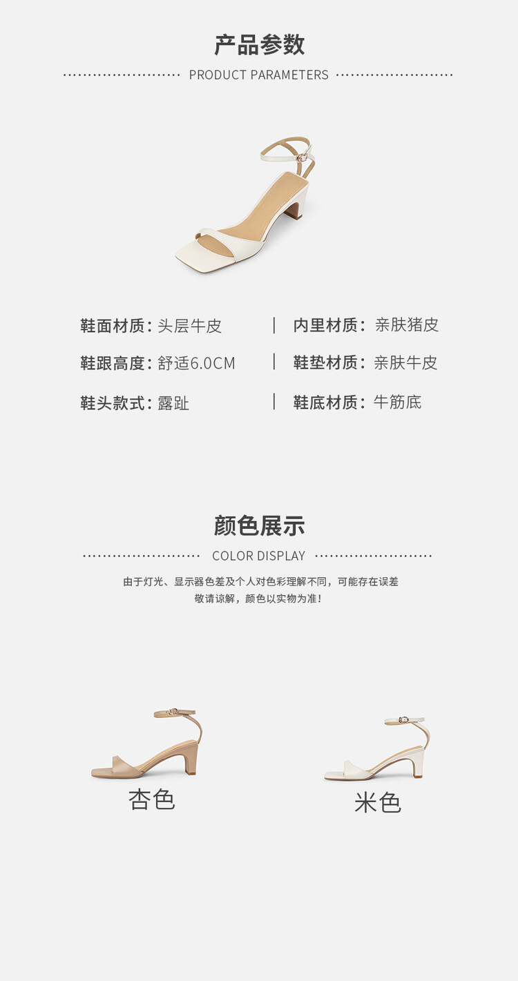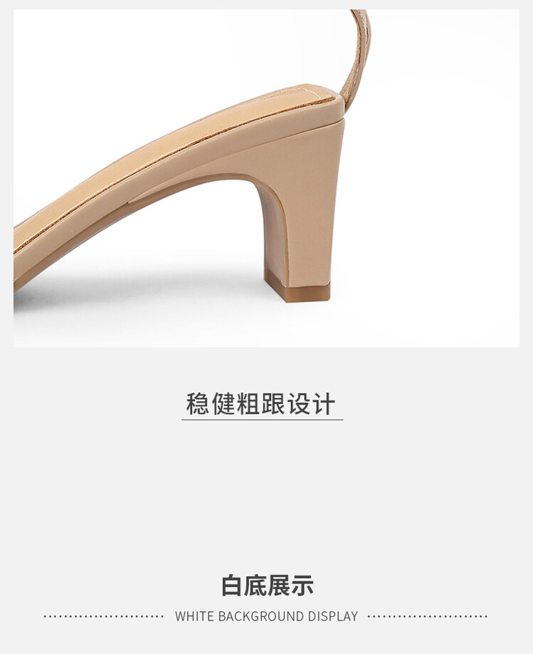 优雅百搭,纯色平头一字带高跟凉鞋LCC-C8193