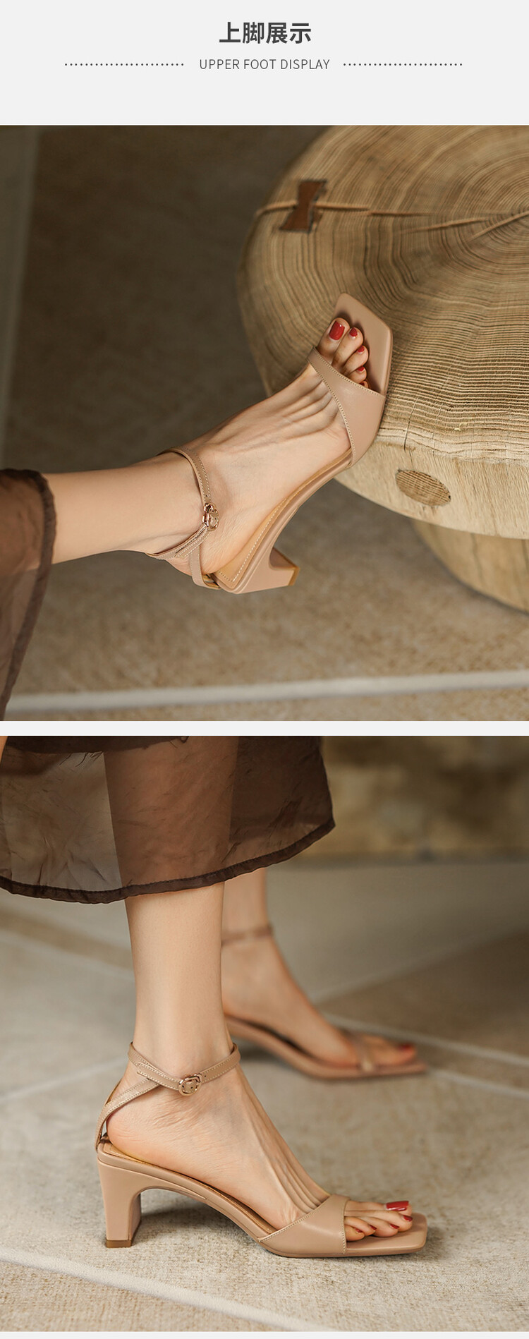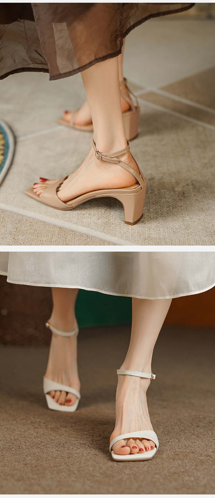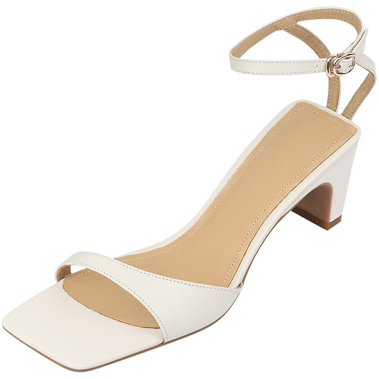 优雅百搭,纯色平头一字带高跟凉鞋LCC-C8193
