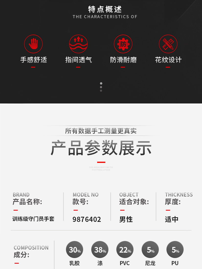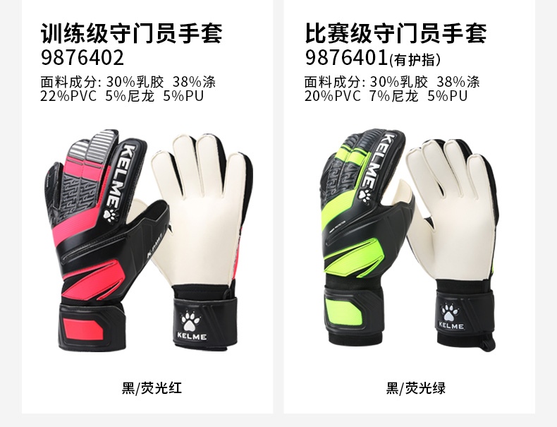 卡尔美守门员手套成人儿童带护指足球训练防滑职业门将手套