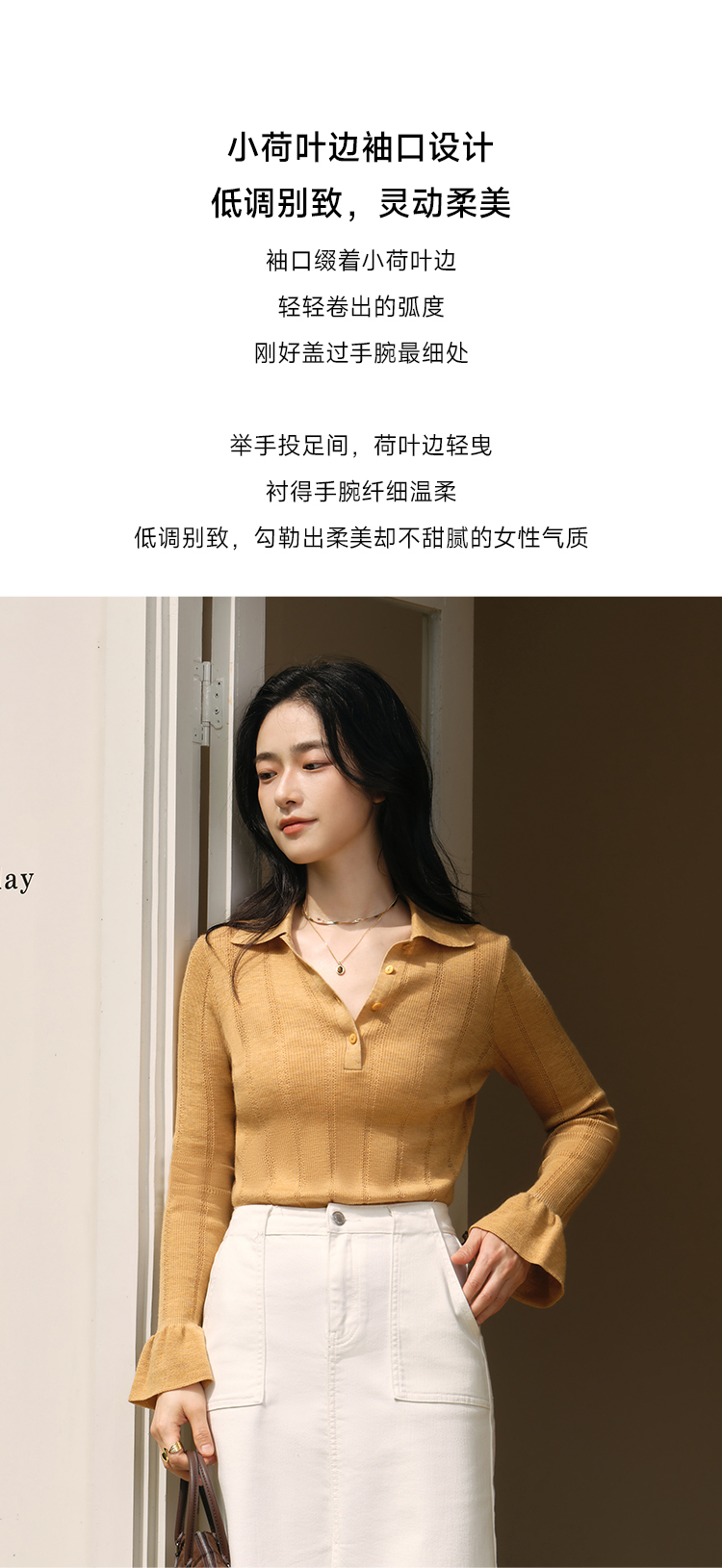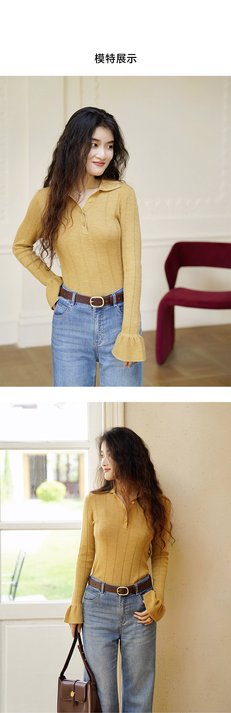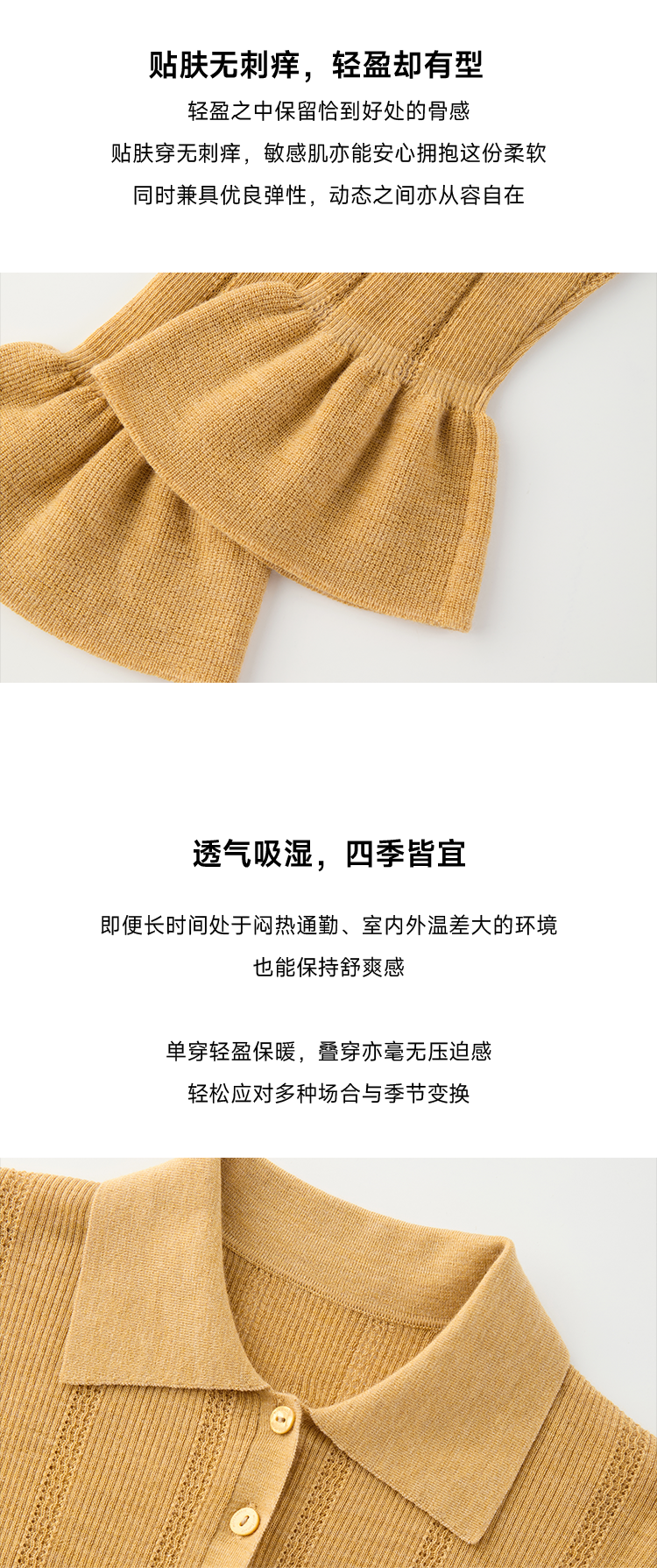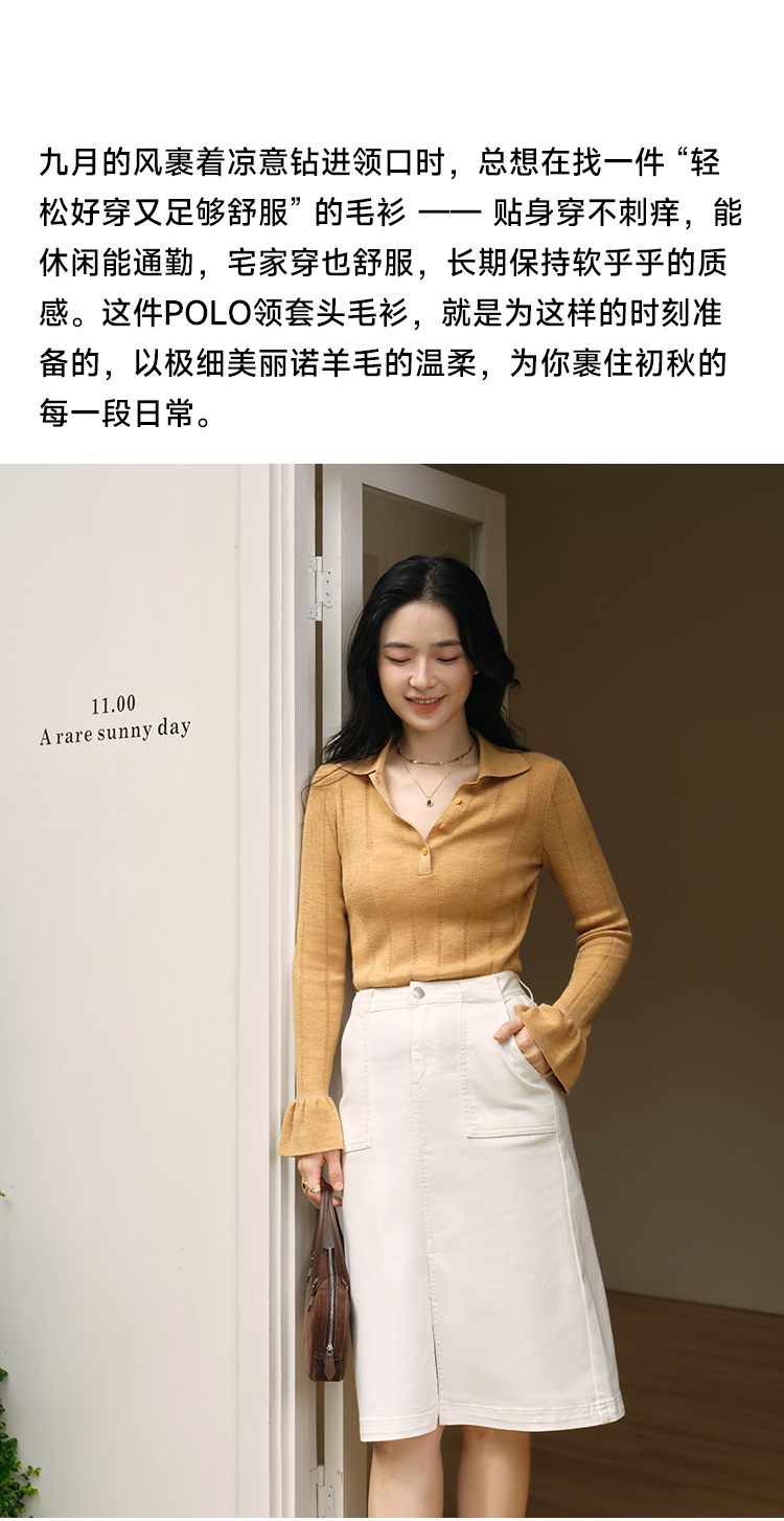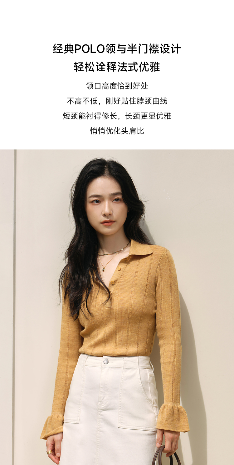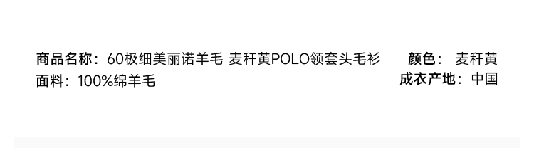 60极细美丽诺羊毛 麦秆黄POLO领套头毛衫FCF3WST072