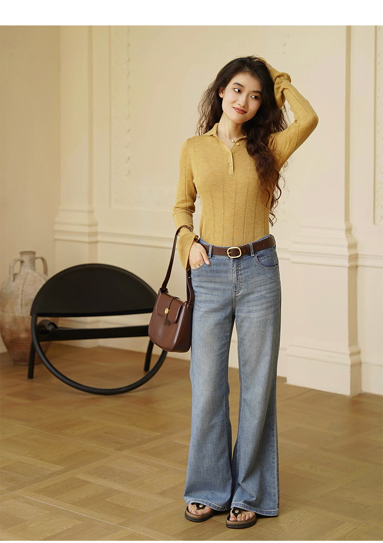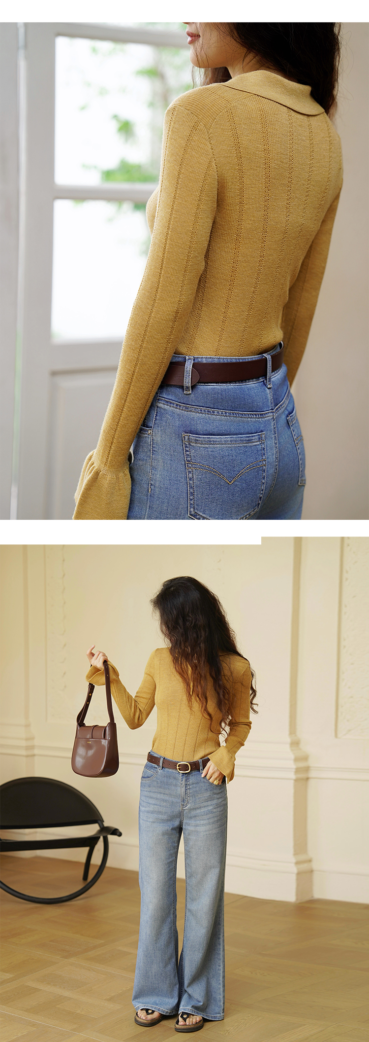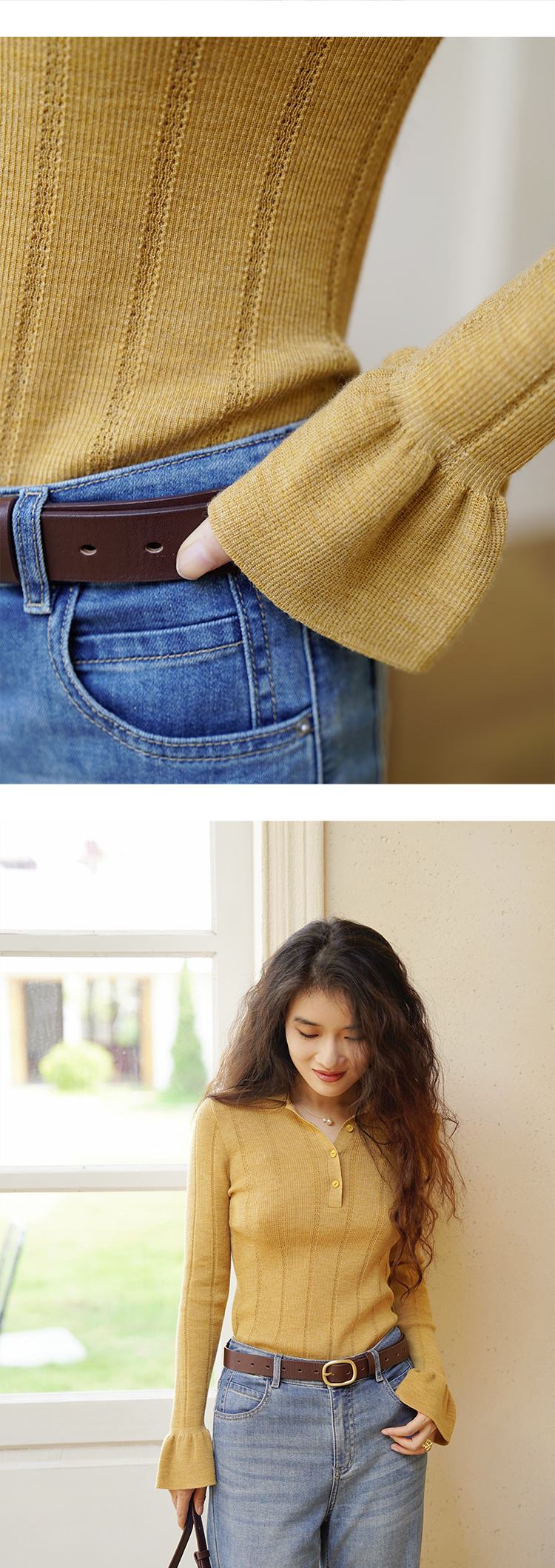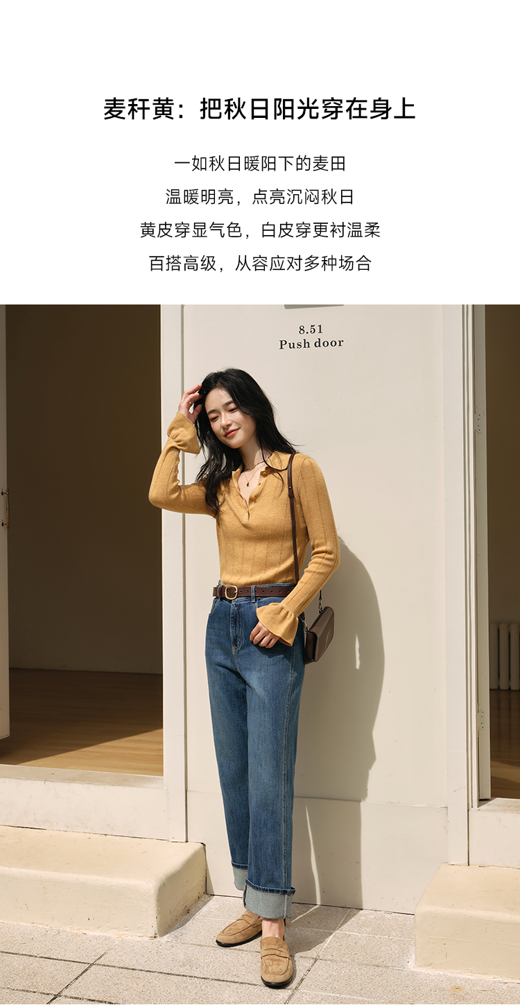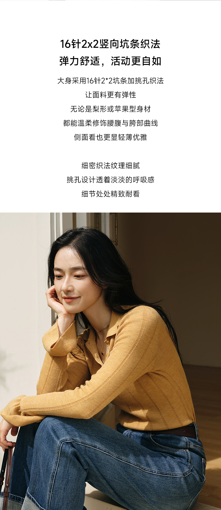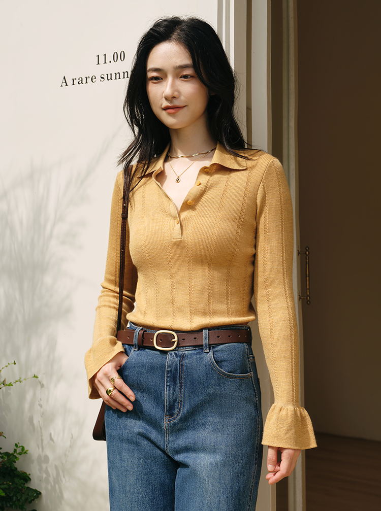60极细美丽诺羊毛 麦秆黄POLO领套头毛衫FCF3WST072